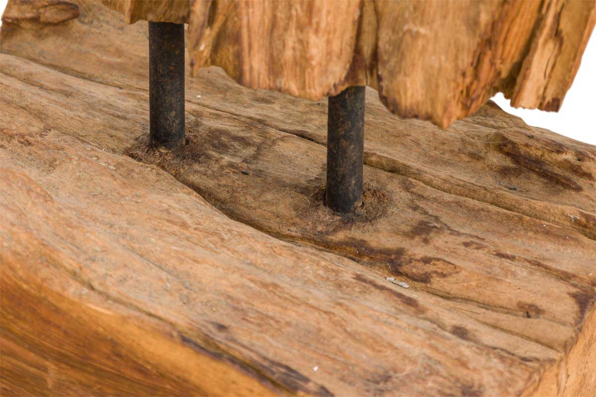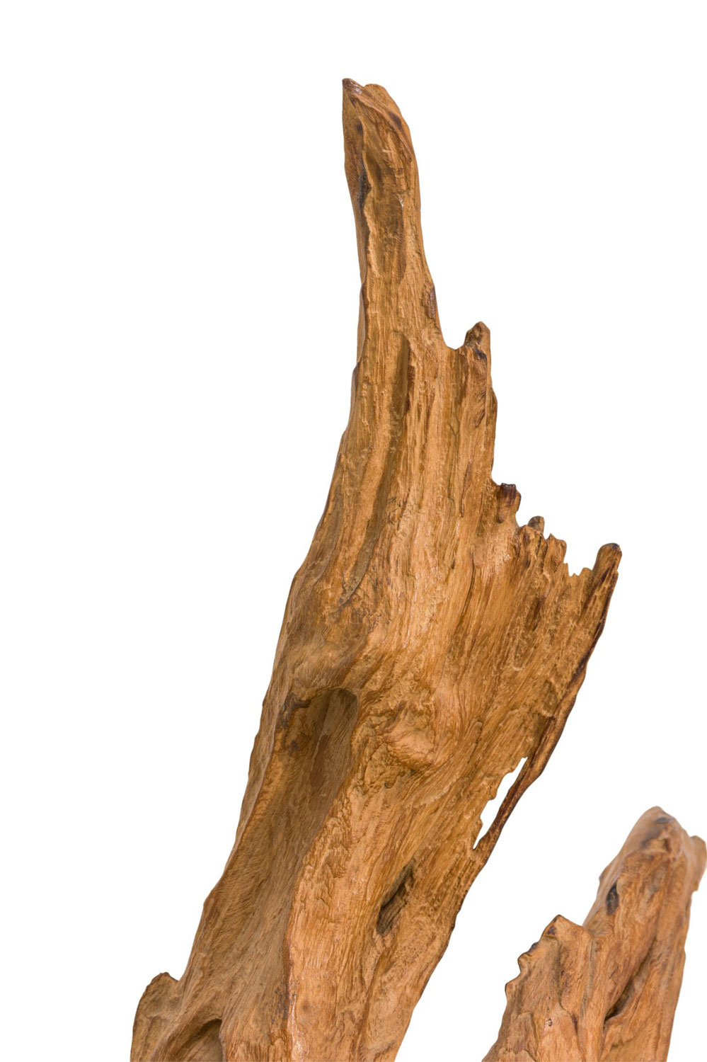 American Mid-Century Wild Asian Teak Tree Root Sculpture supported bu 2 iron rods on a root base