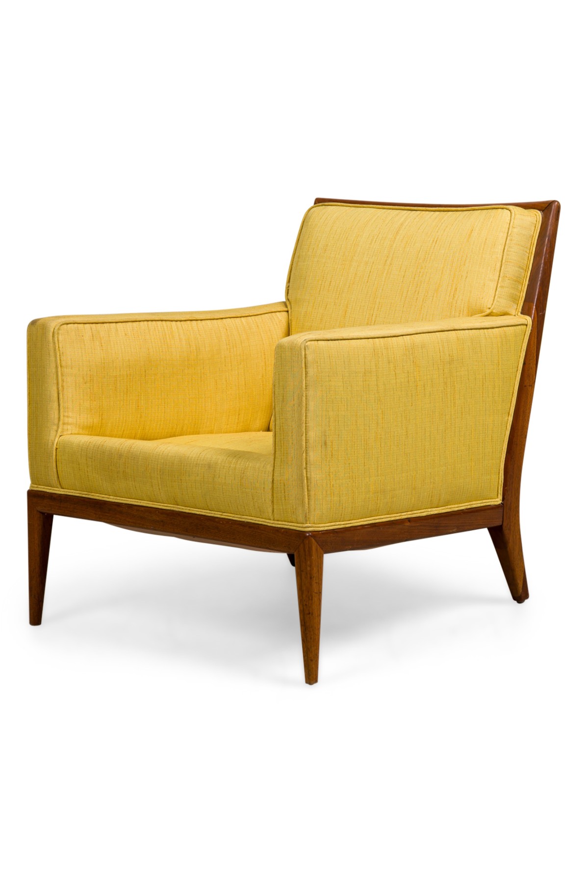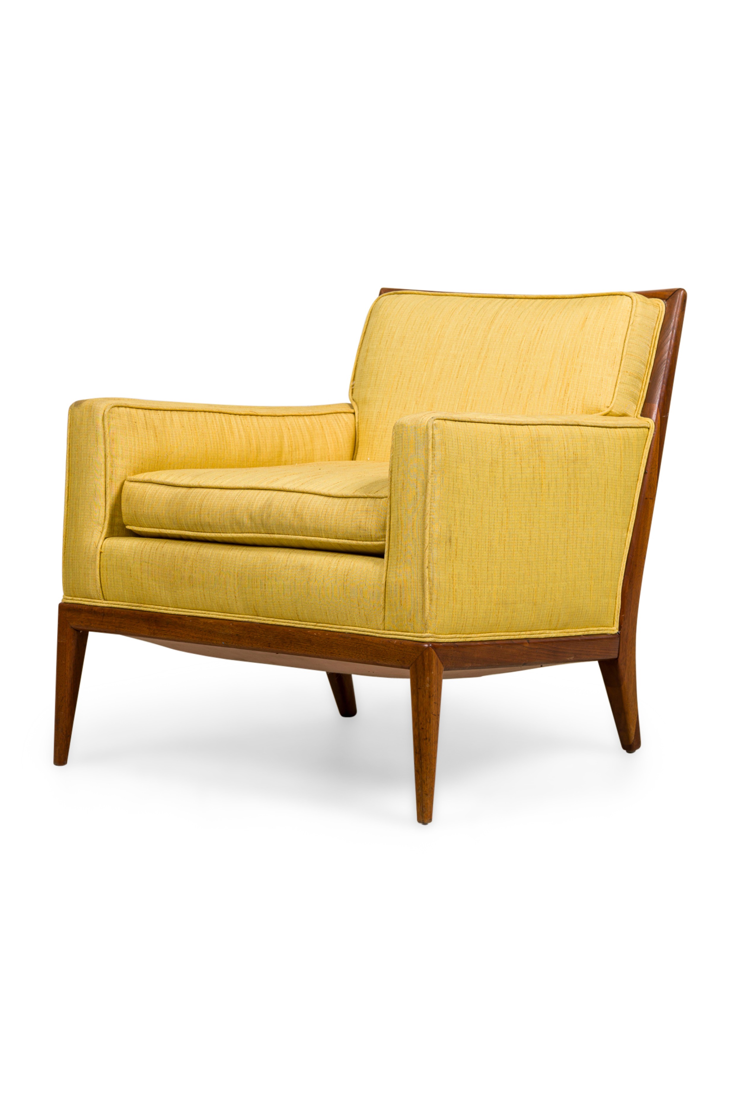 American Mid-Century Yellow Fabric Upholstered Lounge Chairs