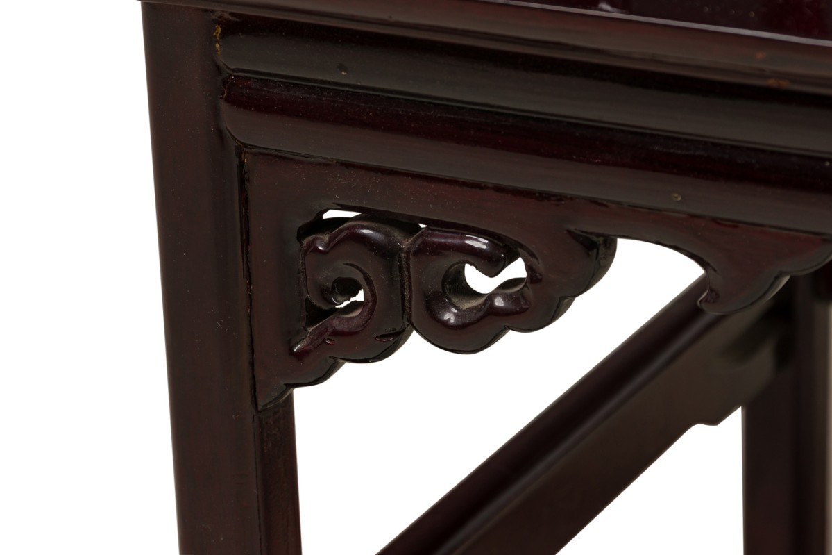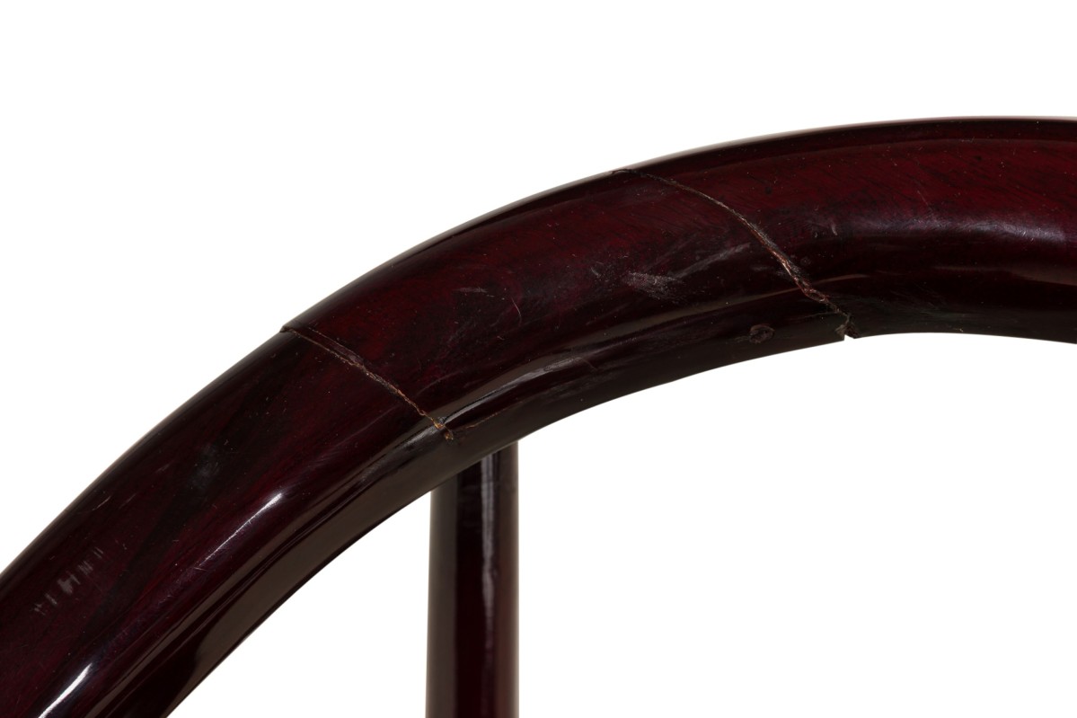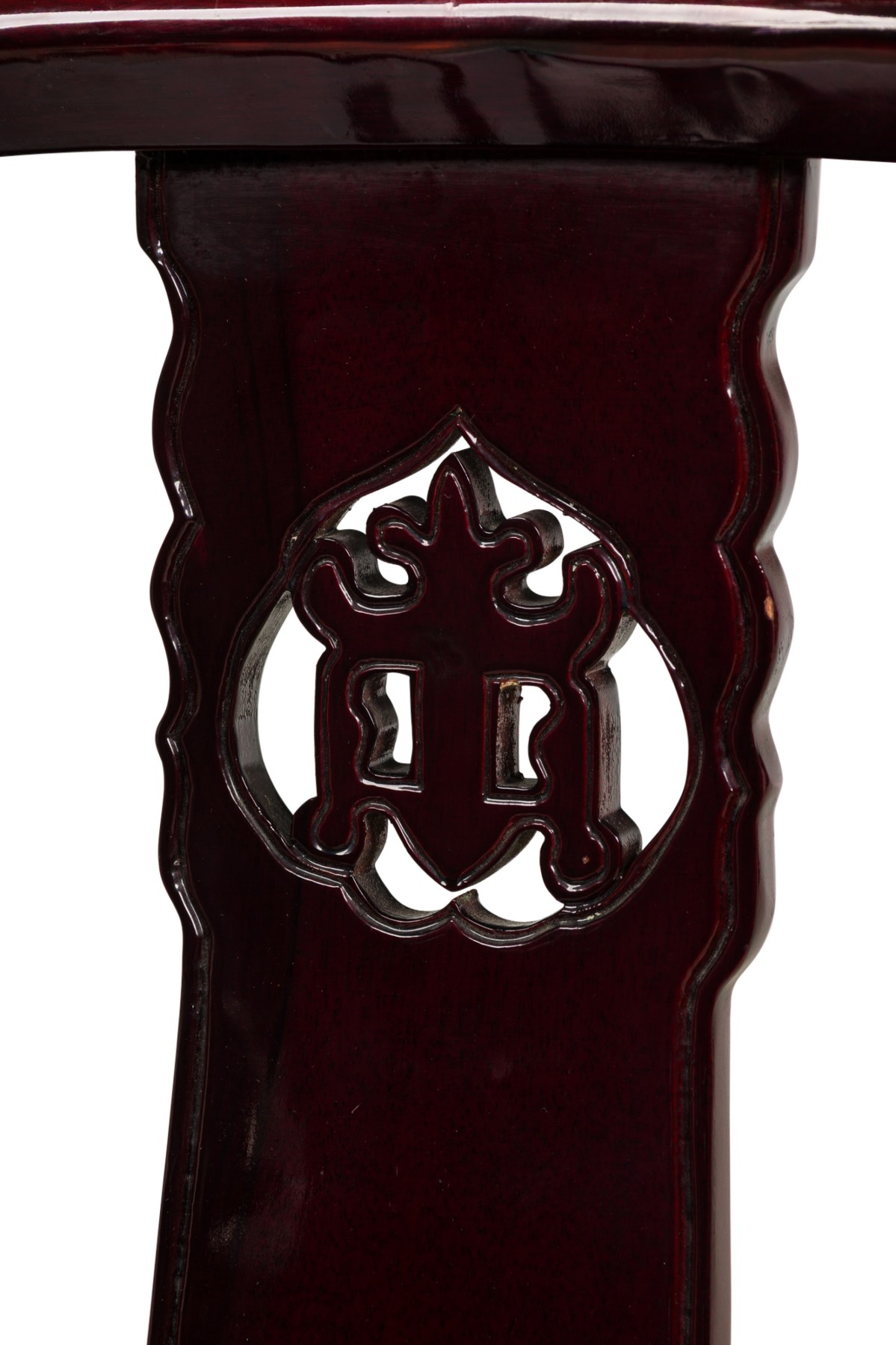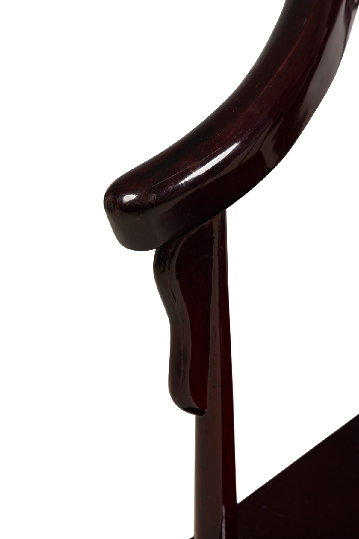 Asian Chinese Ming style (c. 1970's) armchair in rosewood with a horseshoe shaped back center slat panel with a stretche