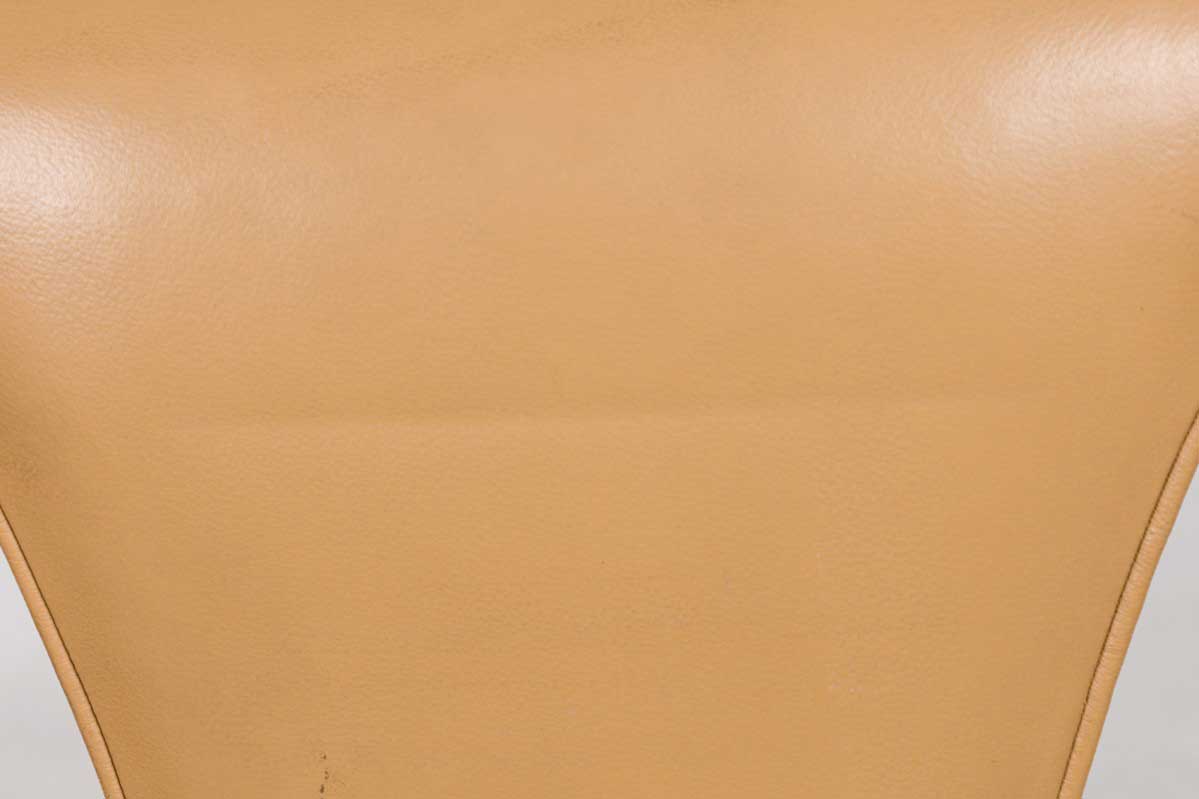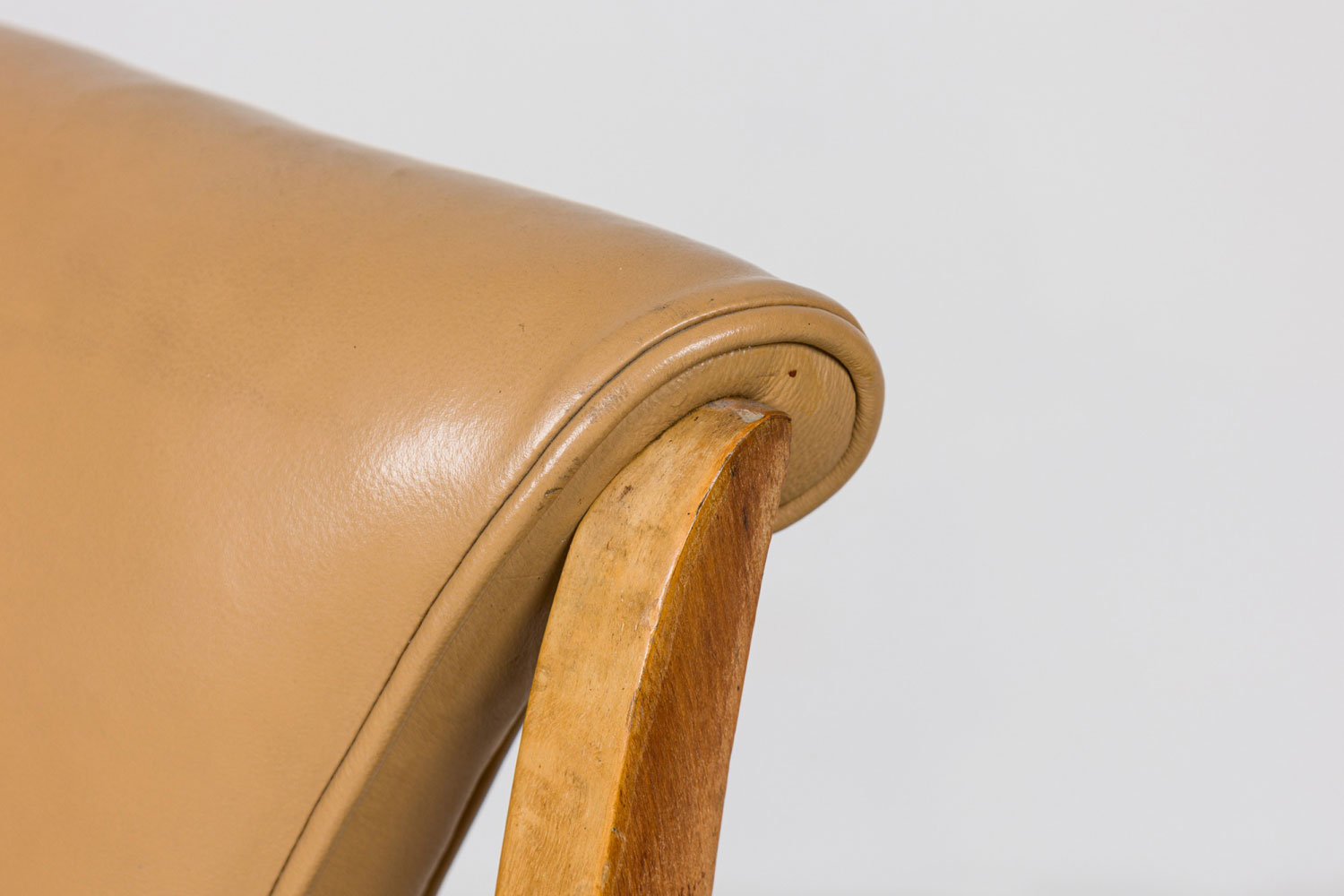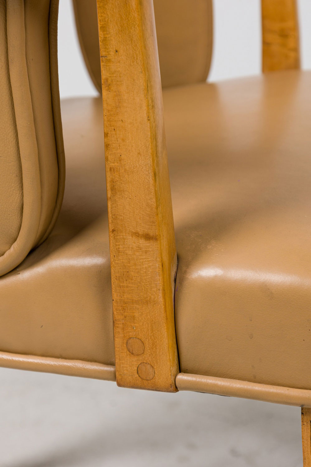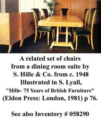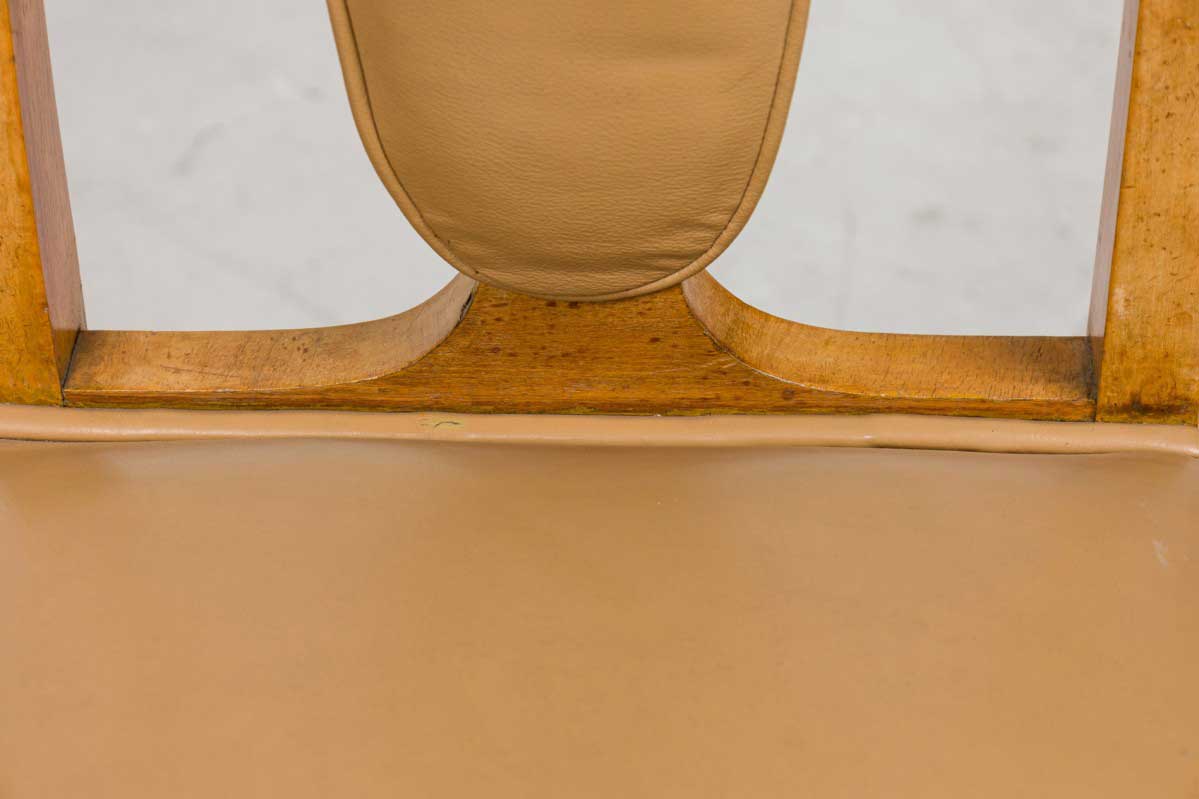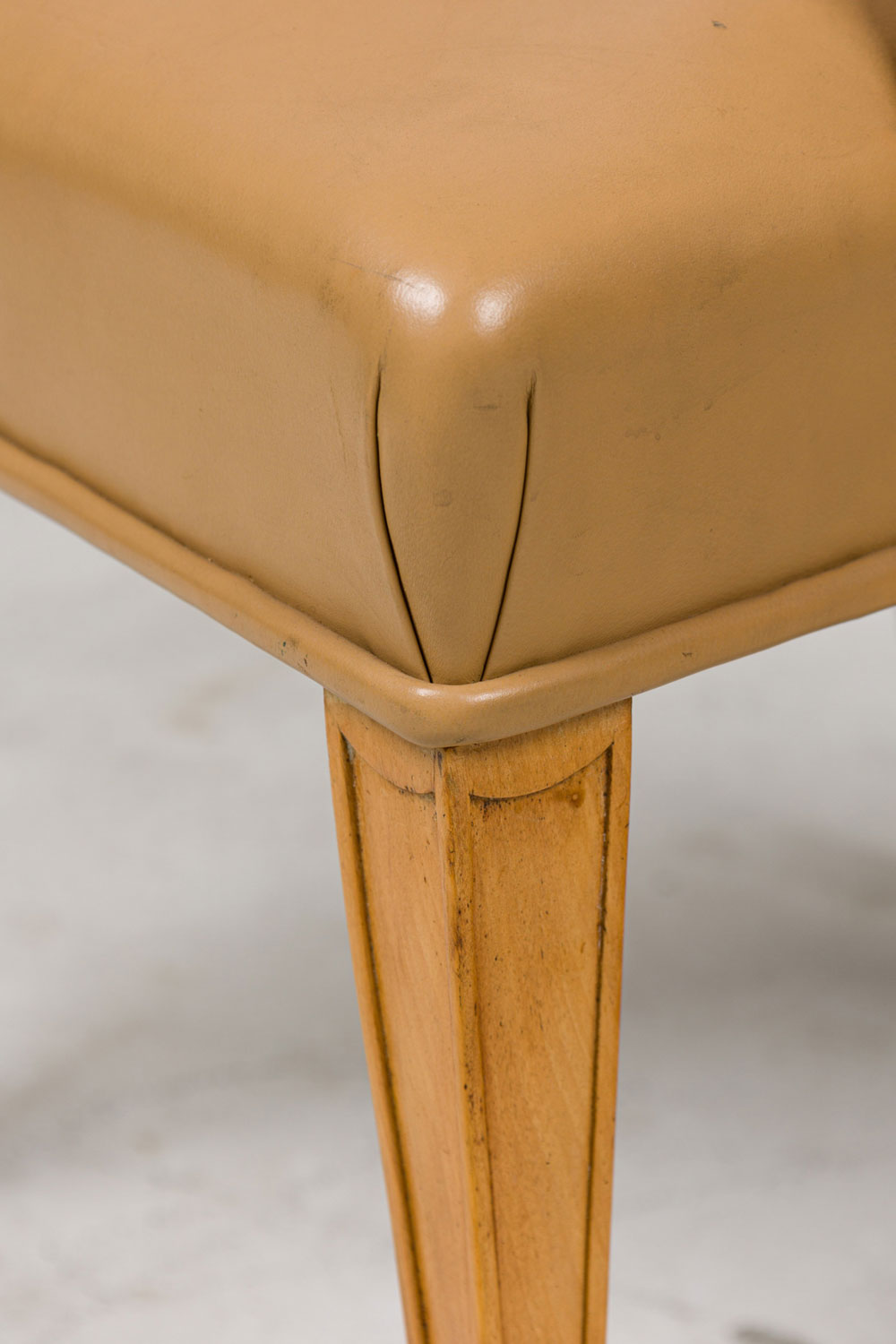 Set of 8 English Art Deco maple high back dining chairs with beige leather upholstery (2 arms:22½"w x 26"d x 42"h/6 side)