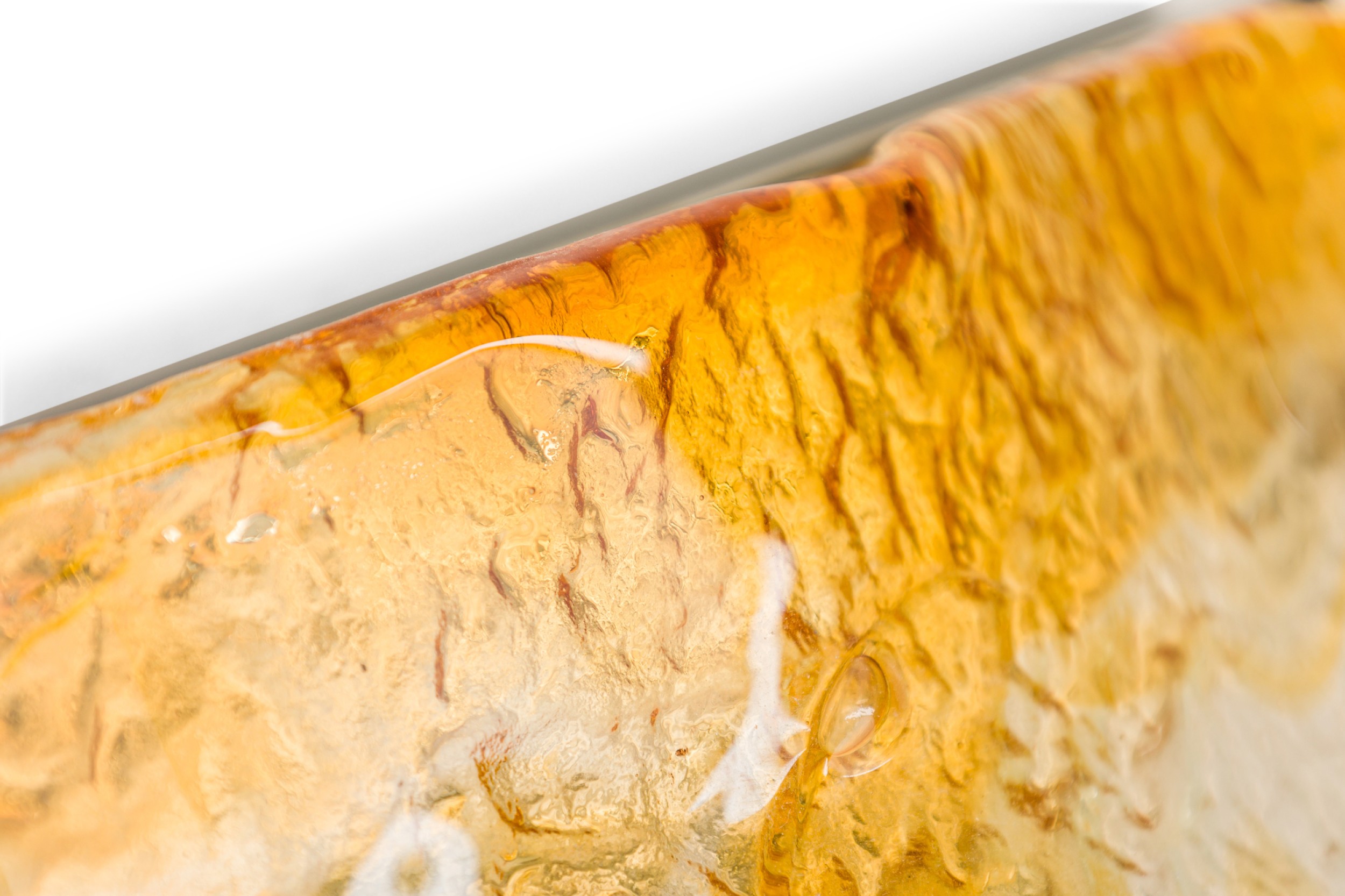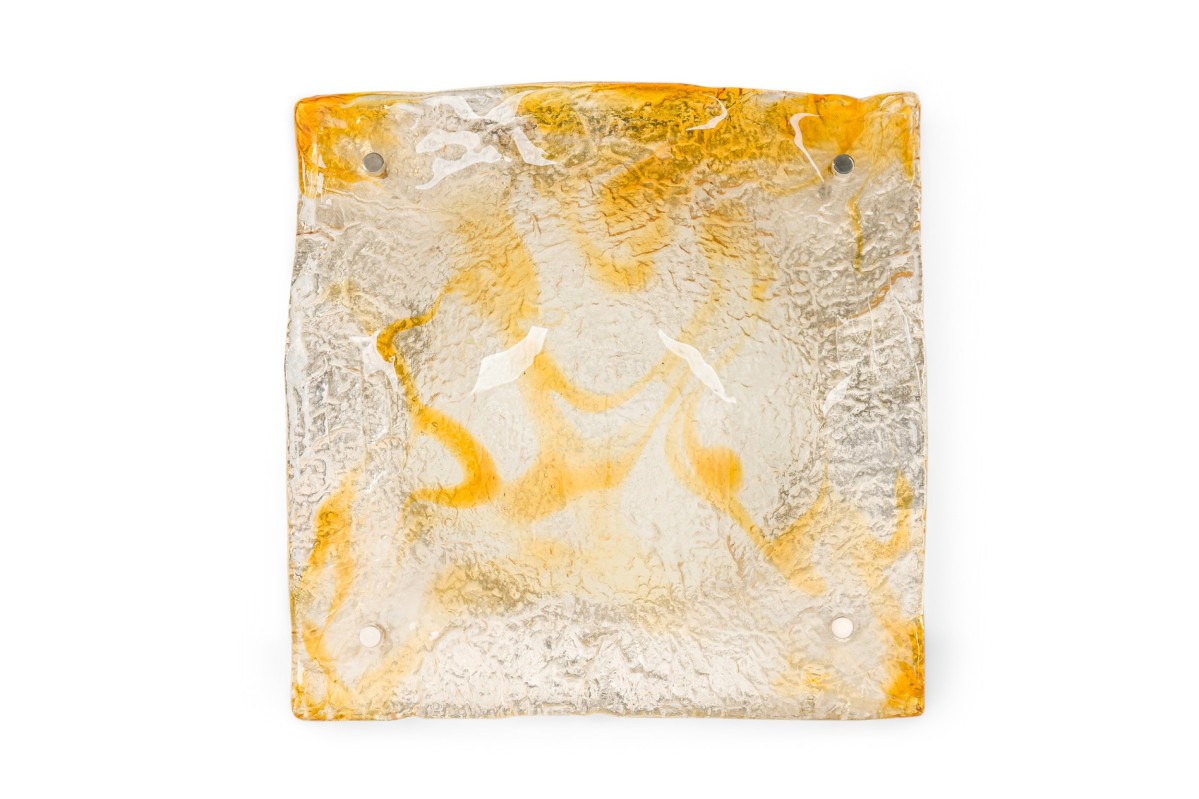 2 Contemporary (possibly Scandinavian) large textured clear and amber glass sconces with a square freeform design (PRICED EACH)