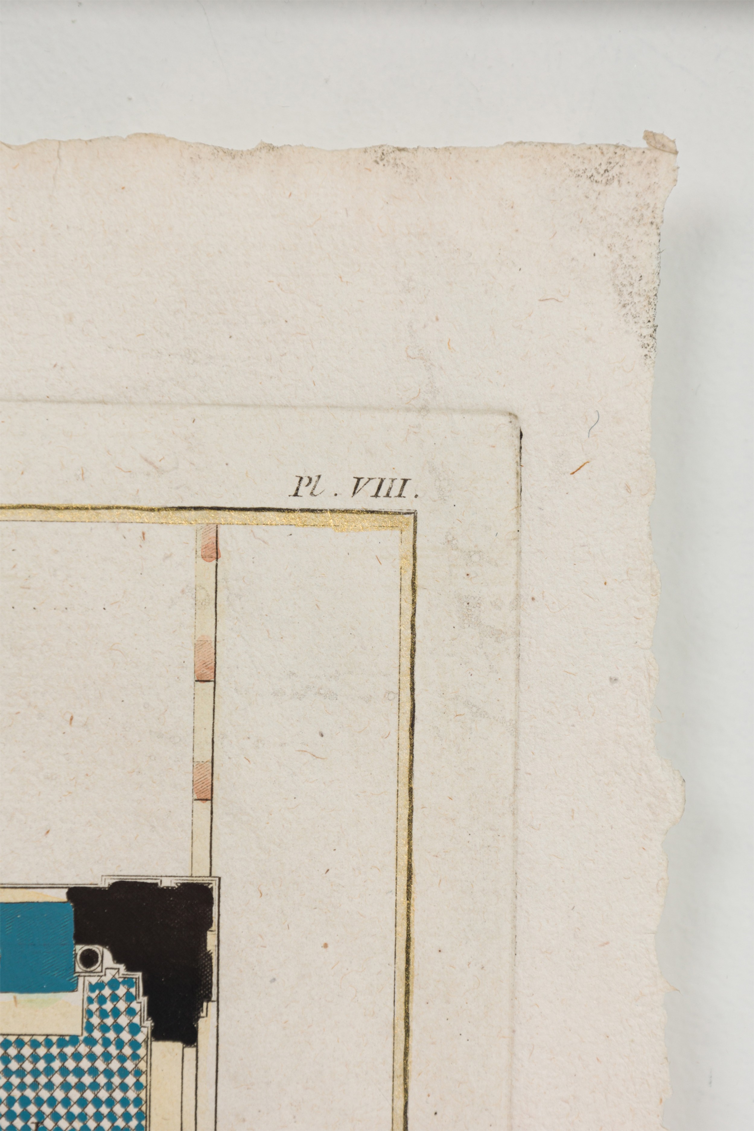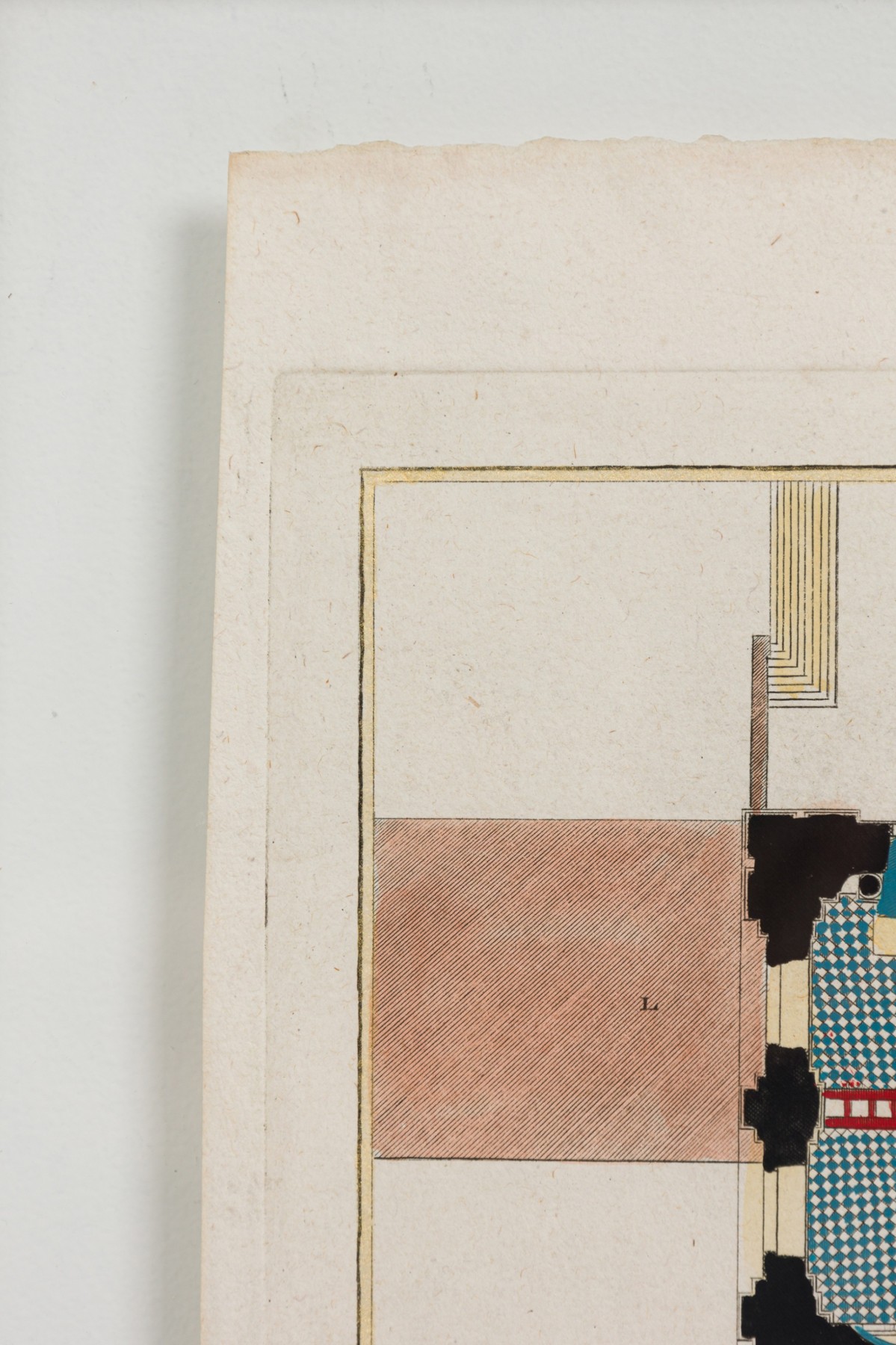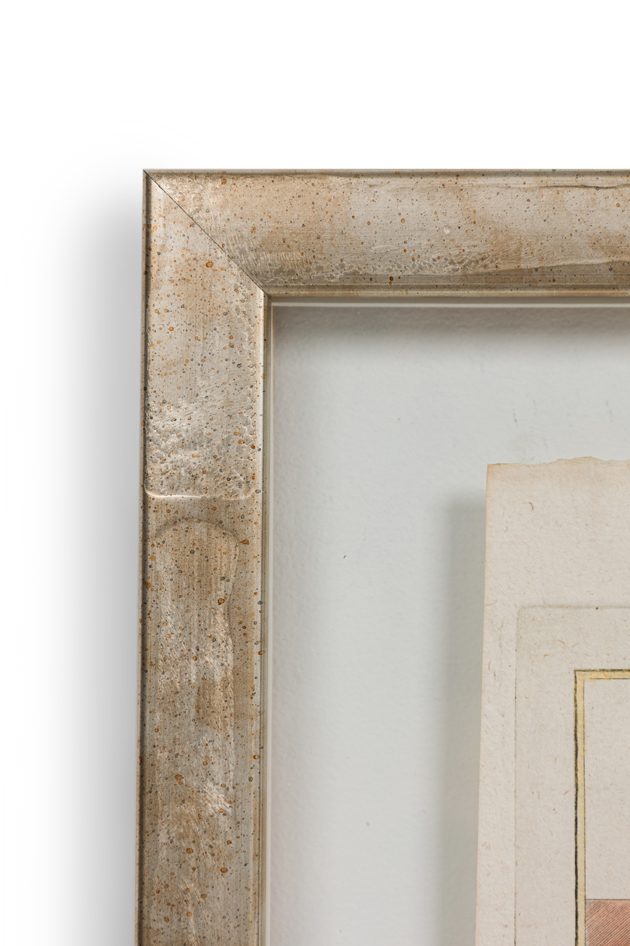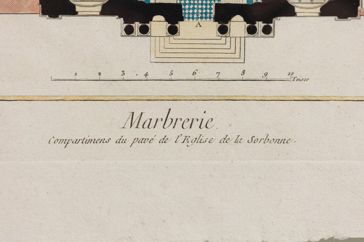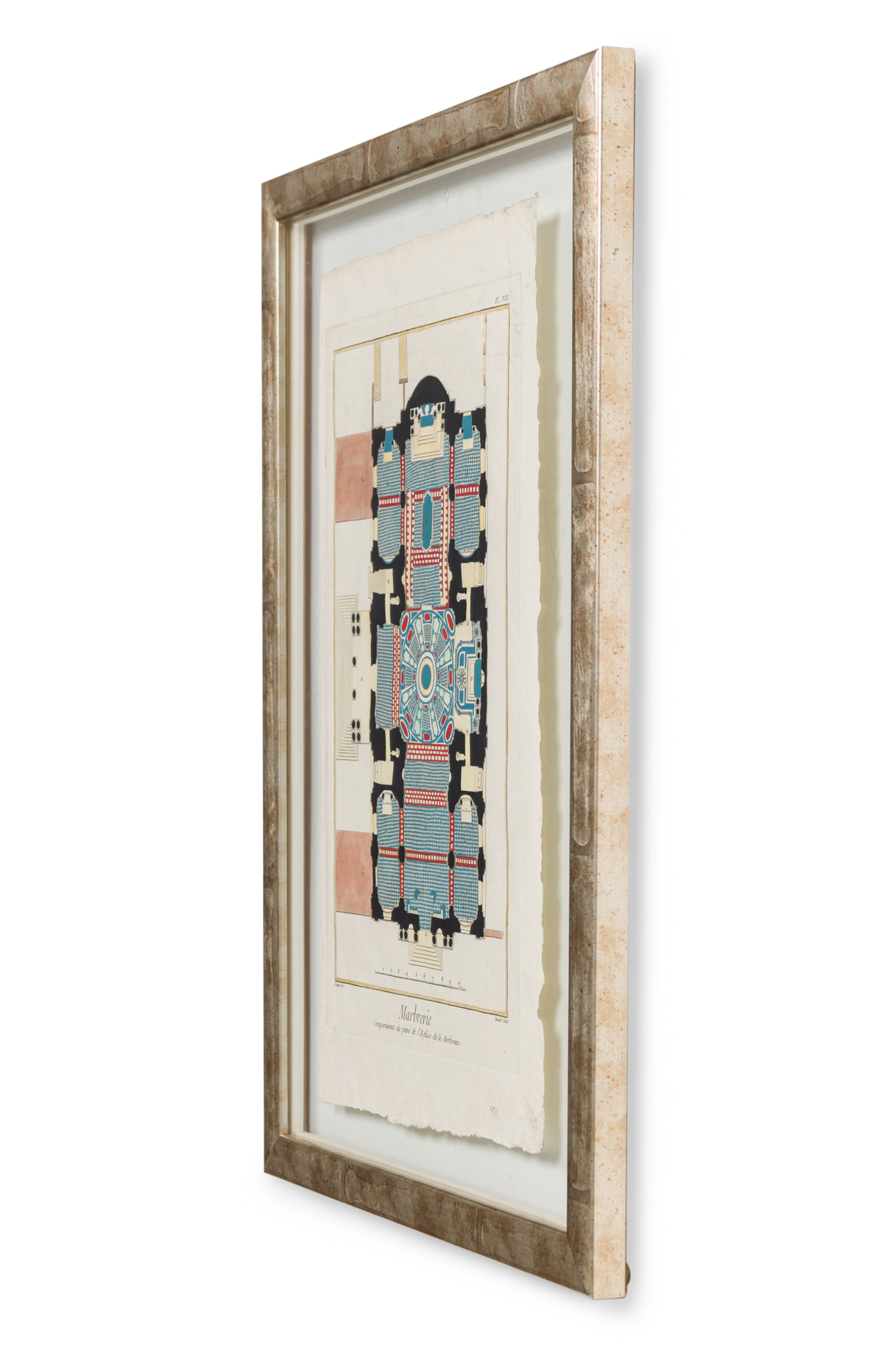 French Baroque style hand painted multicolored print of sections of marble pavings for the Church of the Sorbonne in a silver (Matching prints available NWL6148A-F)