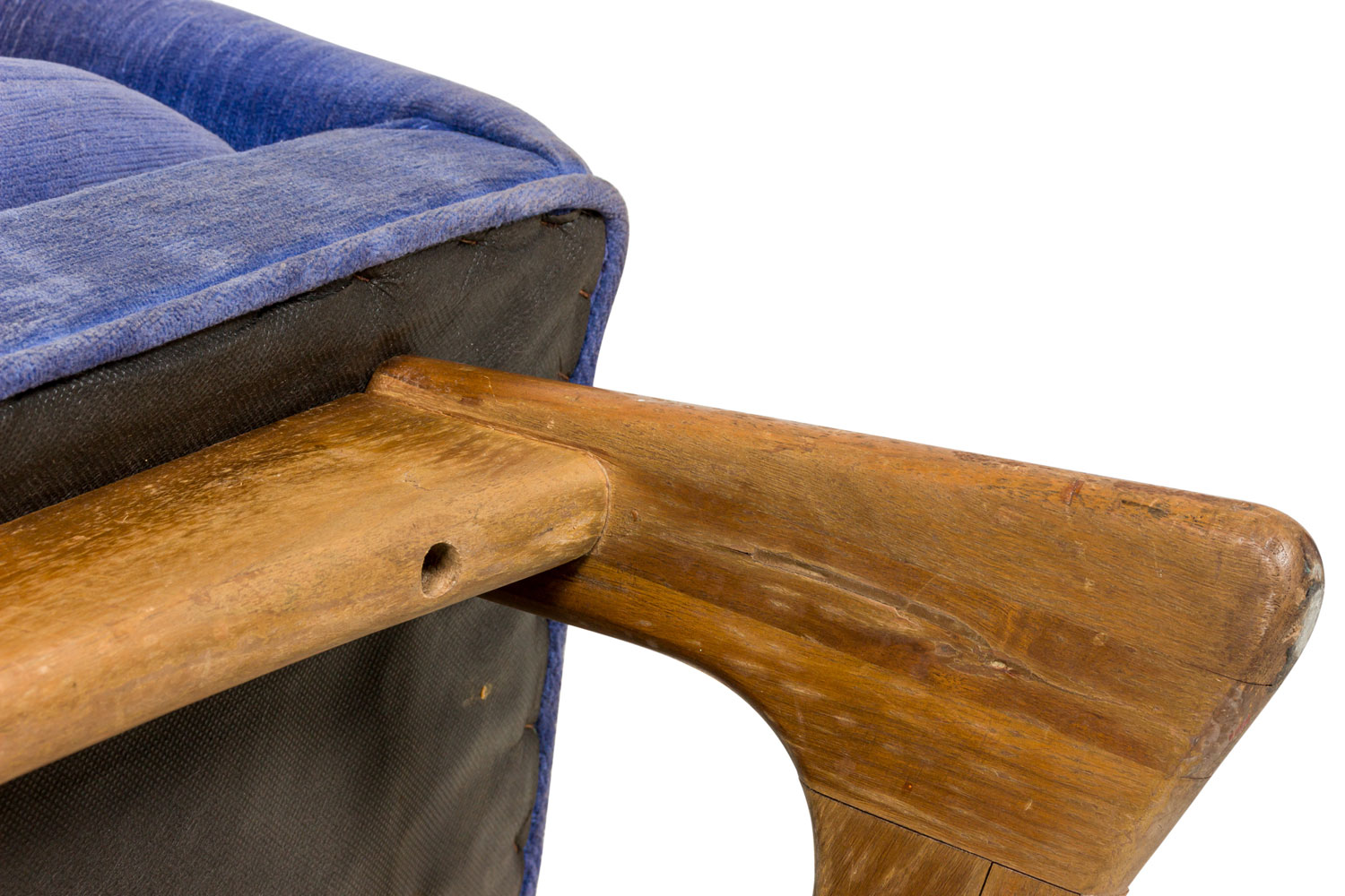 Choose one of the options below.2 American Mid-Century Walnut and Periwinkle Velour Curved Back Armchairs