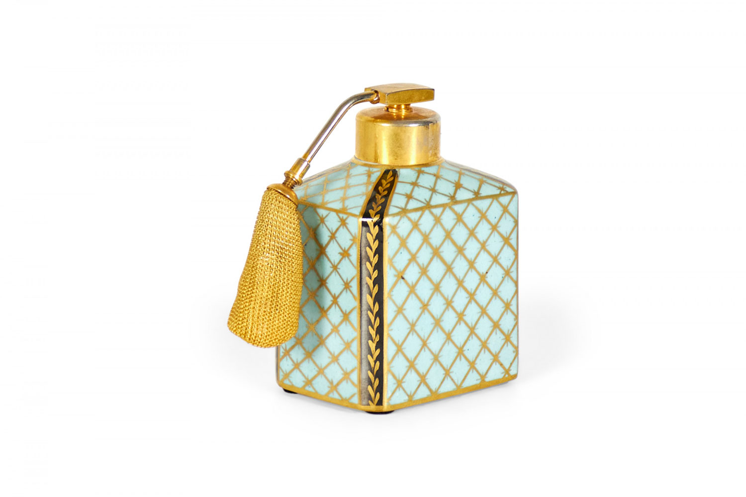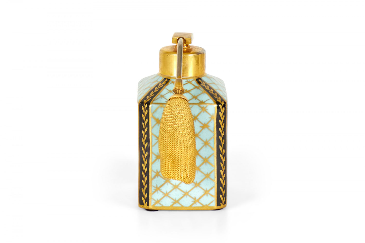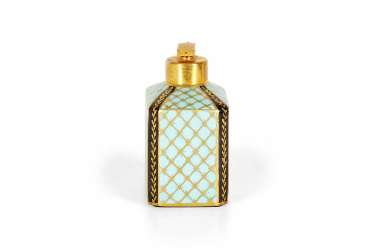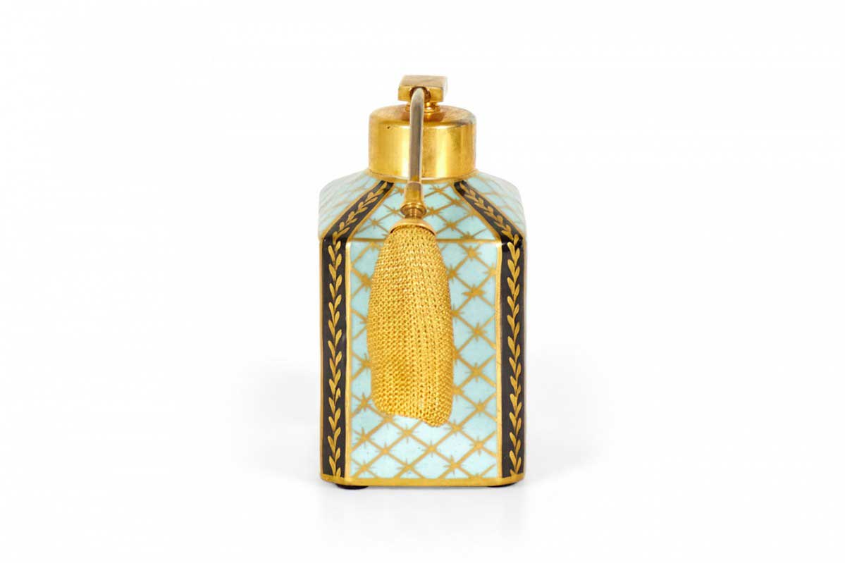 French Victorian blue and gilt trimmed porcelain perfume atomizer with floral design