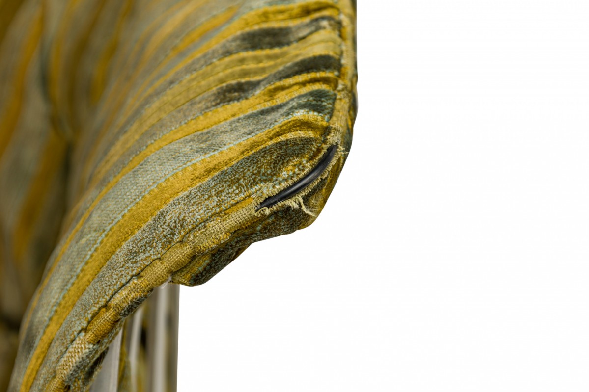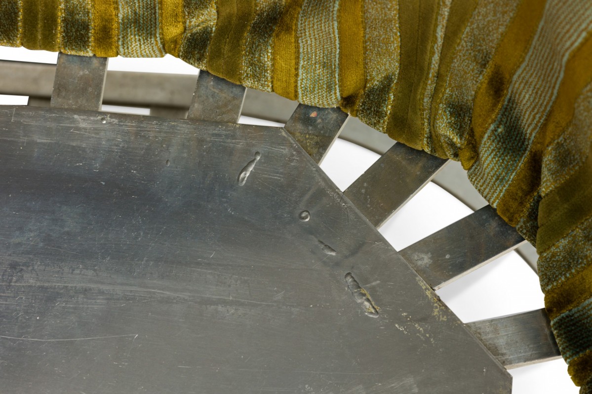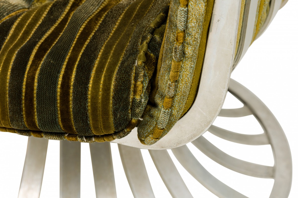 Choose one of the options below.American Mid-Century Aluminum and Green Upholstered Tulip Base Settee