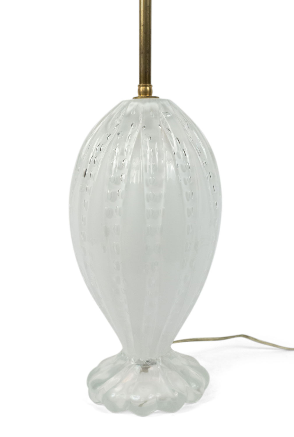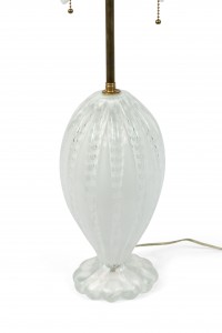 2 Similar Italian Murano Mid-Century style "A BOLLE" white glass table lamps with shaped form & fluted internal bubble design above a scalloped base (PRICED EACH)