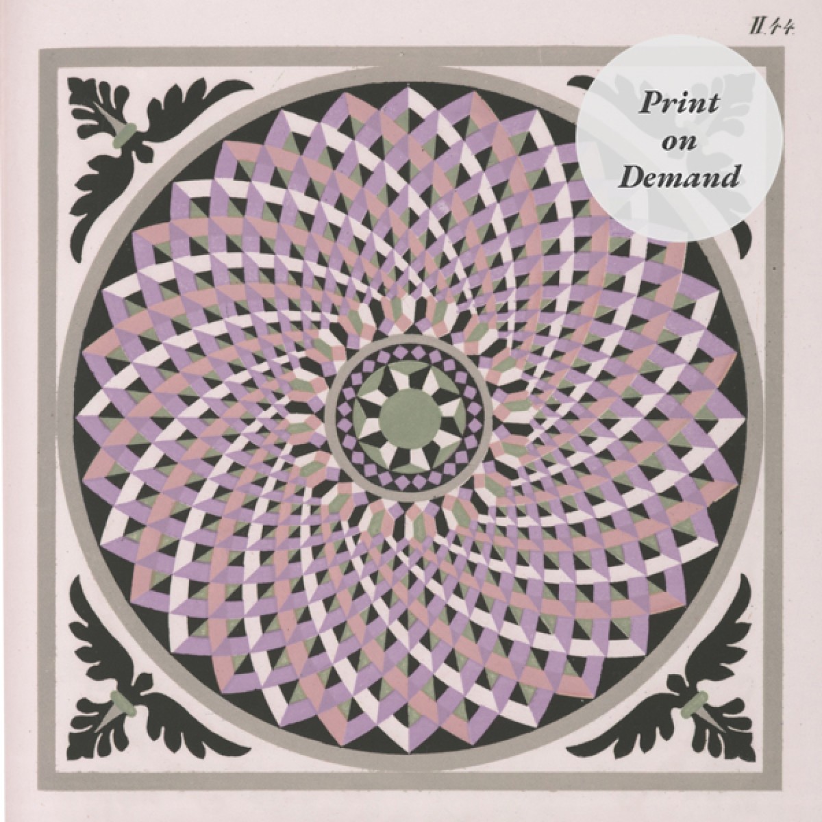 20th century Art Deco French lithograph of a radial lavender tessellation with floral corner motifs.