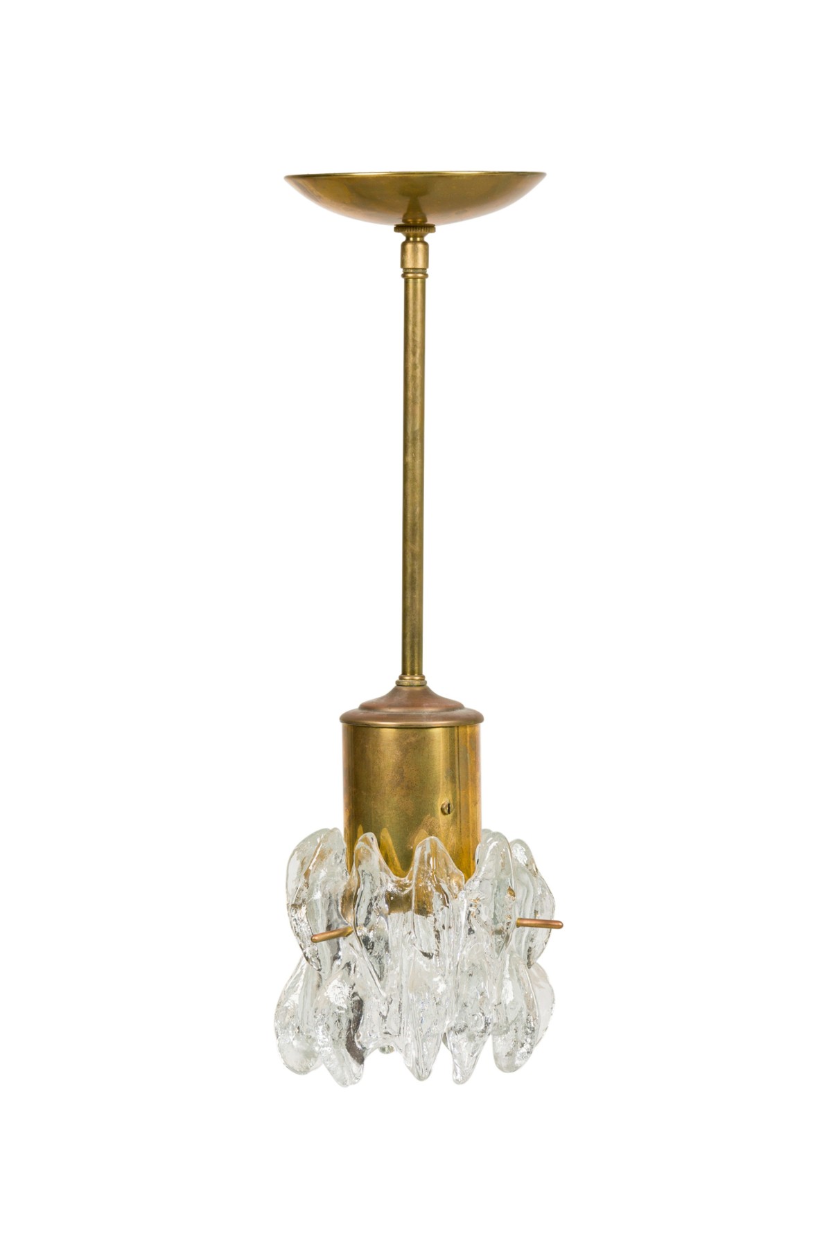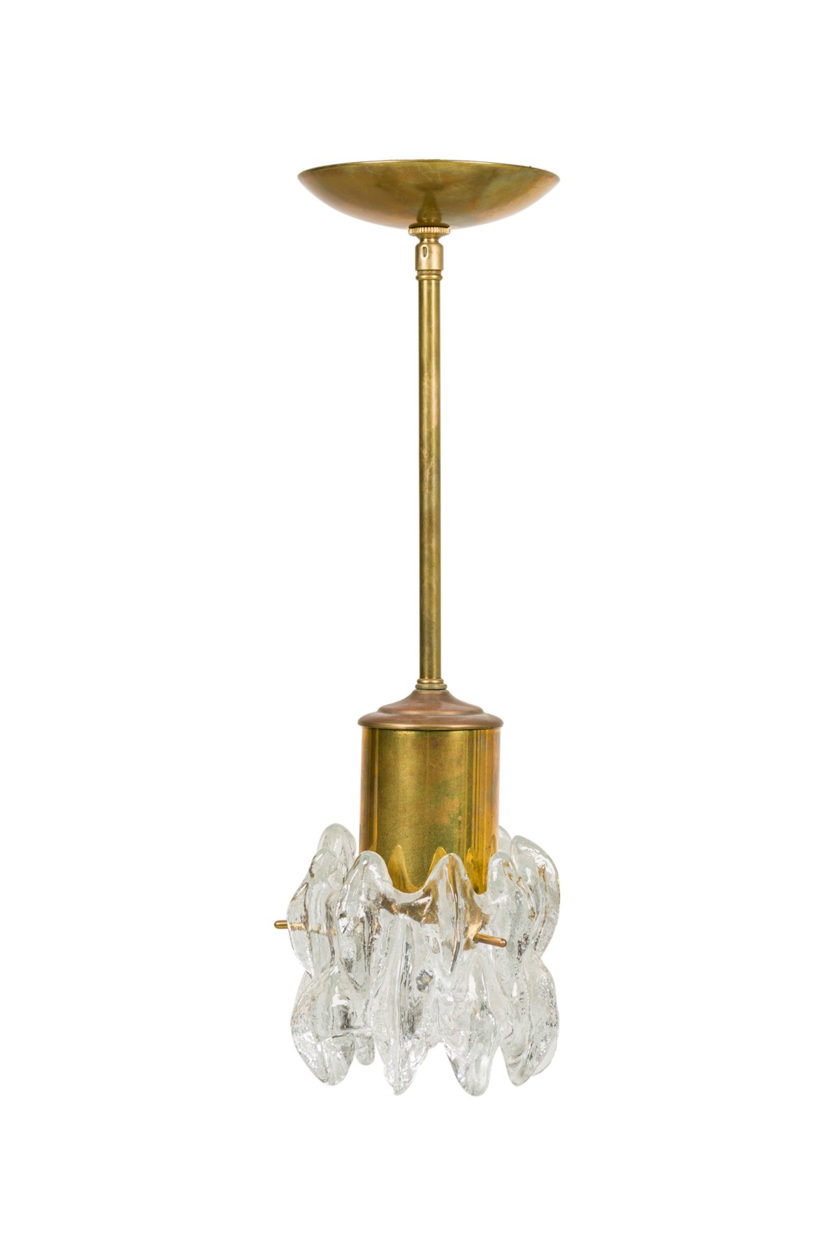 Choose one of the options below.2 Mid-Century Chandelier with cylindricaal brass body supporting a clear freeform glass bottom shade