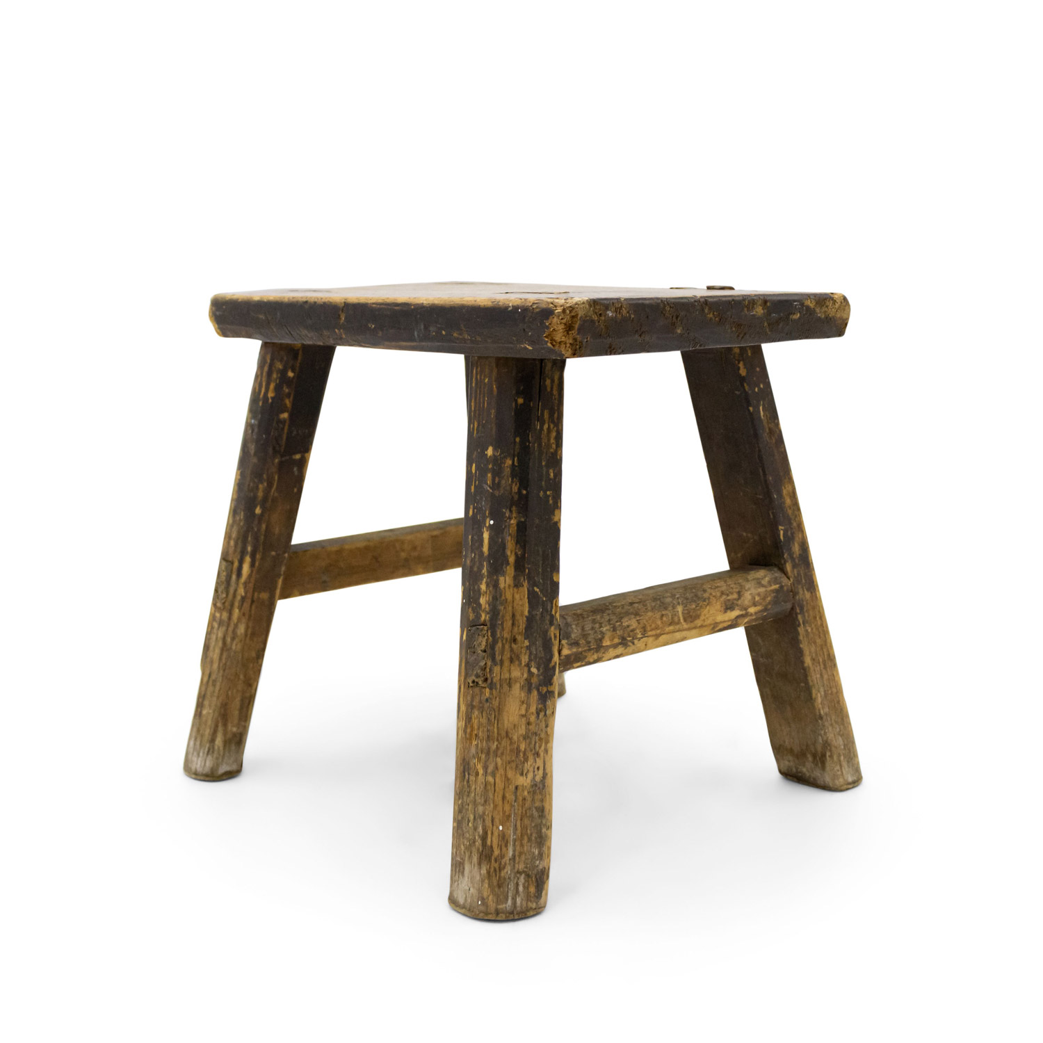 English Country Rustic style (19th Cent) small rectangular stool with 4 doweled legs connected with a stretcher