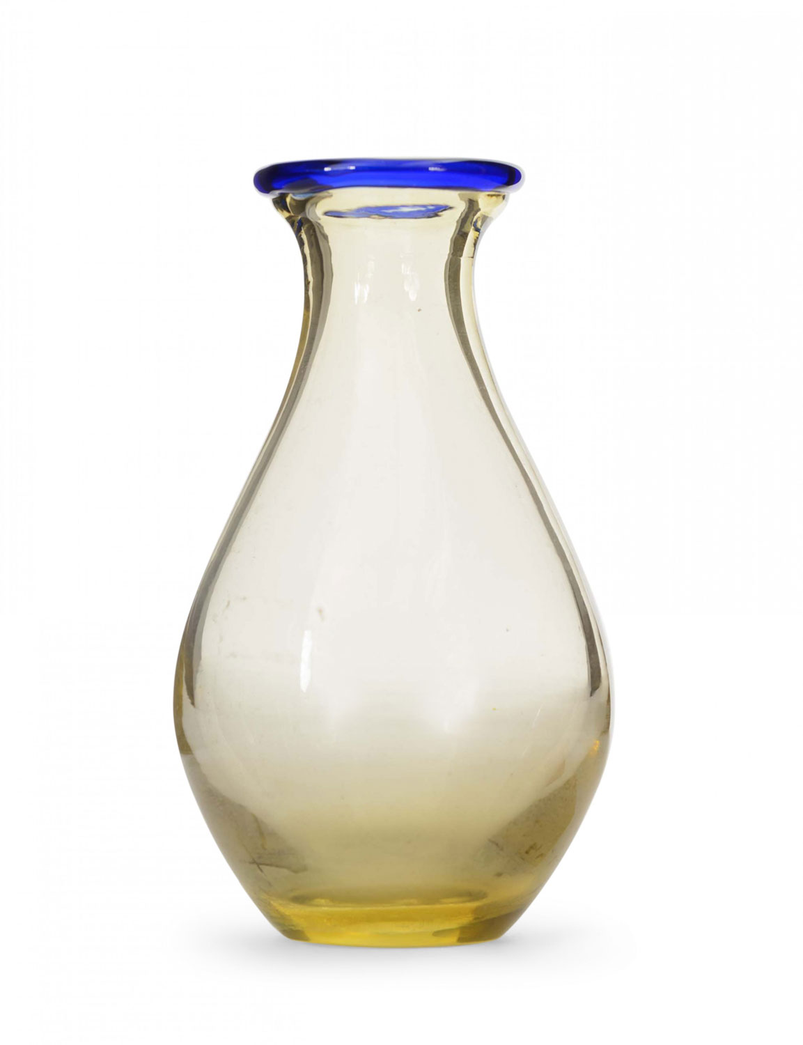Choose one of the options below.Yellow Tinted Blown Glass Vase with Blue Rim