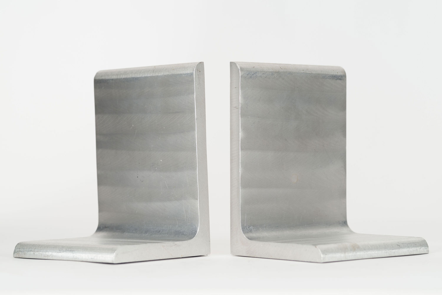 PAIR of L shaped brushed chrome bookends (PRICED AS PAIR)