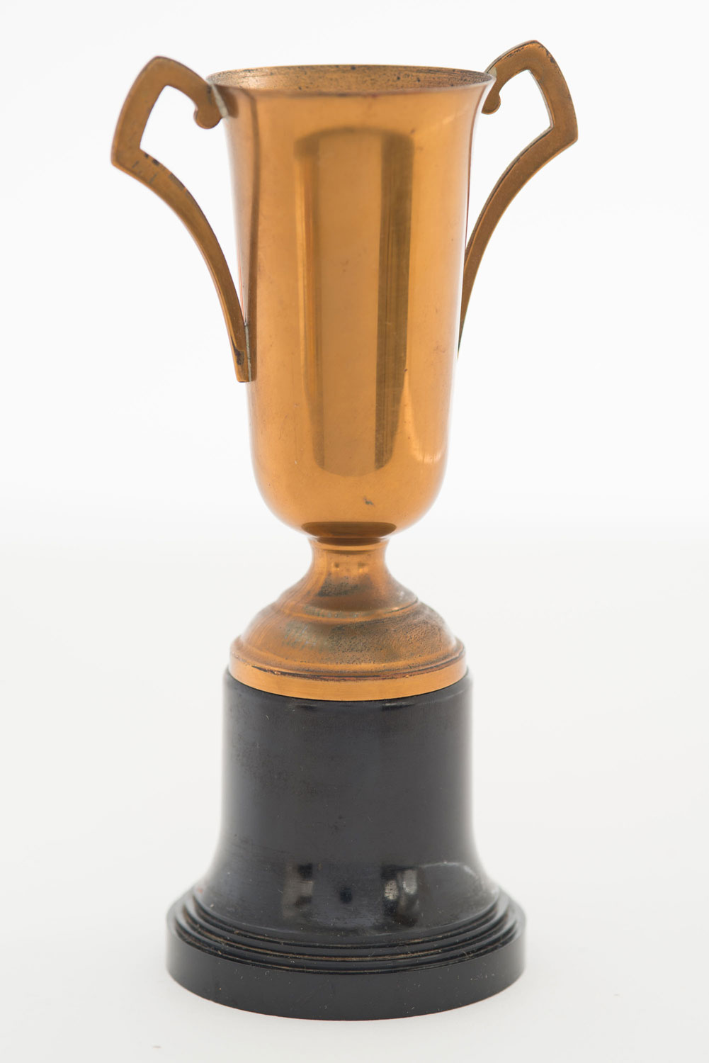 Small copper trophy on a round black plastic stand "1953 ALBANY COUNTY TENNIS TOURNAMENT"