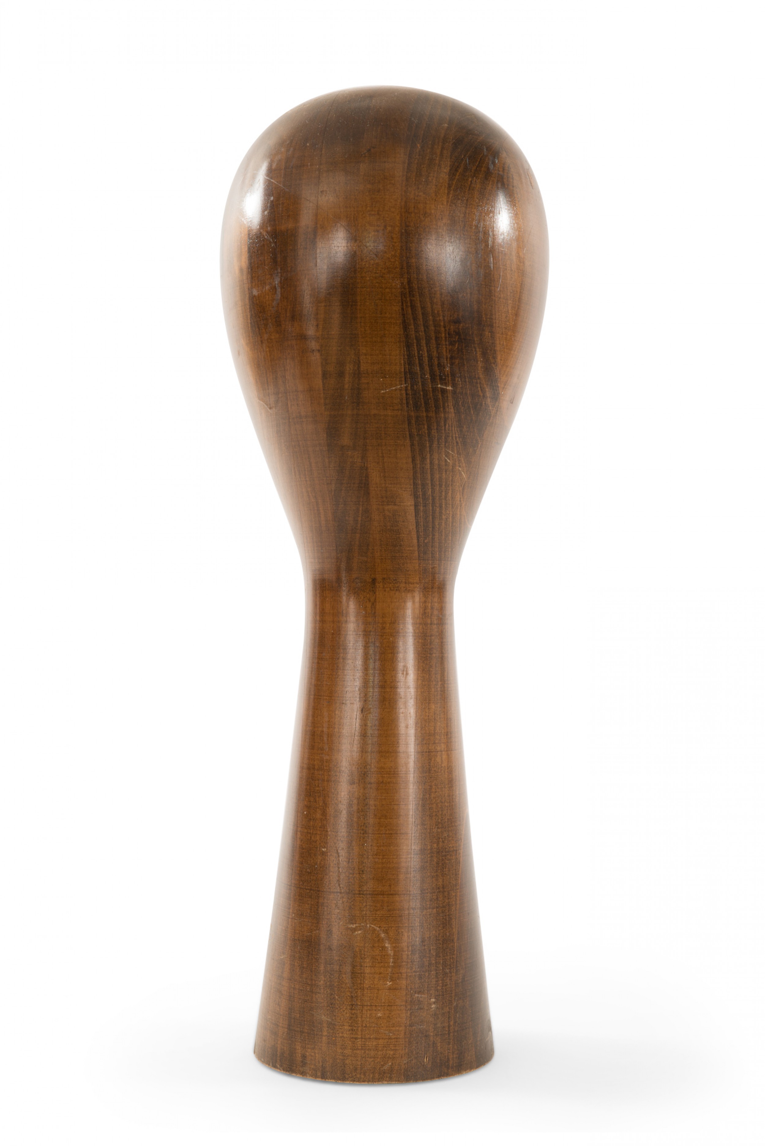 Vintage polished dark wood tall millinery block with rounded top and conical base.