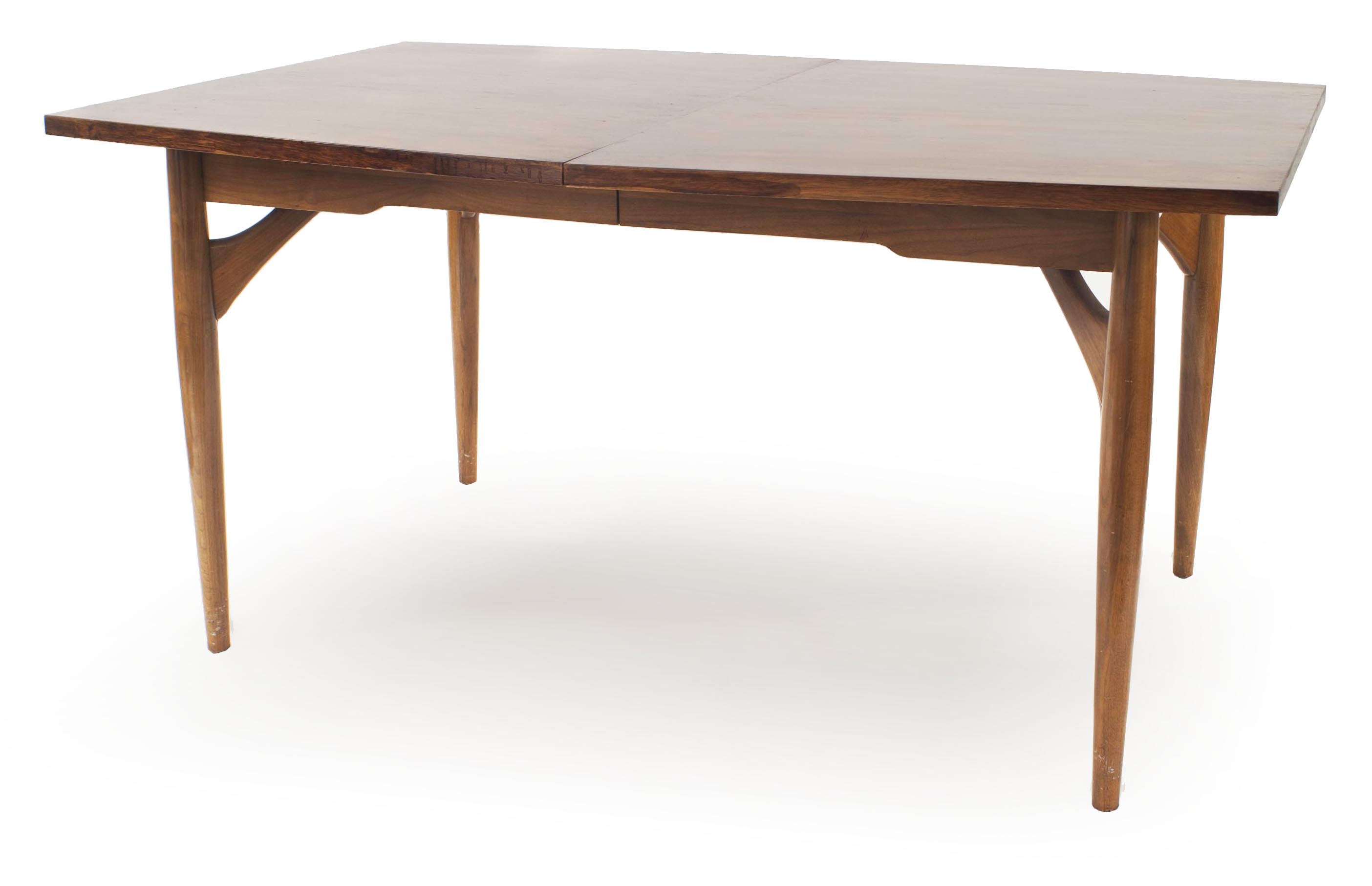 Mid-Century Scandinavian teak dining table with 4 cylindrical tapered legs (3 leaves) (Related Items: 061120, 061119)