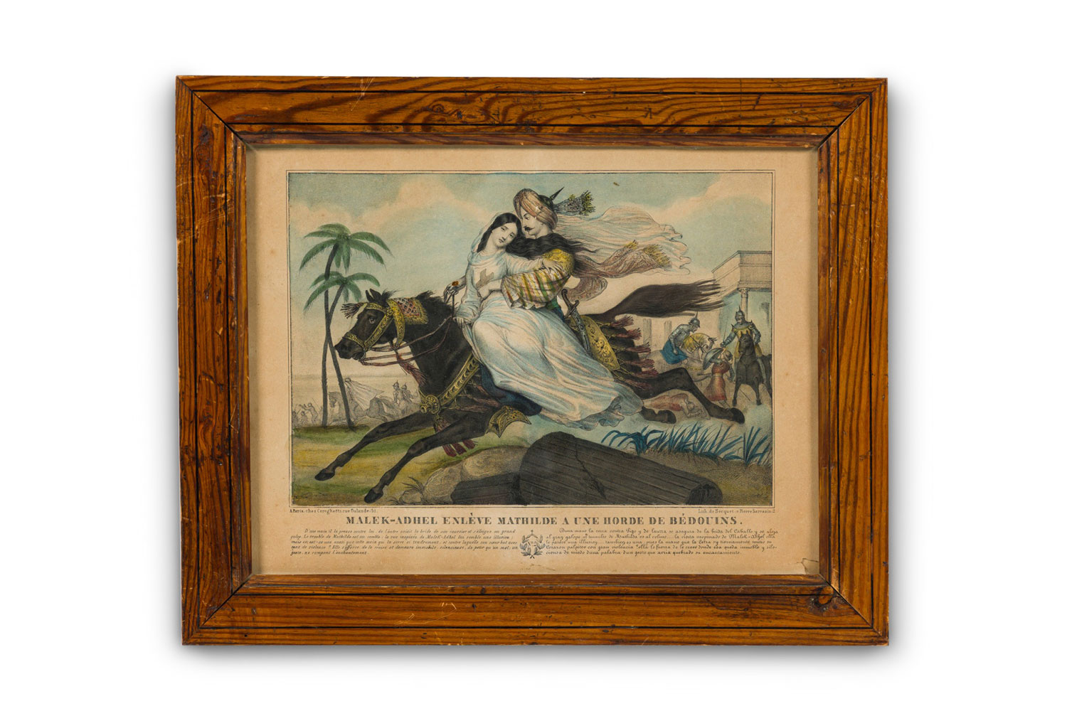 French (19th Cent) colored lithographs of Crusader scenes depicting the history of Mathilde with text in French & Spanish (Associated pieces: 051920A, 051920C, 051920D)