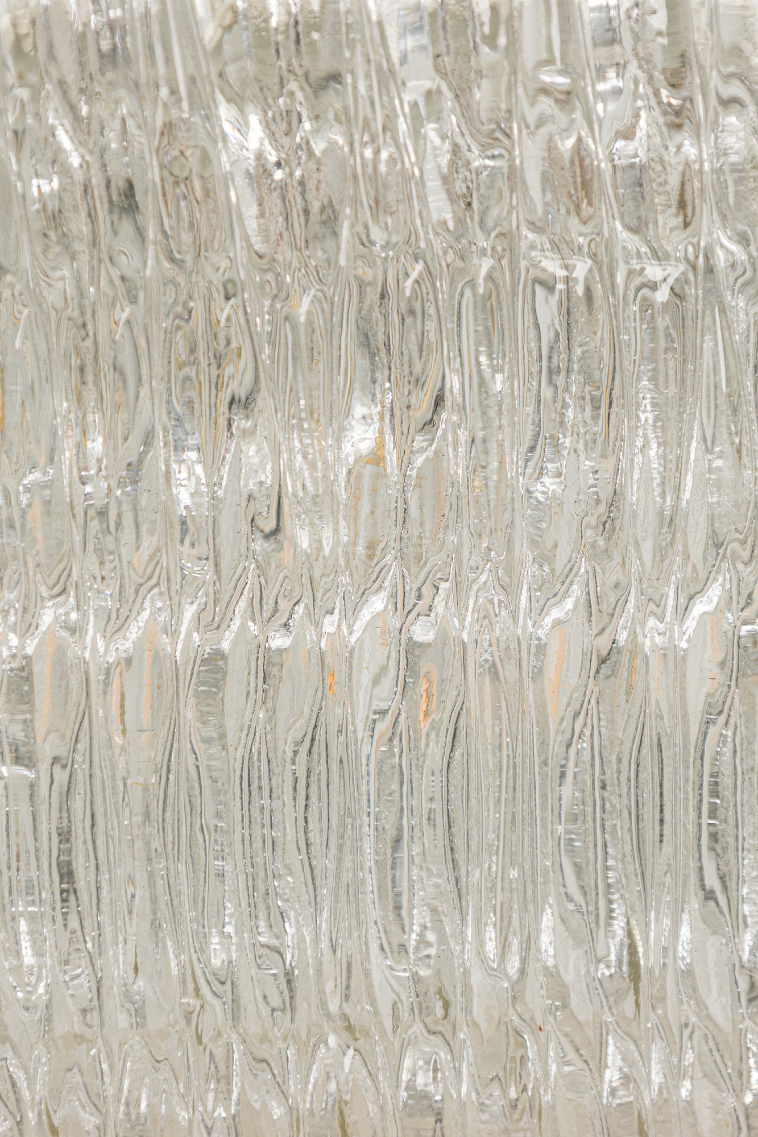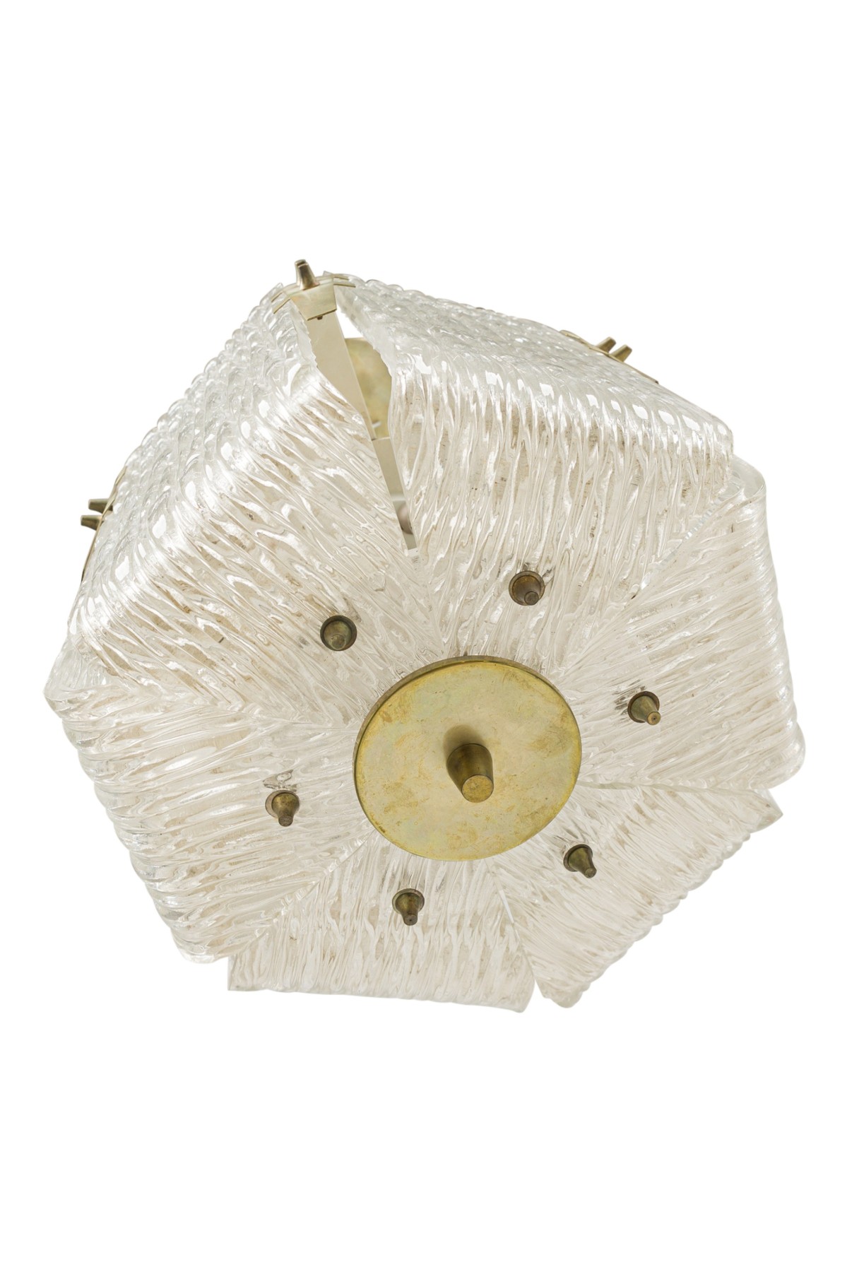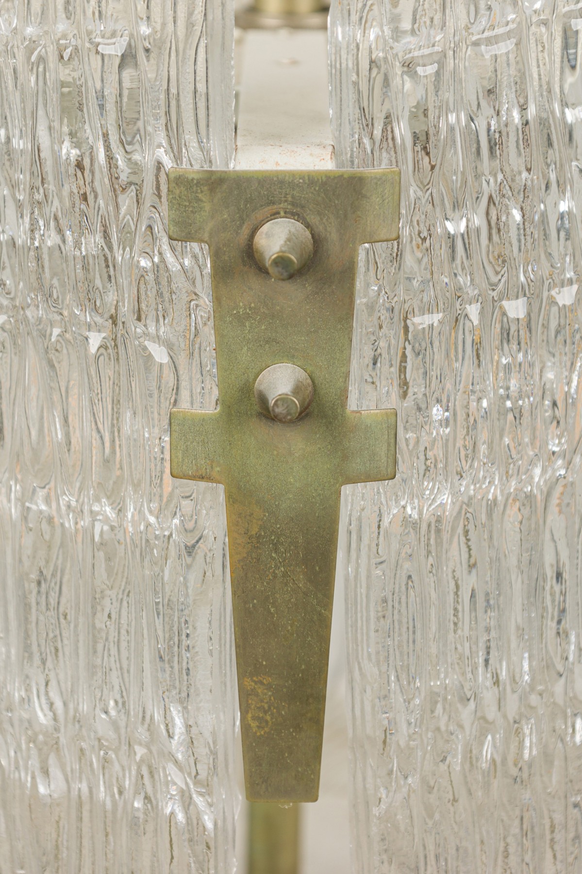 3 Mid-Century (possibly Scandinavian) chandelier with 6 clear textured rectangular shaped panels with a tiered design supported in a brass frame with a round bottom finial (PRICED EACH)