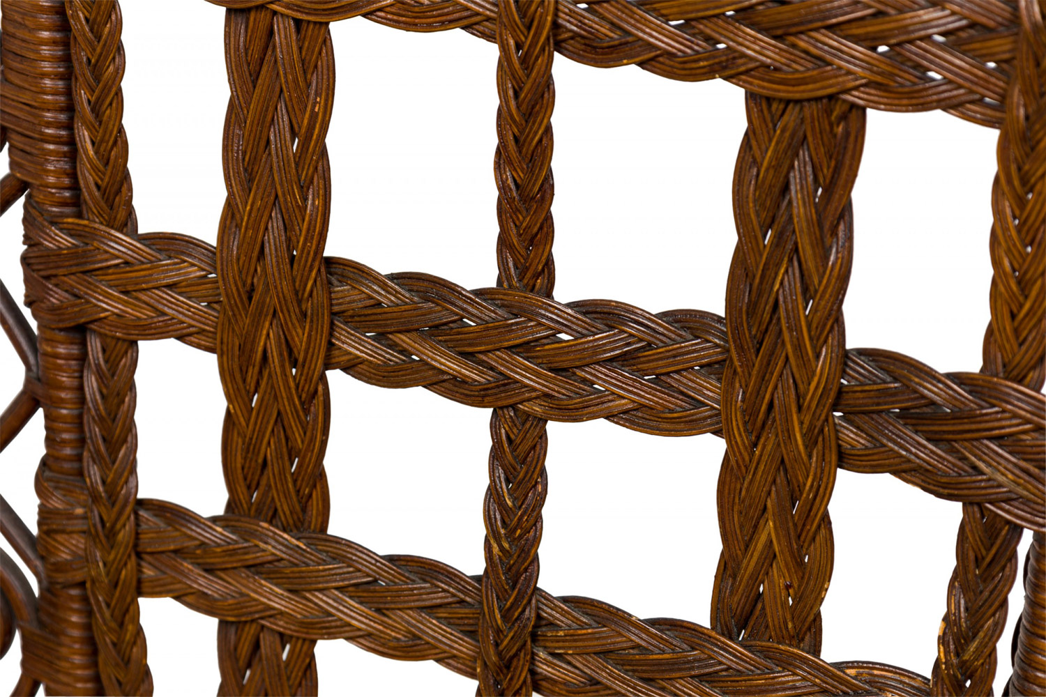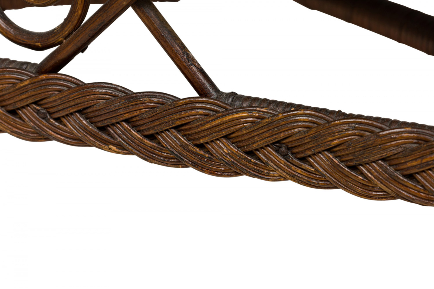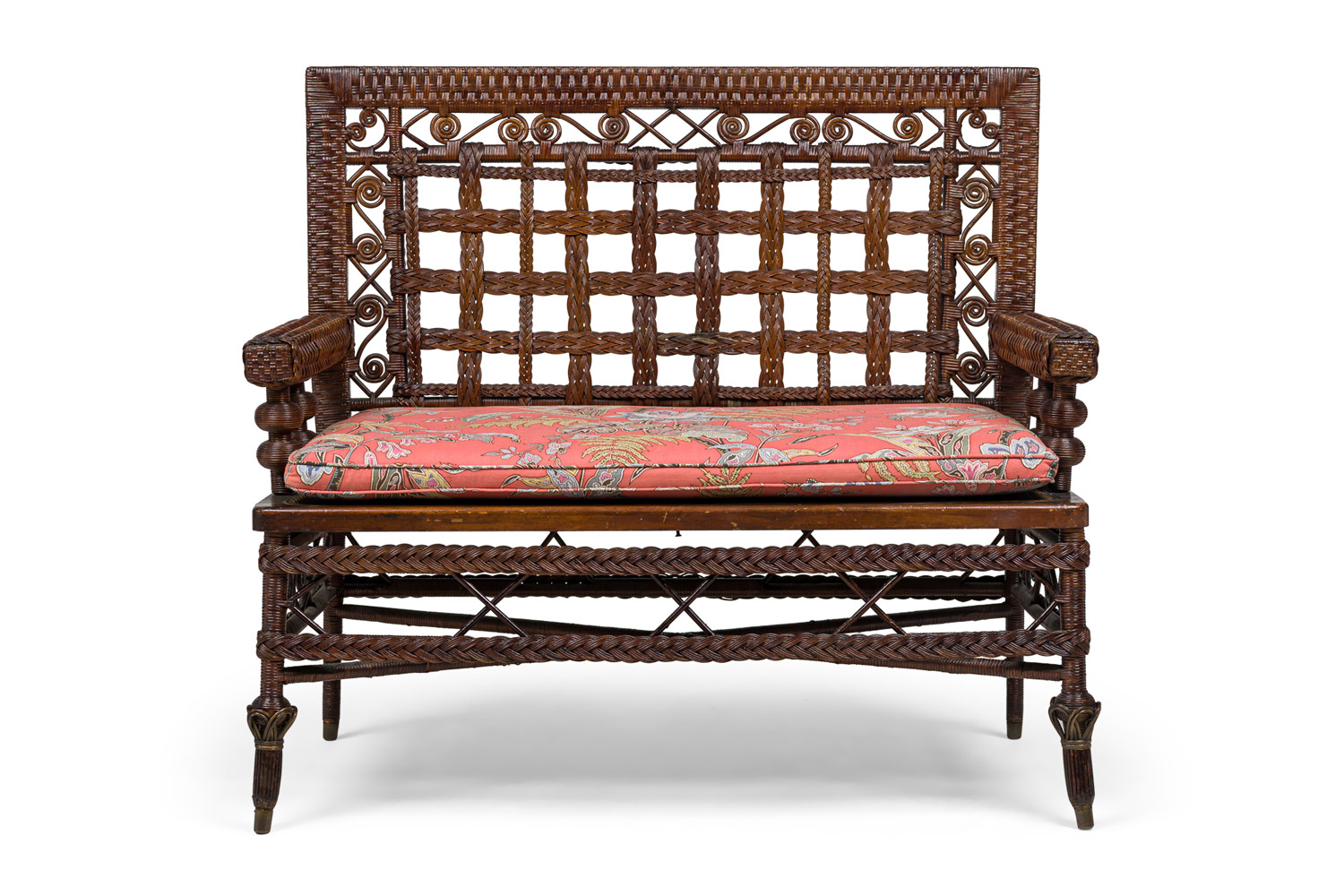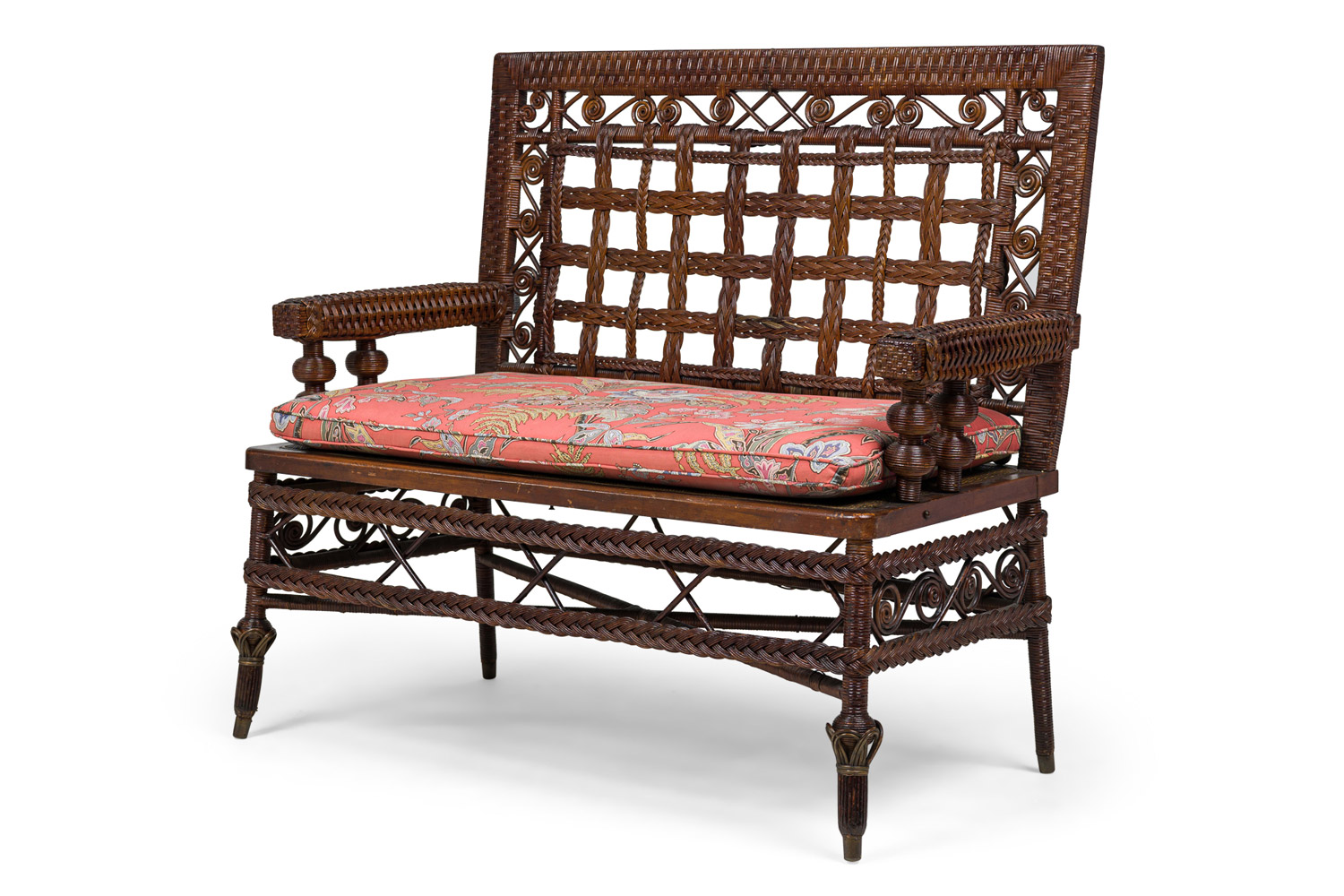 3 Piece American Victorian Braided Wicker Scroll and Lattice Design Seating Set with Floral Cushions