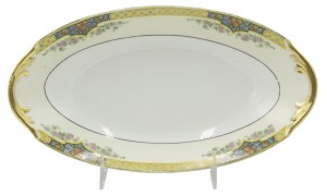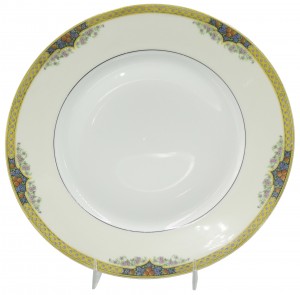 37 Piece French Victorian Limoges porcelain dinner service with yellow border and floral trim (PRICED AS SET)