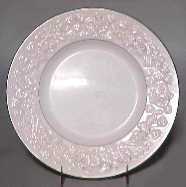 SET of 12 English Victorian cream-colored porcelain luncheon plates with floral-relief border and green trim (PRICED AS SET)