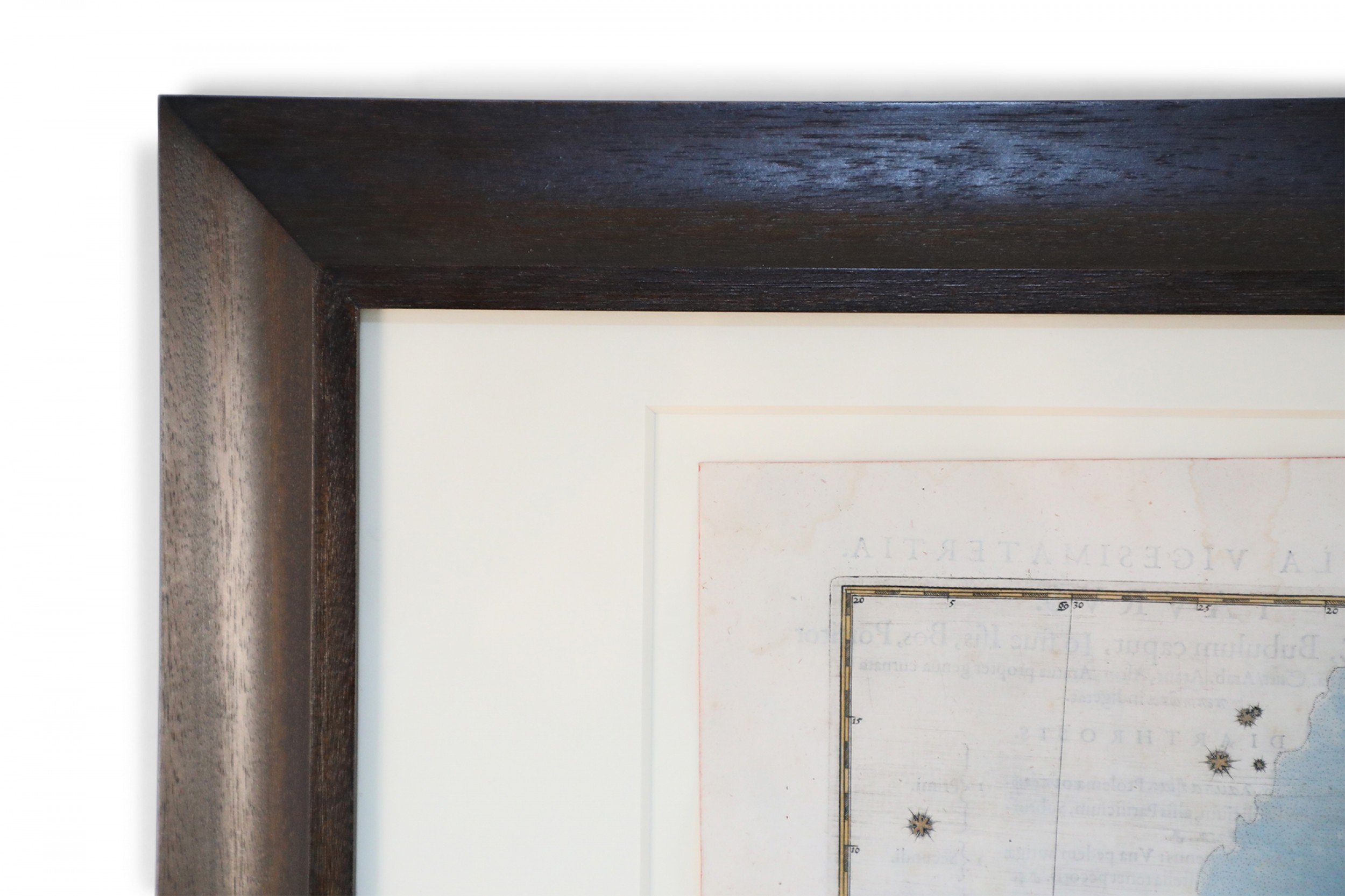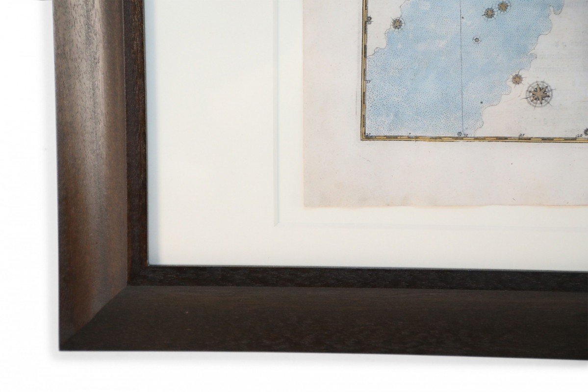 Renaissance (17th Century) engraved, hand-colored etching for Johann Bayer's book 'Uranometria', a star atlas, in rectangular wooden frame with white mat. Plate is taken directly from the book. (ALEXANDER MAIR)(Others in series: NWL6291A-NWL6291T)