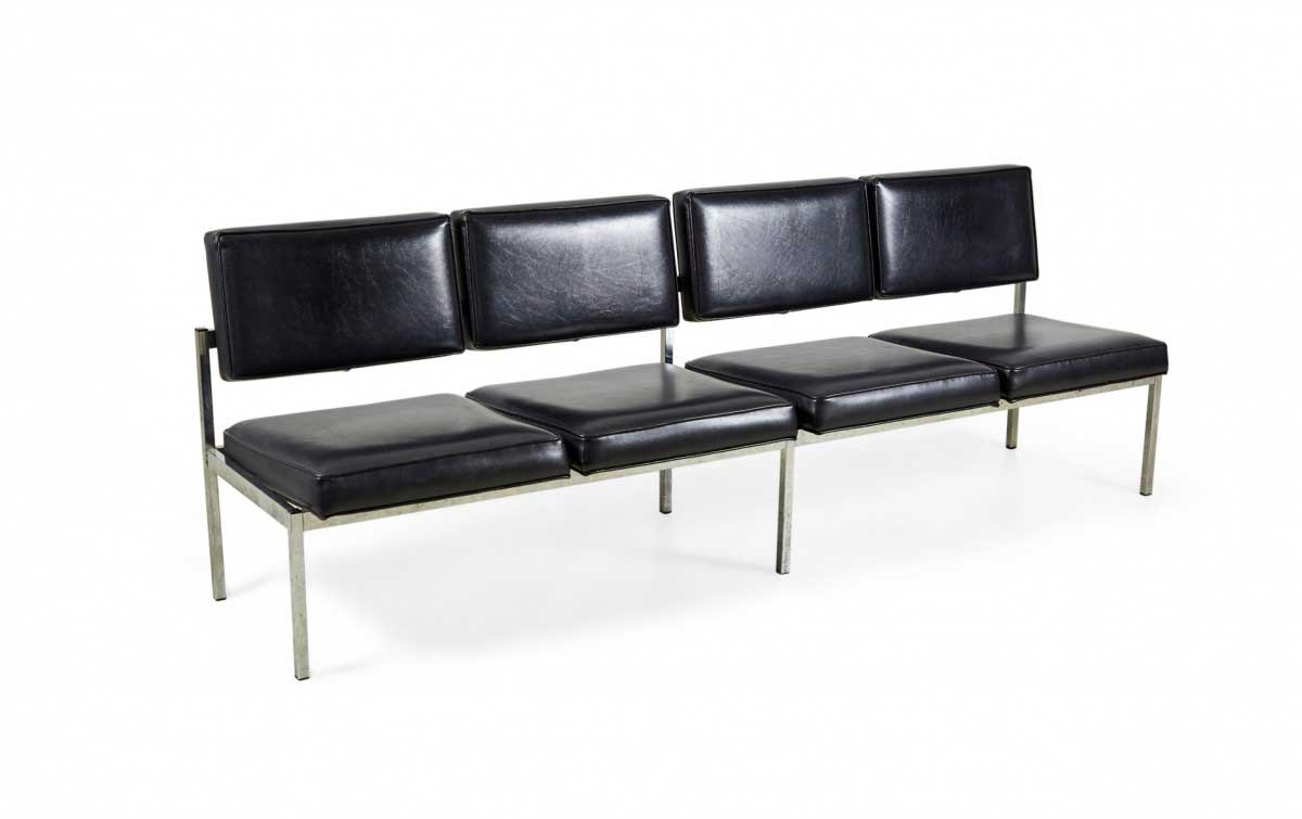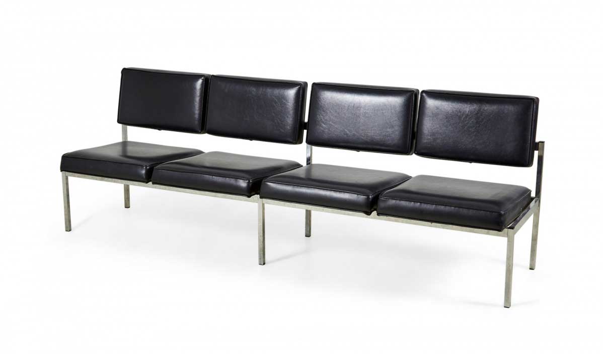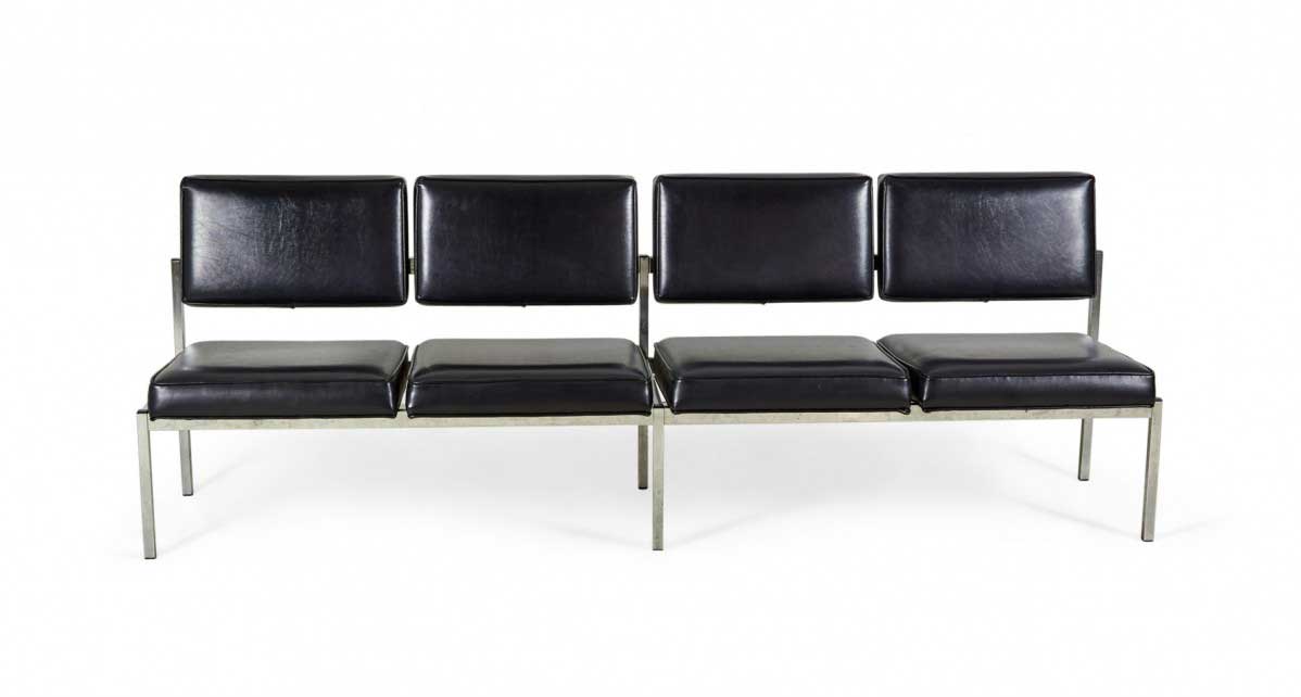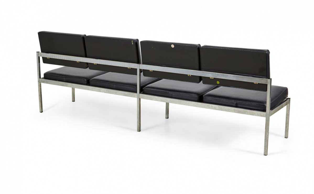 Choose one of the options below.American Mid-Century Black Vinyl and Chrome Four Seat Office Bench