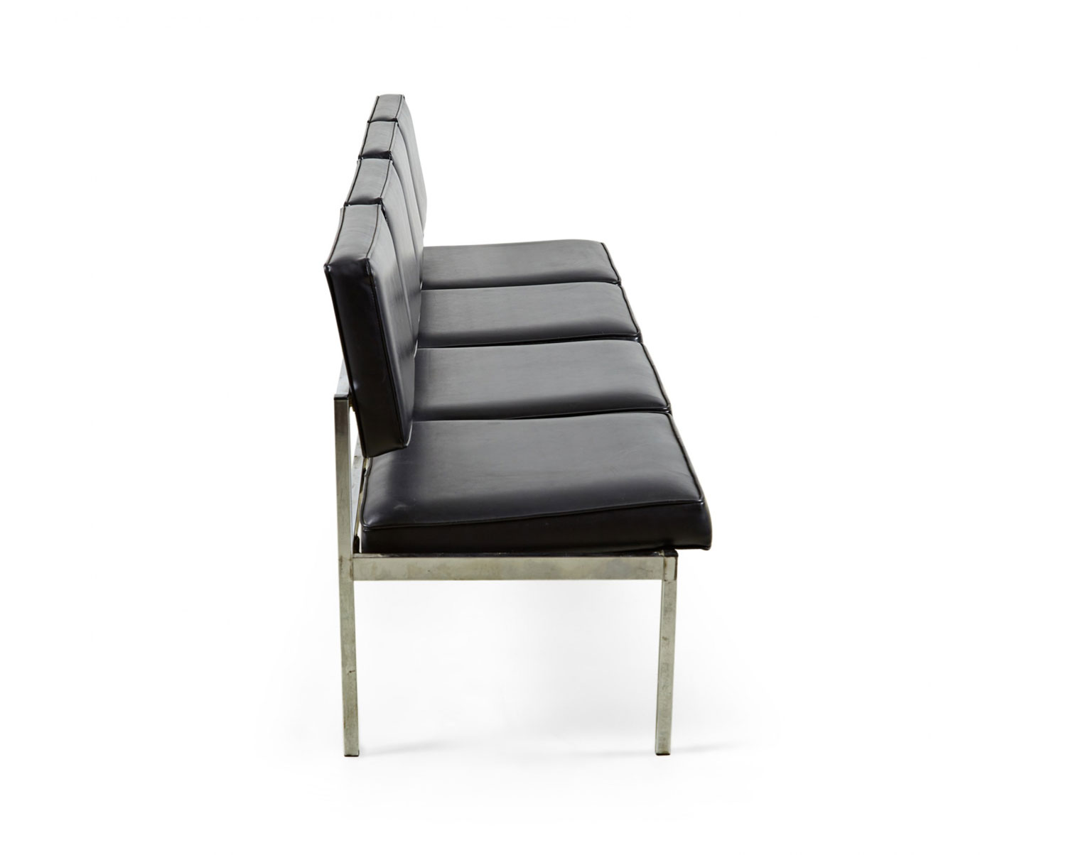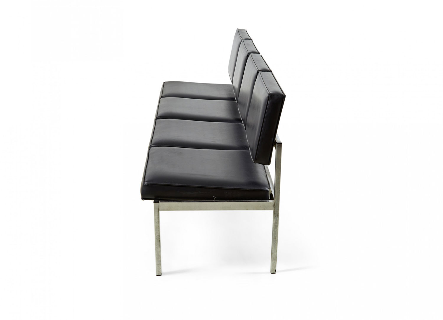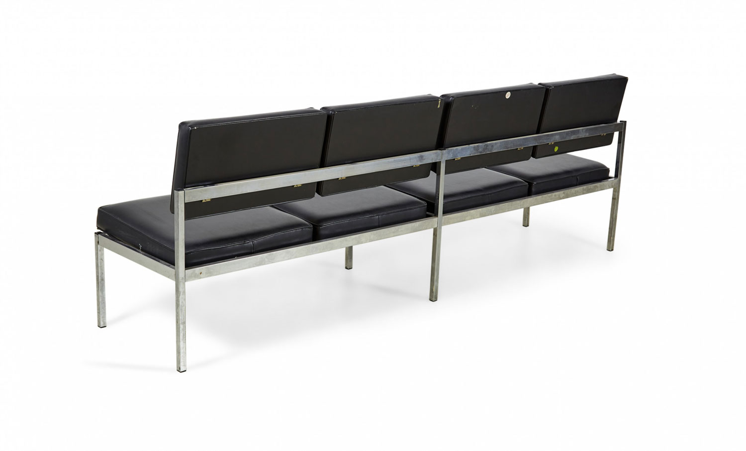 Choose one of the options below.American Mid-Century Black Vinyl and Chrome Four Seat Office Bench