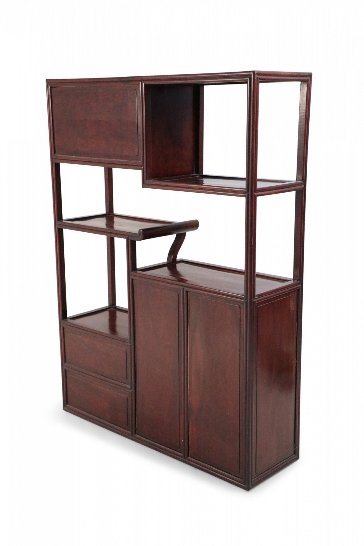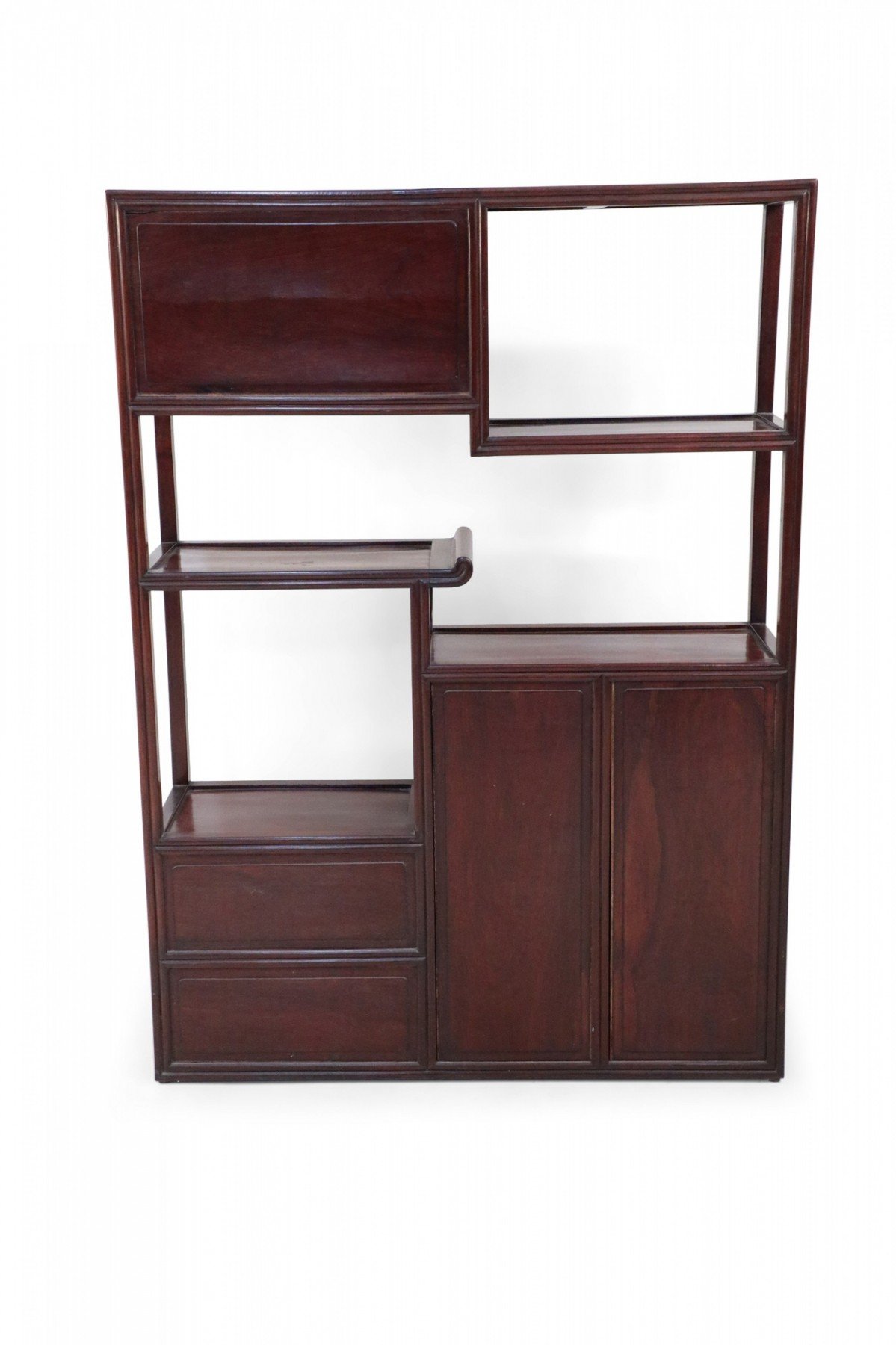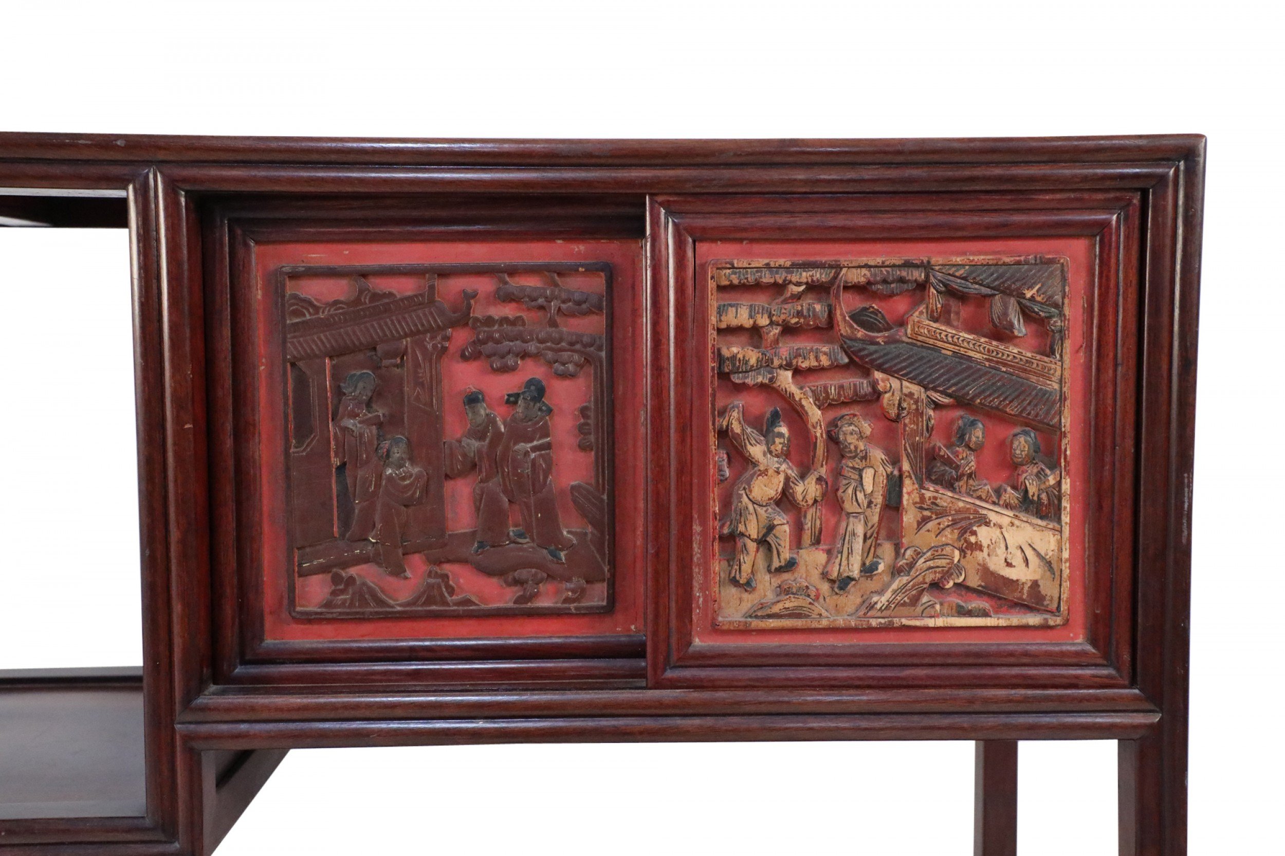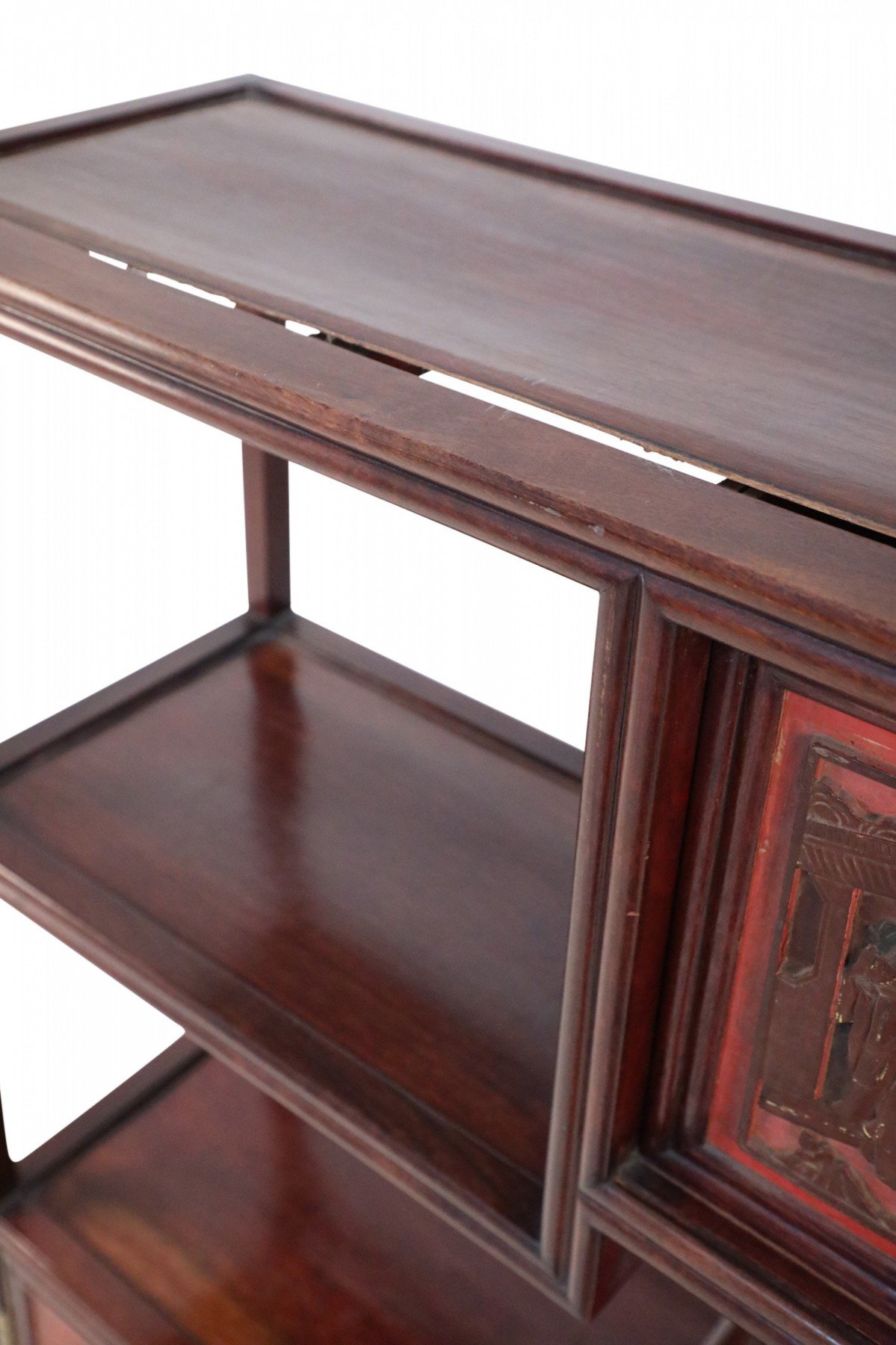 Chinese Carved Wood and Red Accented Bogu Etagere Shelf