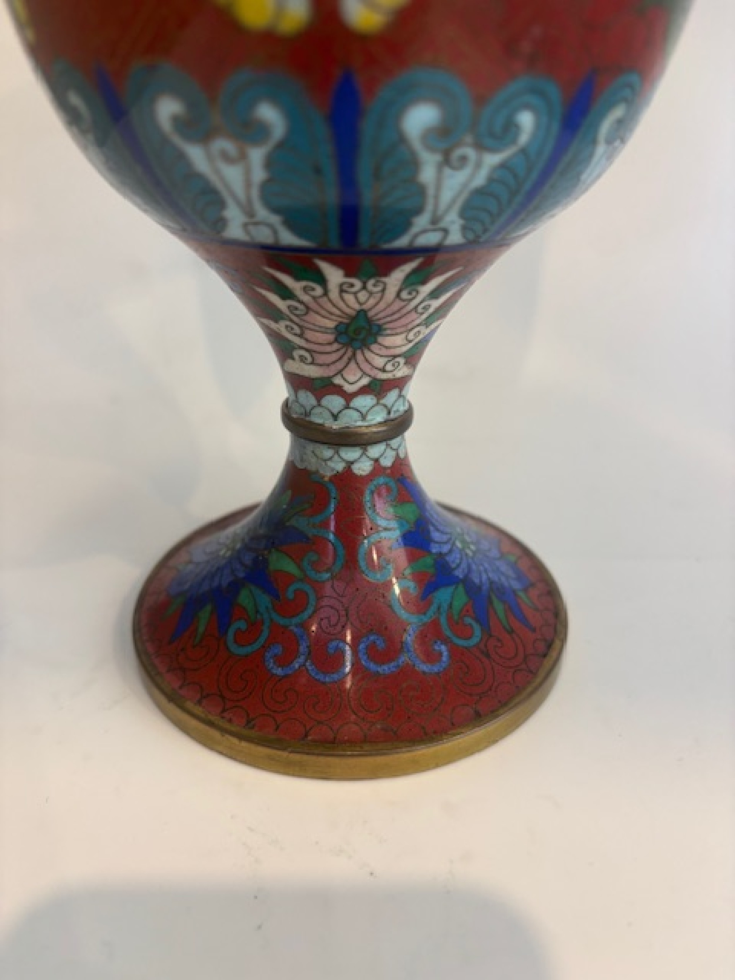 Chinese porcelain Meiping vase in a red oxblood hue decorated with a white natural motif capturing the silhouettes of birds, vines and leaves.