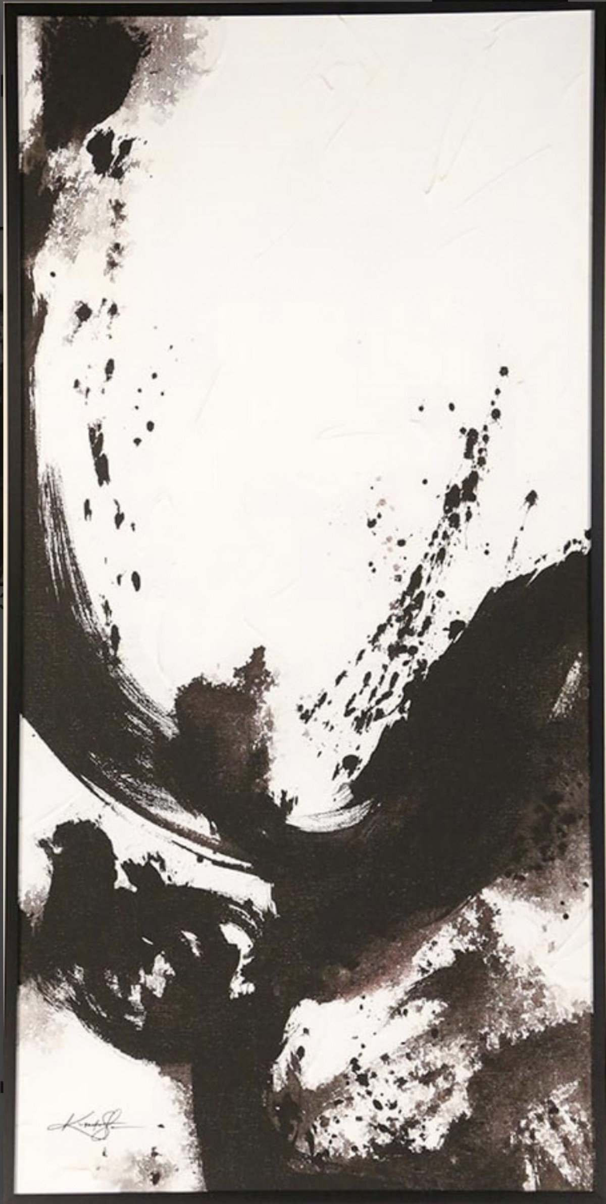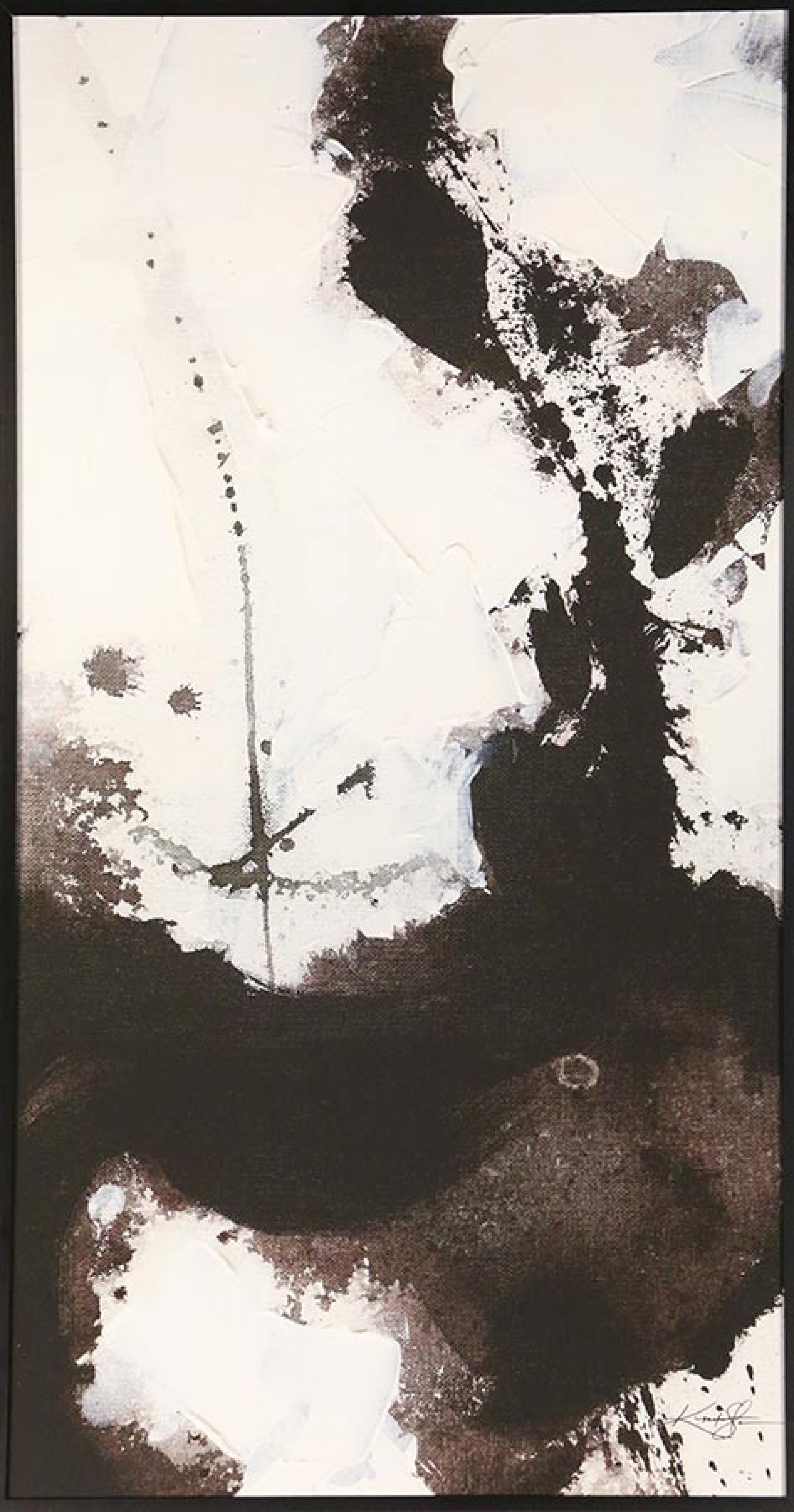 Contemporary canvas print of an abstract watercolor painting in brown and white in a rectangular thin black metal frame. (Companion piece: NWL421)