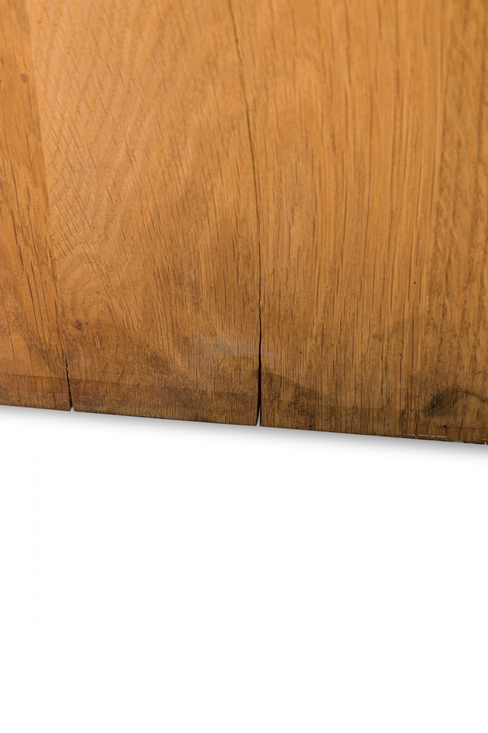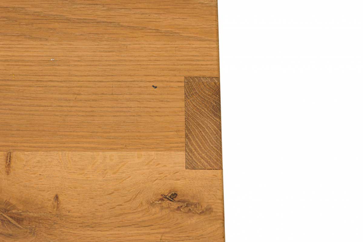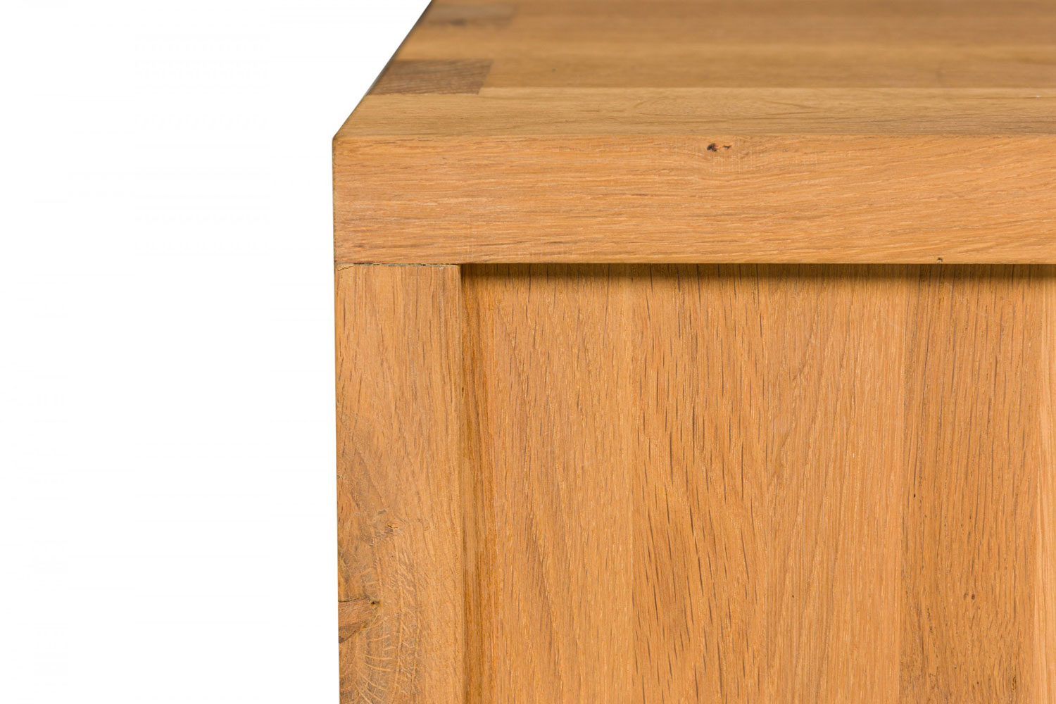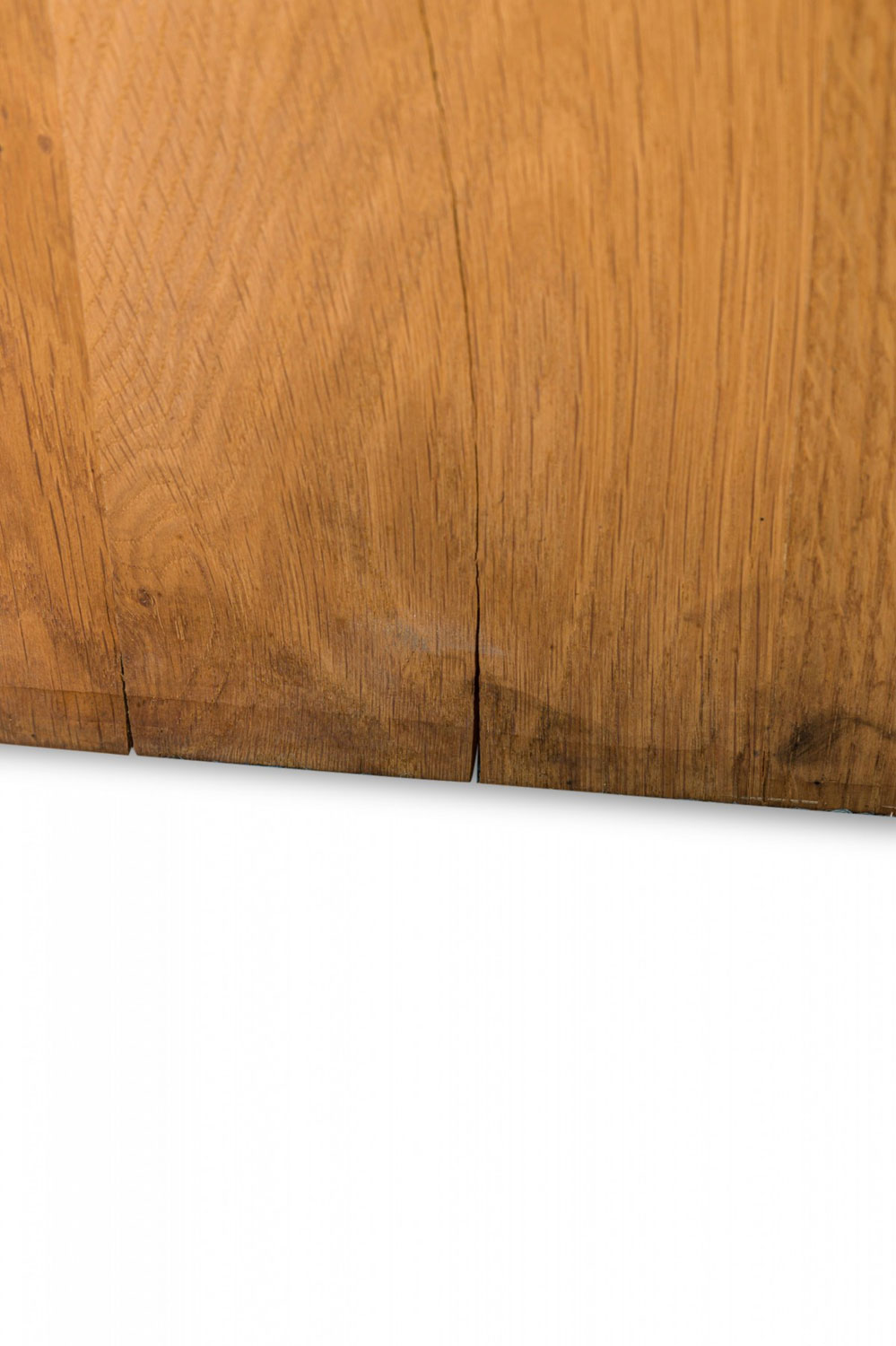 Contemporary desk and tabouret set comprised of a bracket-form raw oak desk with dovetailed joints and a matching three drawer raw oak tabouret, resting on four casters. (PRICED AS SET)