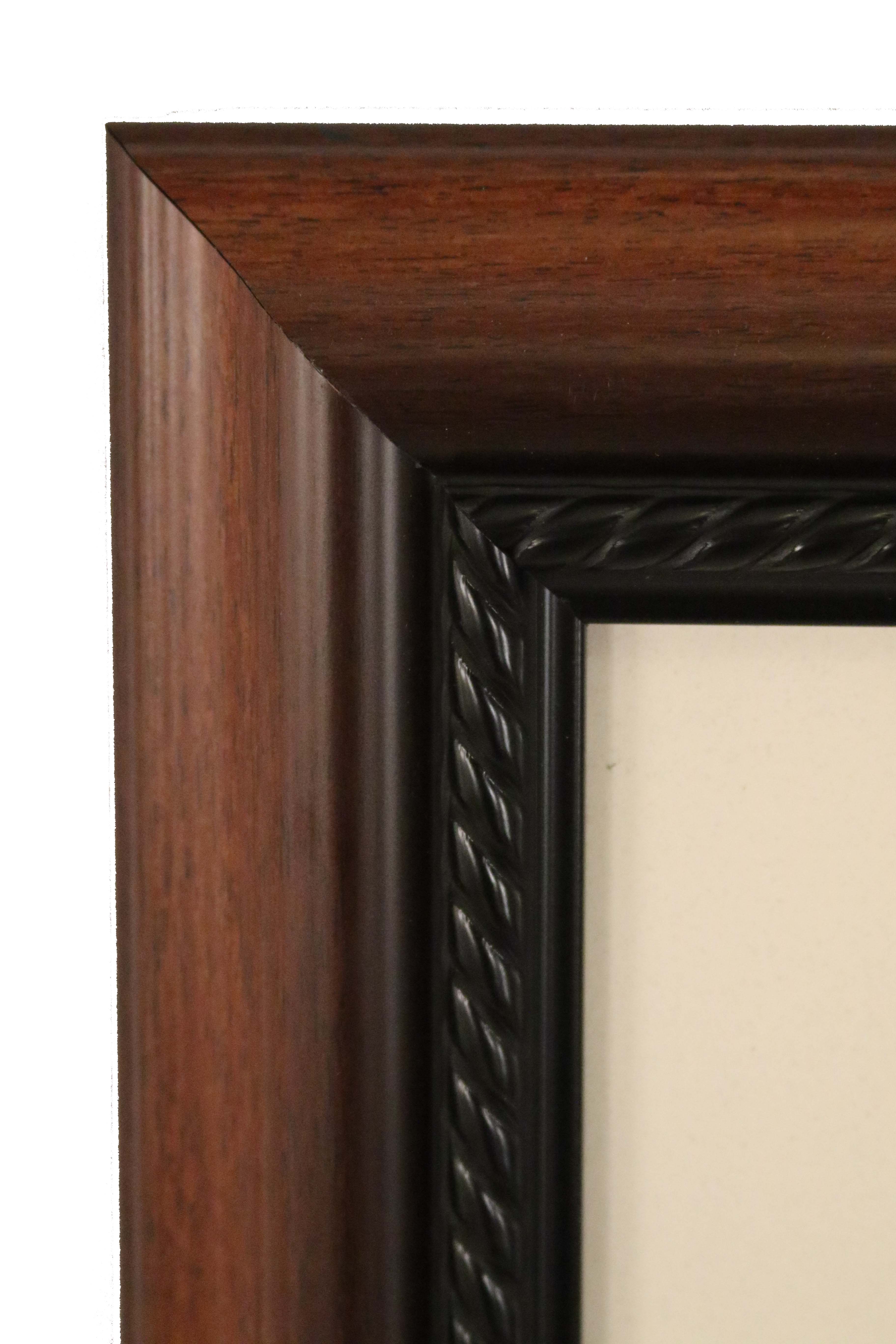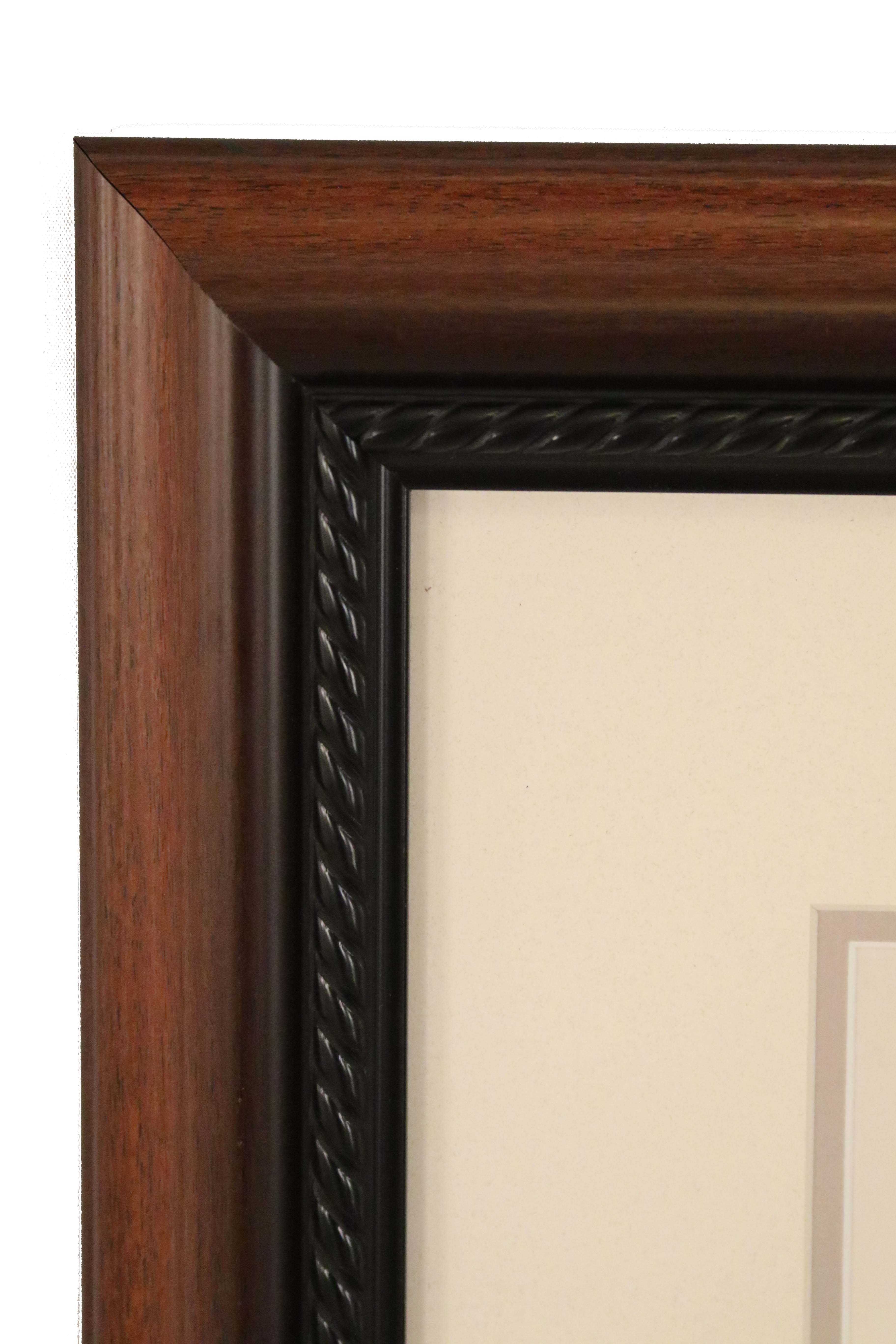 Contemporary reproduction of a watercolor nude portrait painting in a cherry wooden frame
