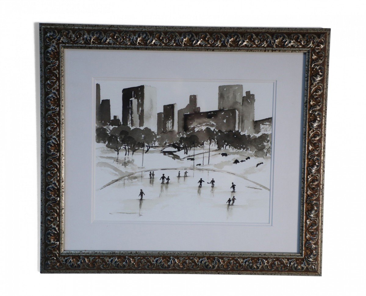 Framed Print of a Watercolor Painting of the Central Park Ice Skating Rink