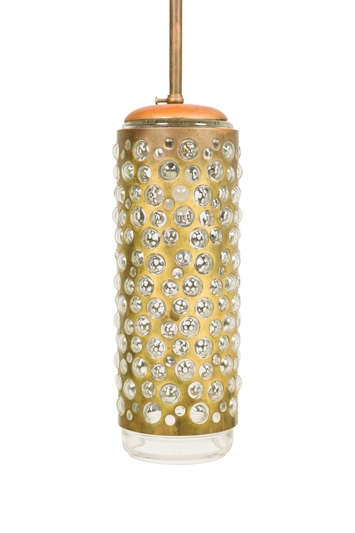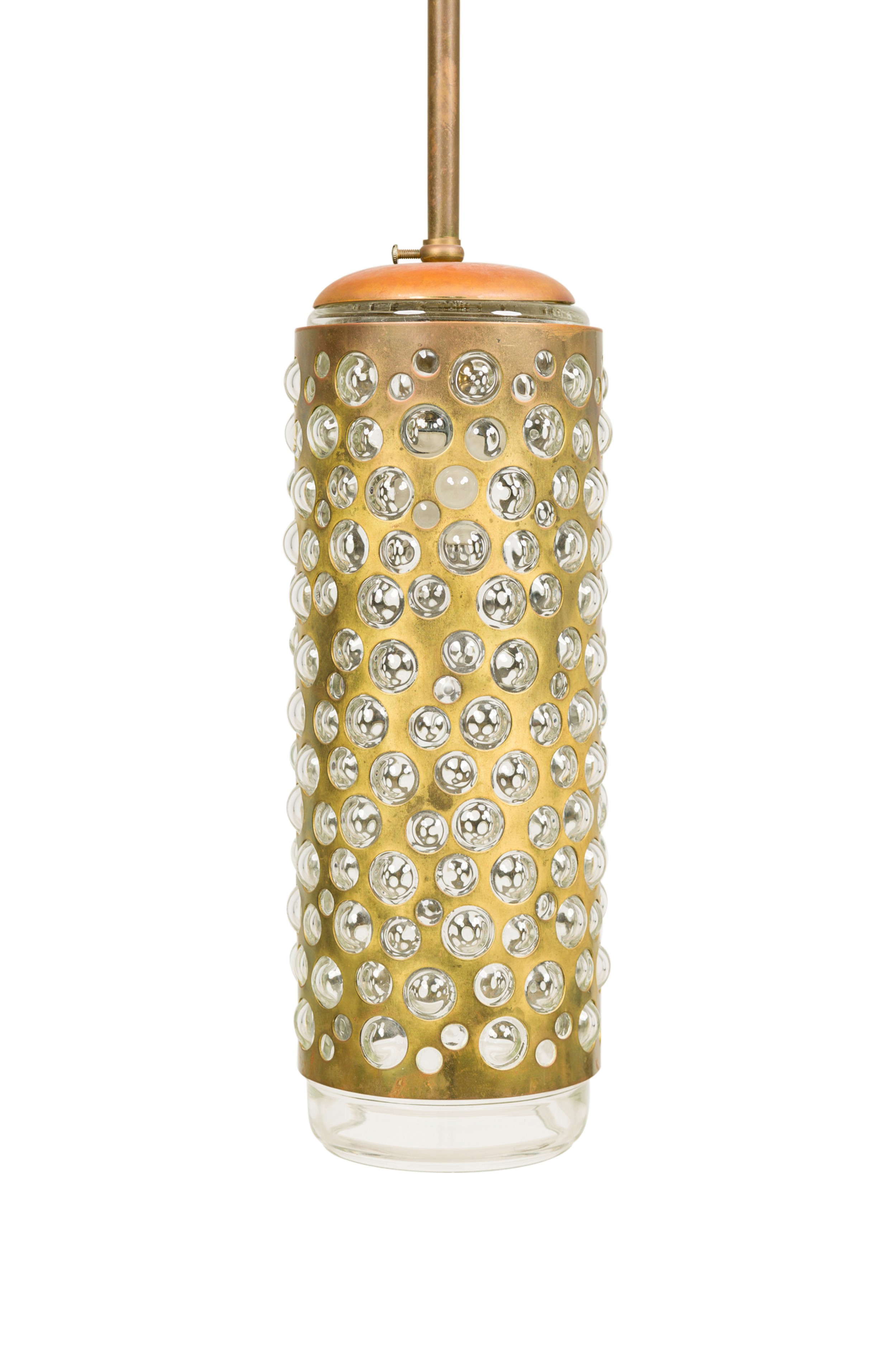 3 Contemporary Cylinder chandeliers / lanterns with glass bubble design suspended from a center post (PRICED EACH)