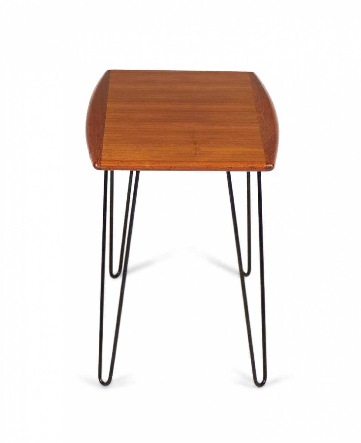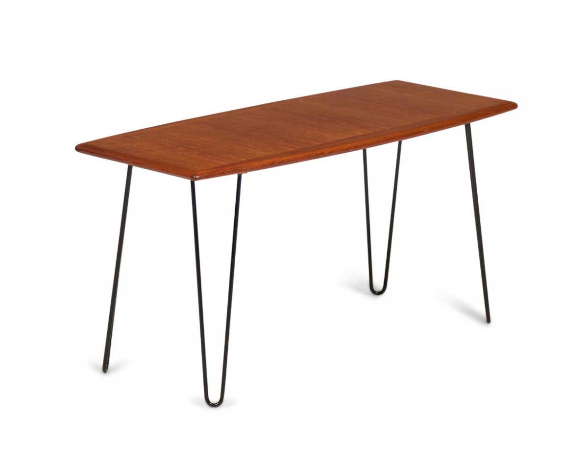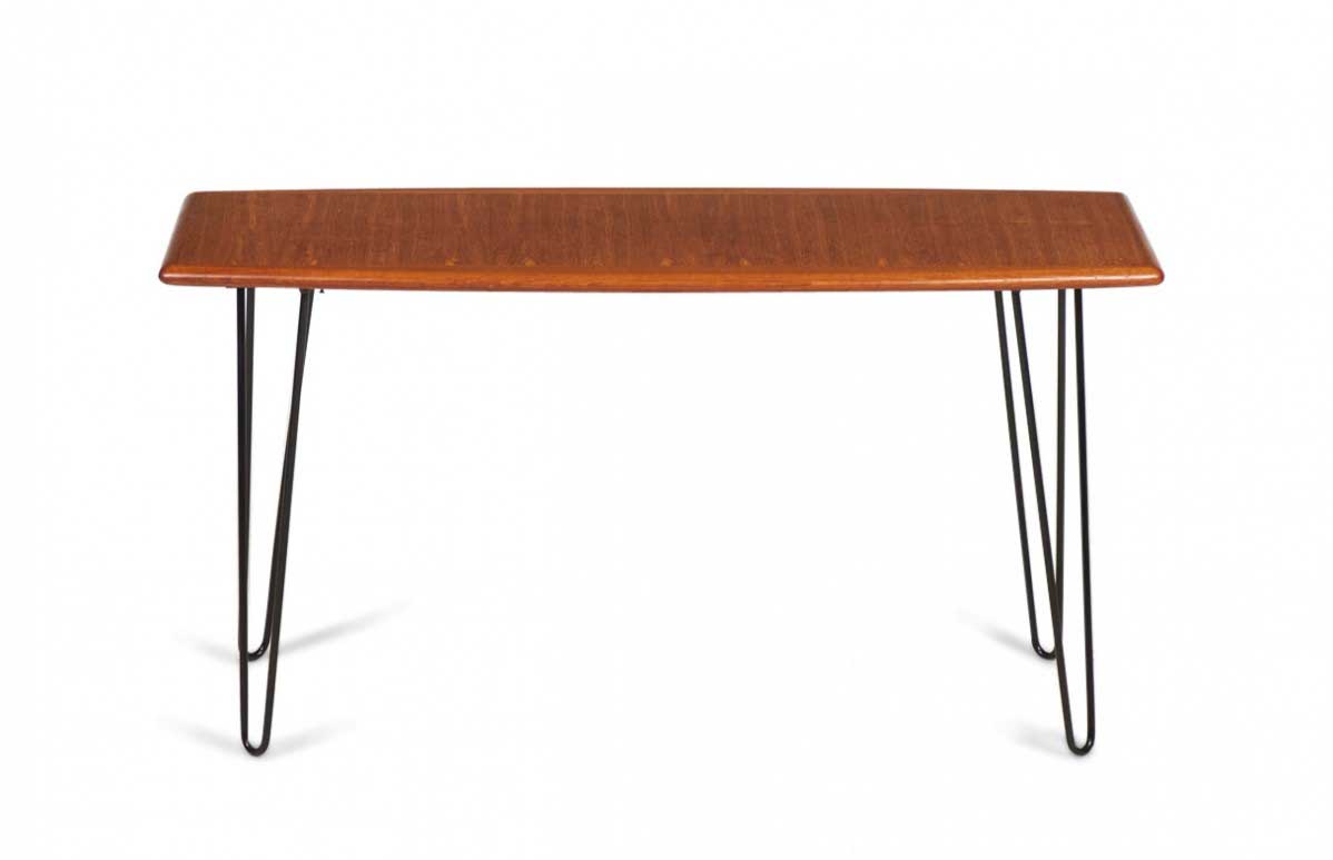 Danish mid-century rectangular teak coffee table on 4 iron hairpin legs
