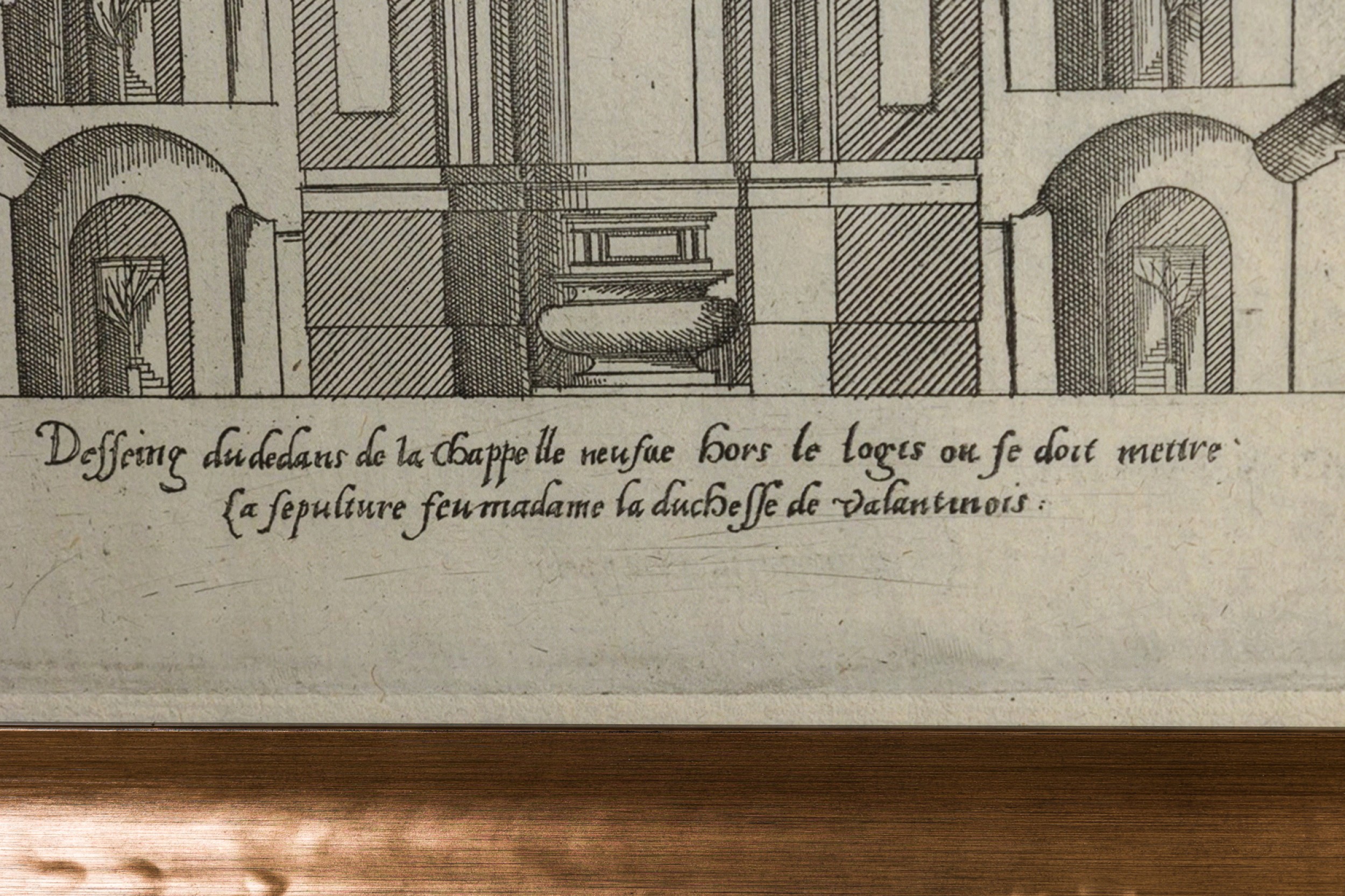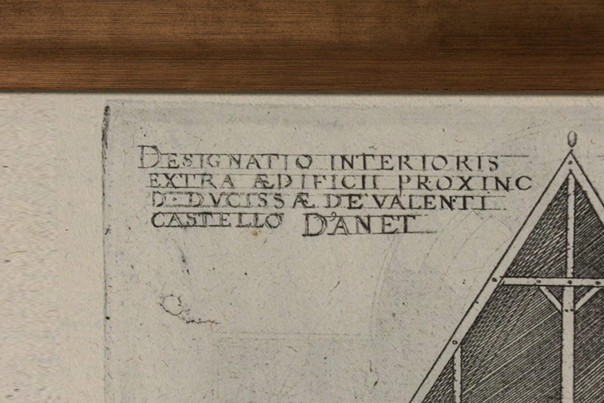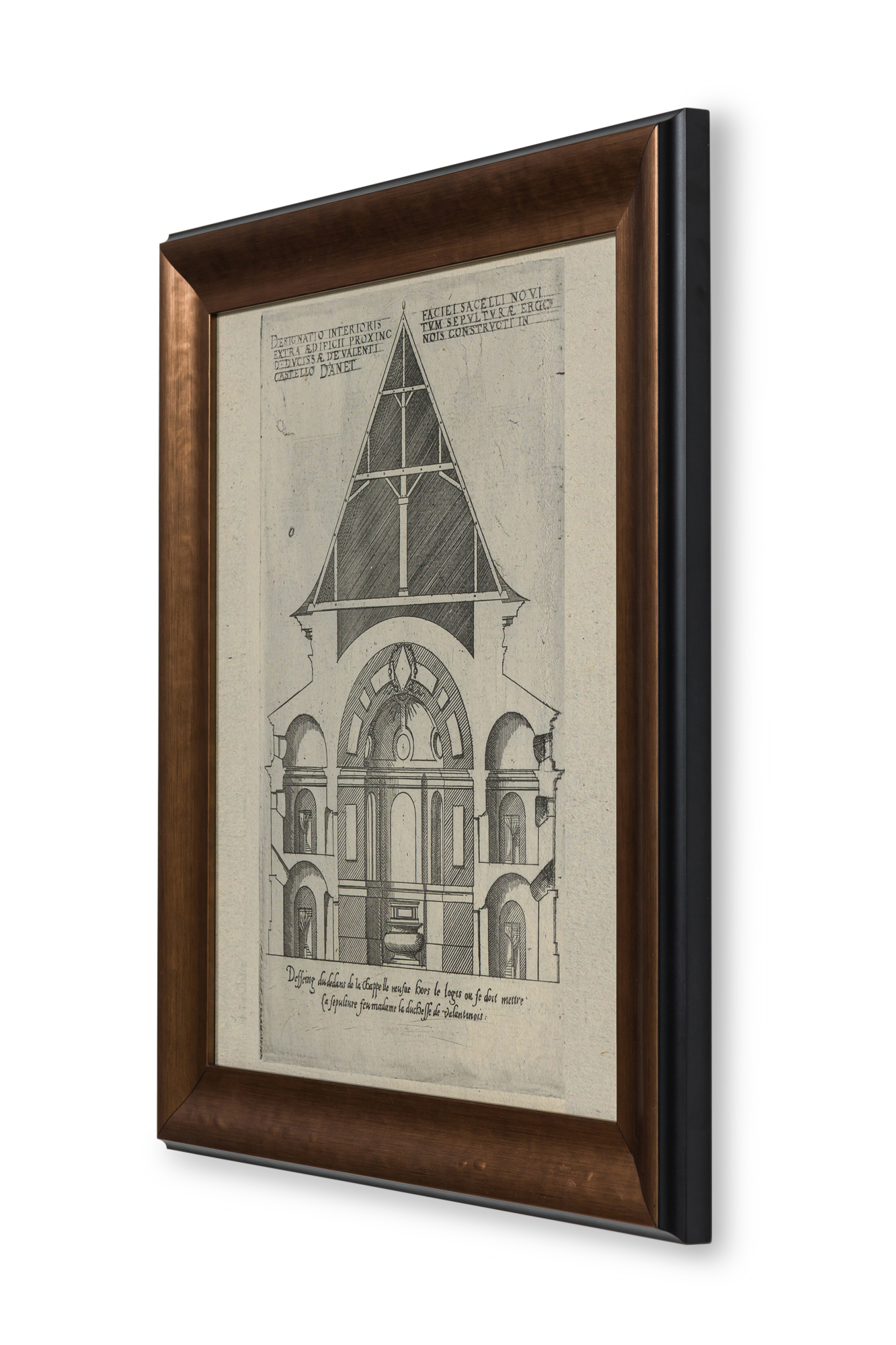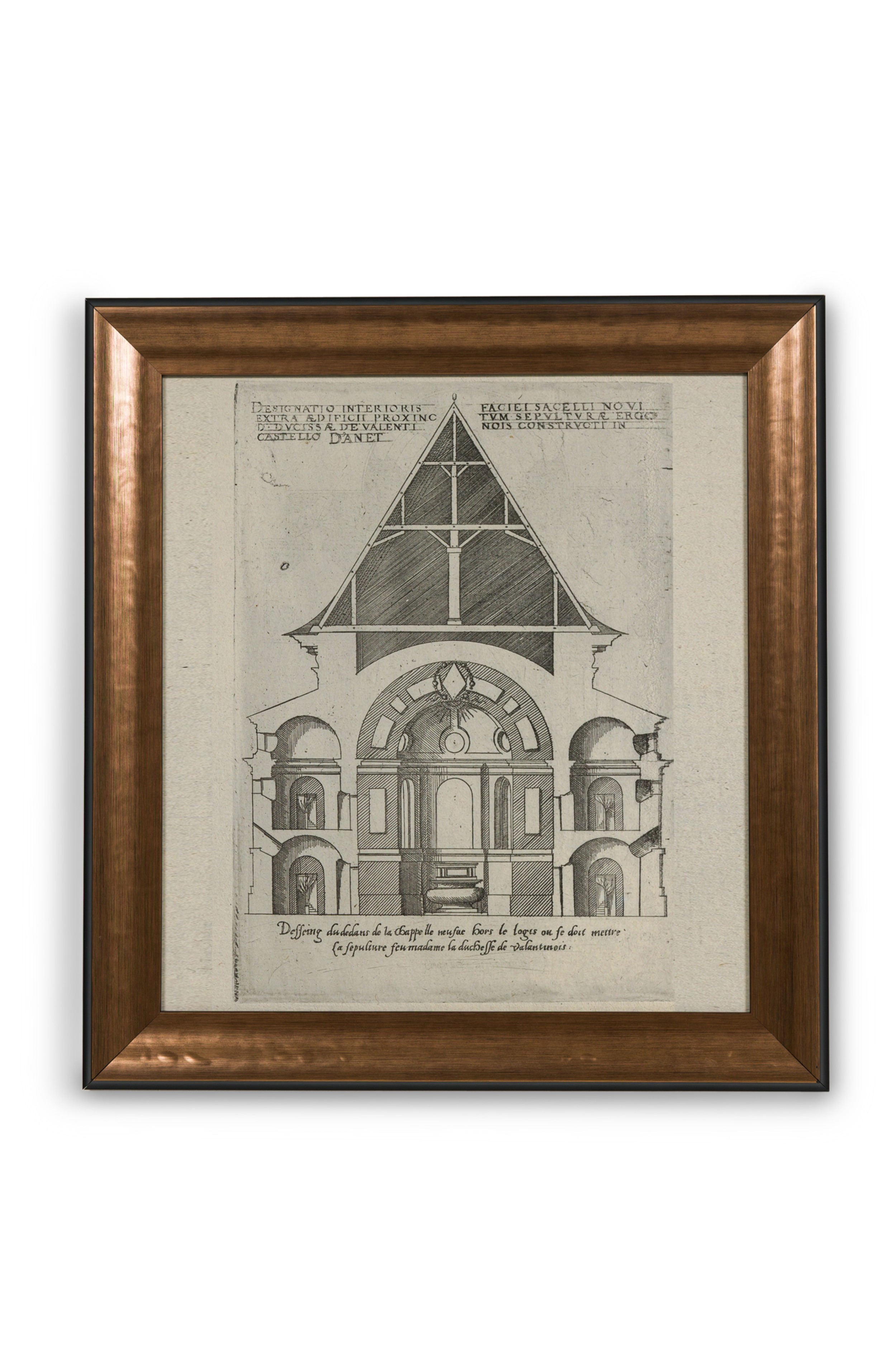 Choose one of the options below.Early 1600s Architectural Drawing of Building on Aged Paper in Bronze Frame