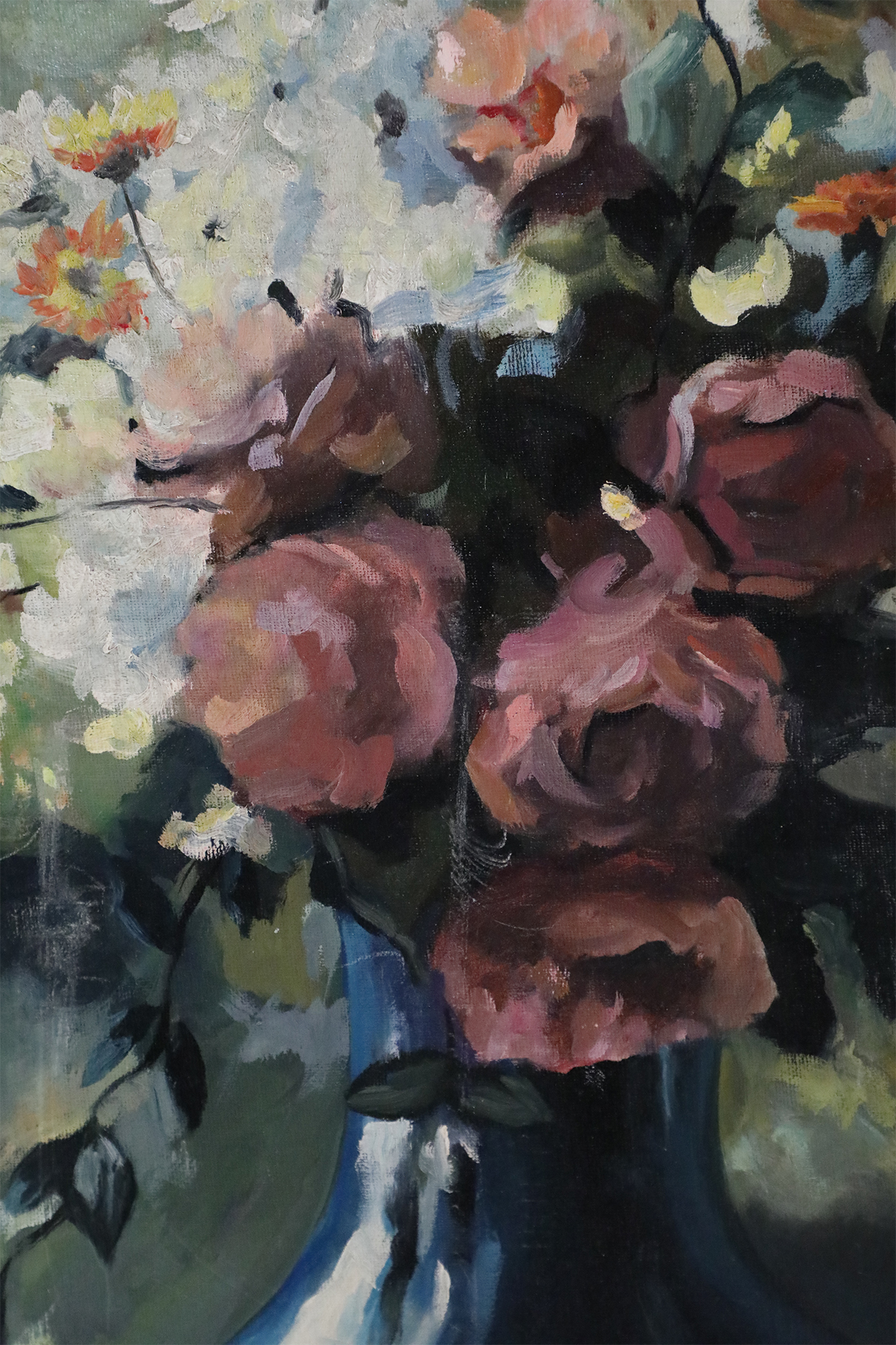 Floral Arrangement and Peaches Still Life Painting on Canvas