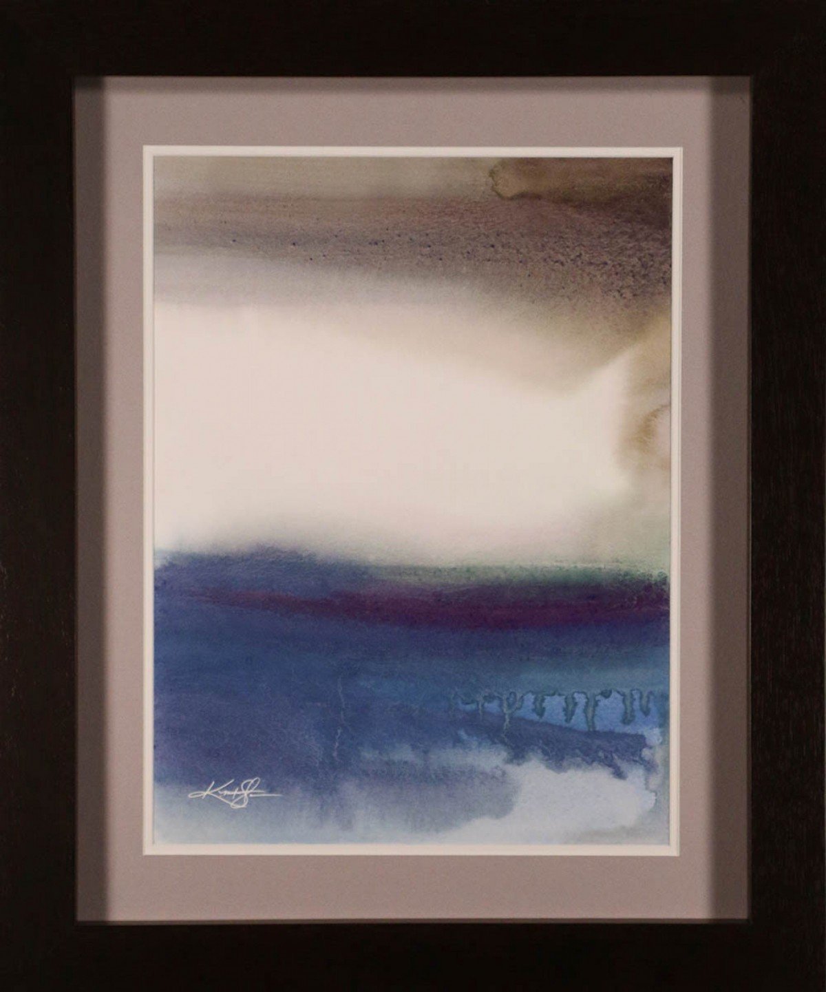 Framed Print of an Abstract Watercolor Painting in Blues and Whites