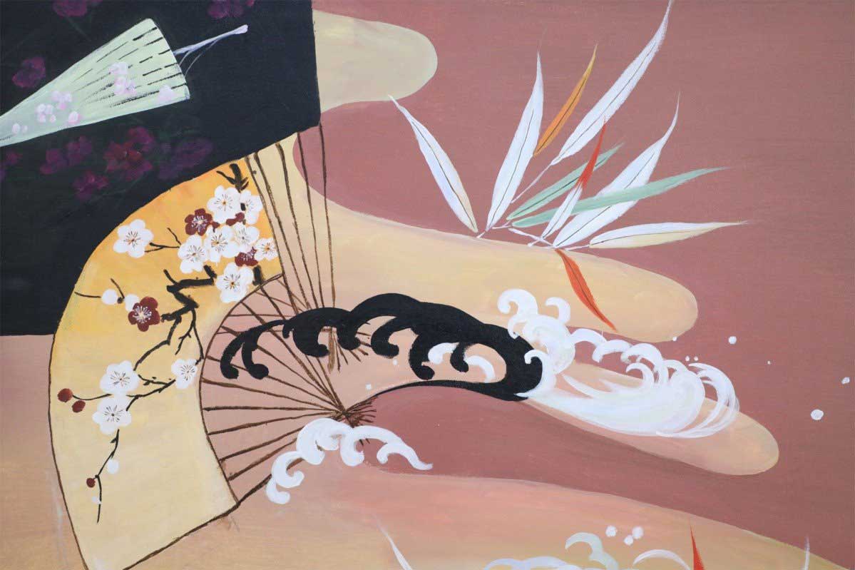 Choose one of the options below.Framed Vintage Chinese Acylic Abstract Painting of Waves and Fans