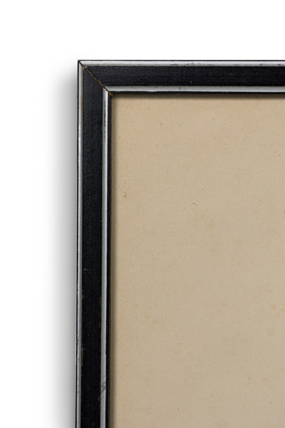 French 19th-century framed lithograph of a young elegant Parisian man in Renaissance attire holding a gestural pose in a wooden black and silver frame (Similar group of prints NWL6152A-J)