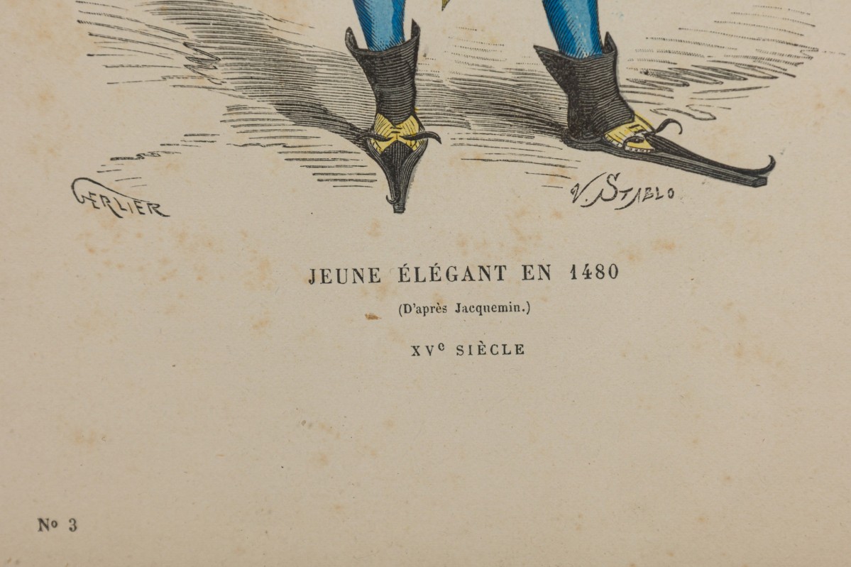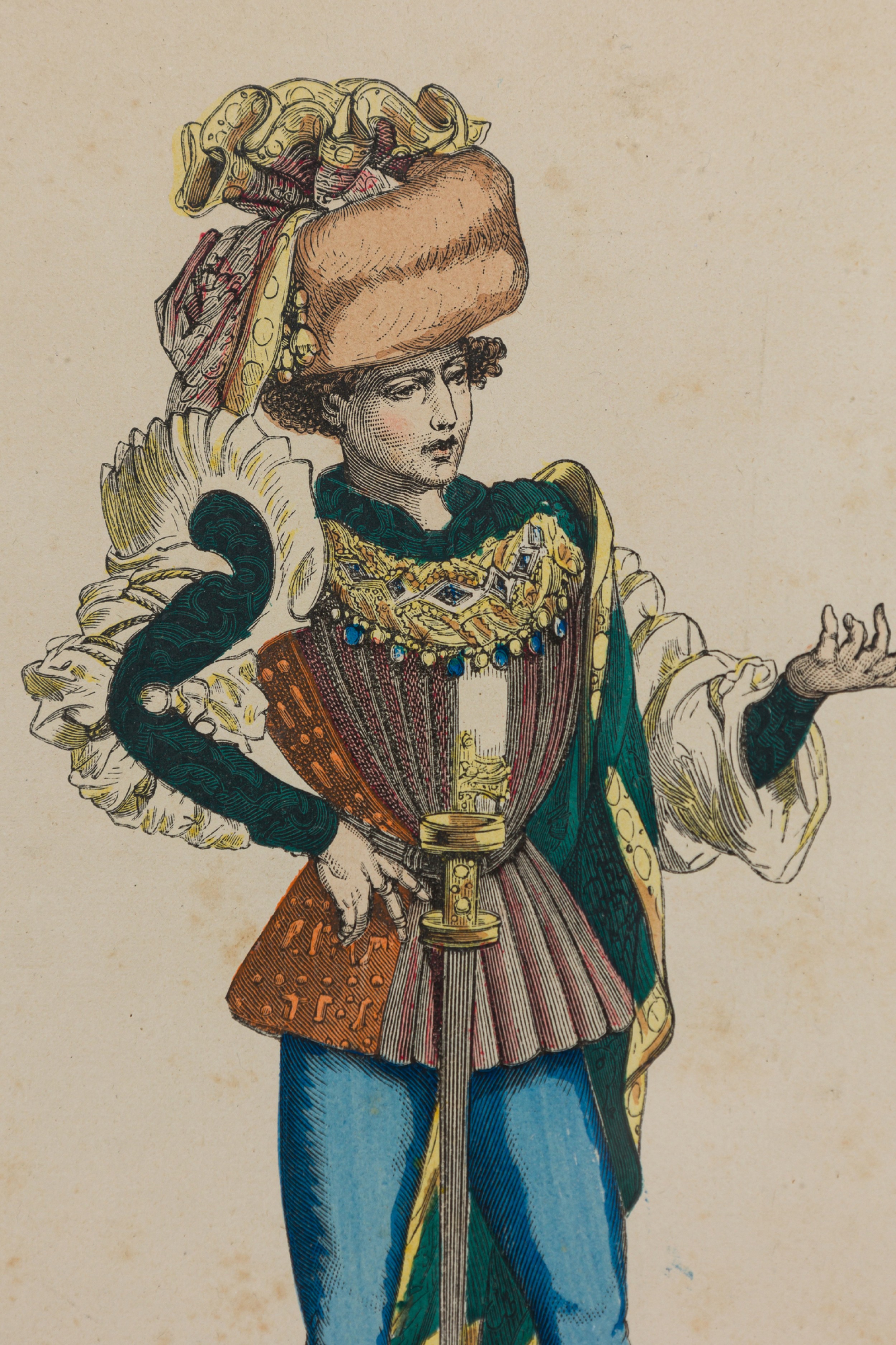 French 19th-Century Framed Lithograph of a Parisian Man in Renaissance Attire