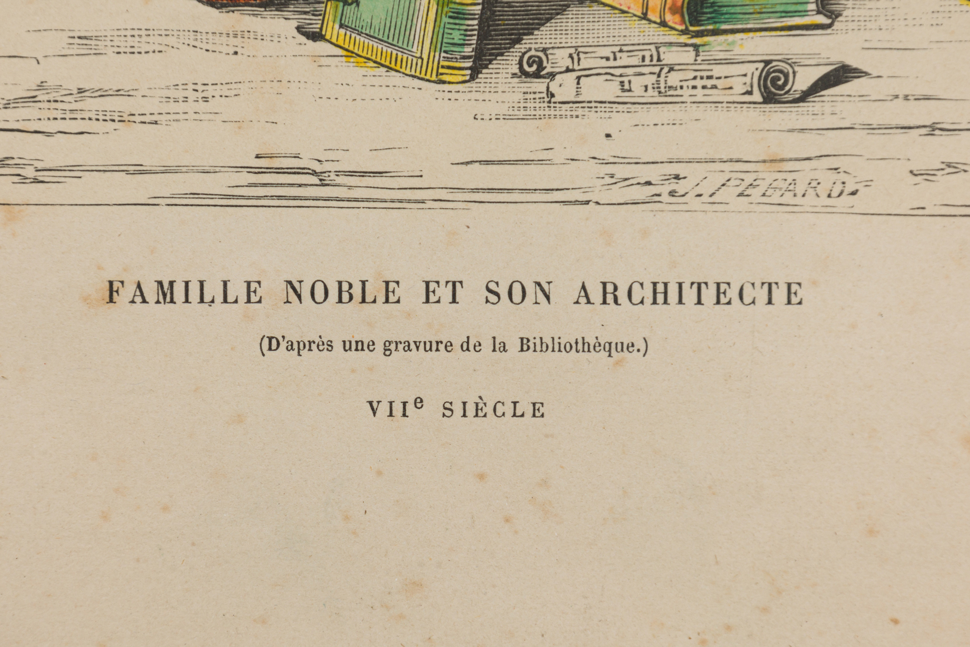 Choose one of the options below.French 19th-Century Framed Lithograph of a Parisian Noble Family and their Architect in Byzantine Attire