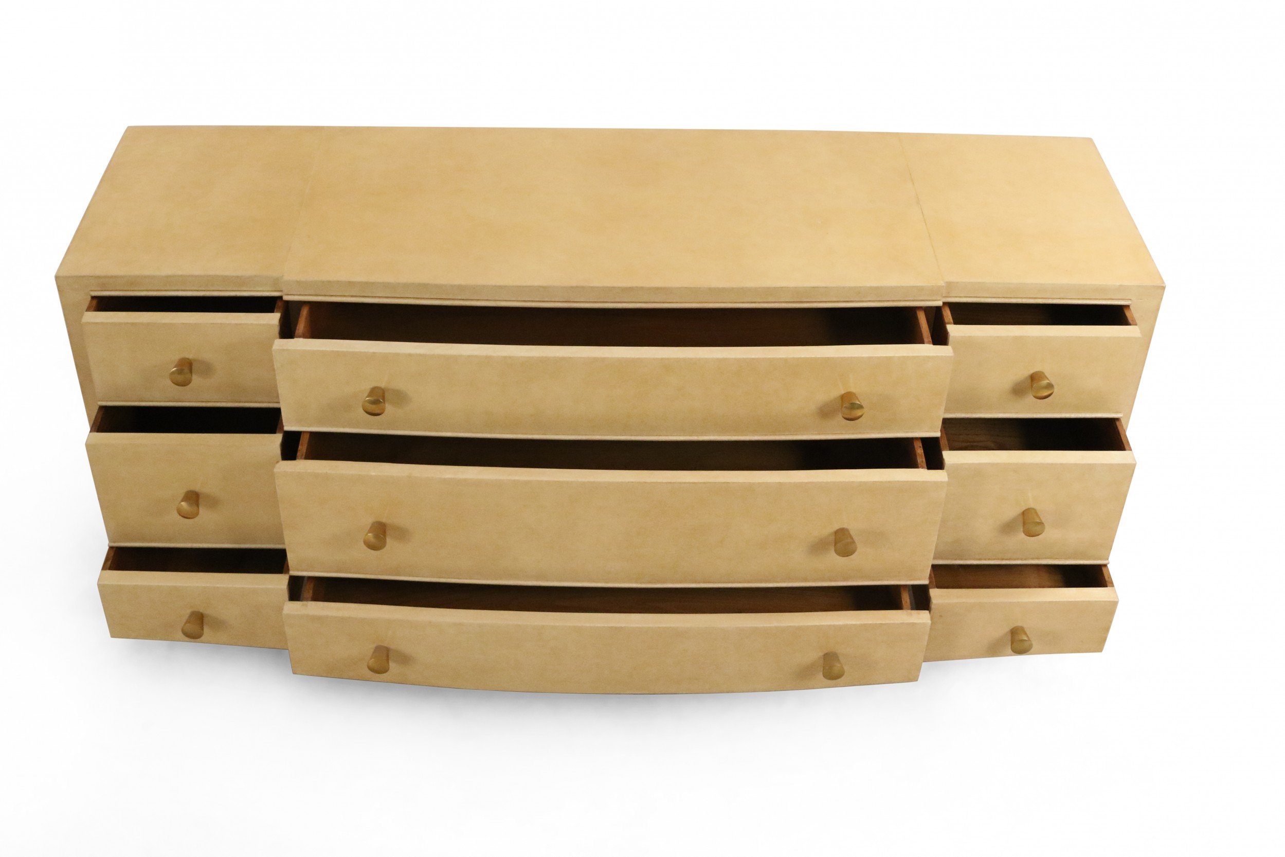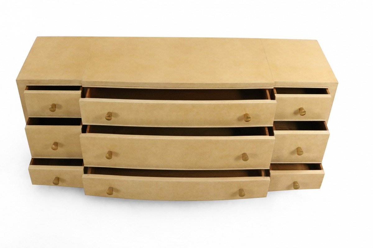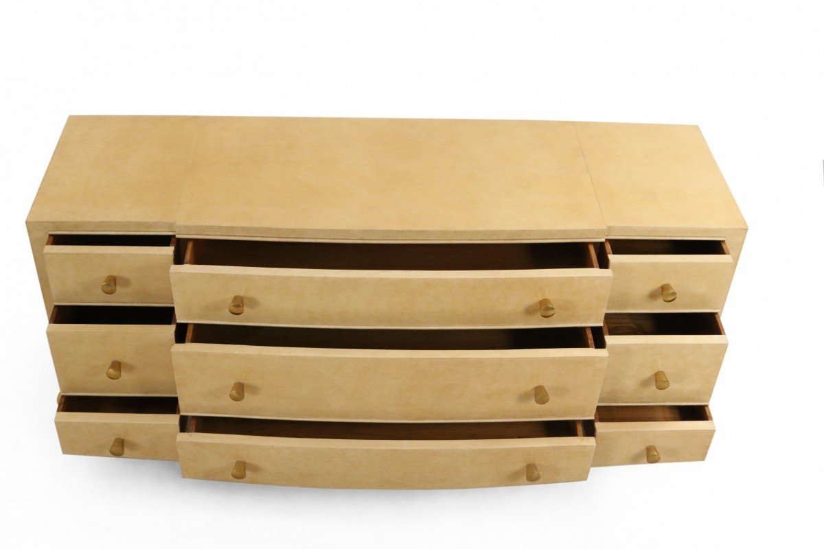 French Mid-Century Parchment Veneer 9-Drawer Chest