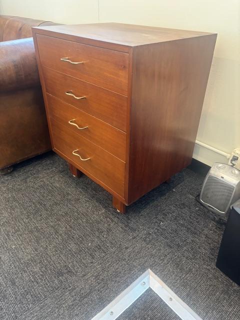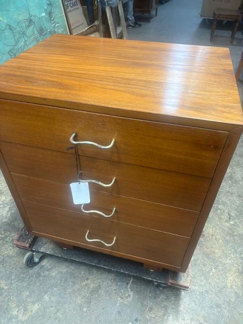American Mid-Century Walnut Veneer 4-Drawer Commode