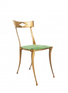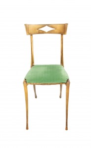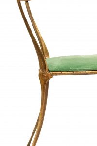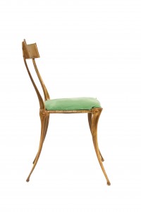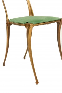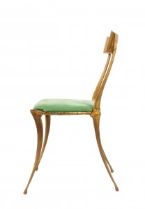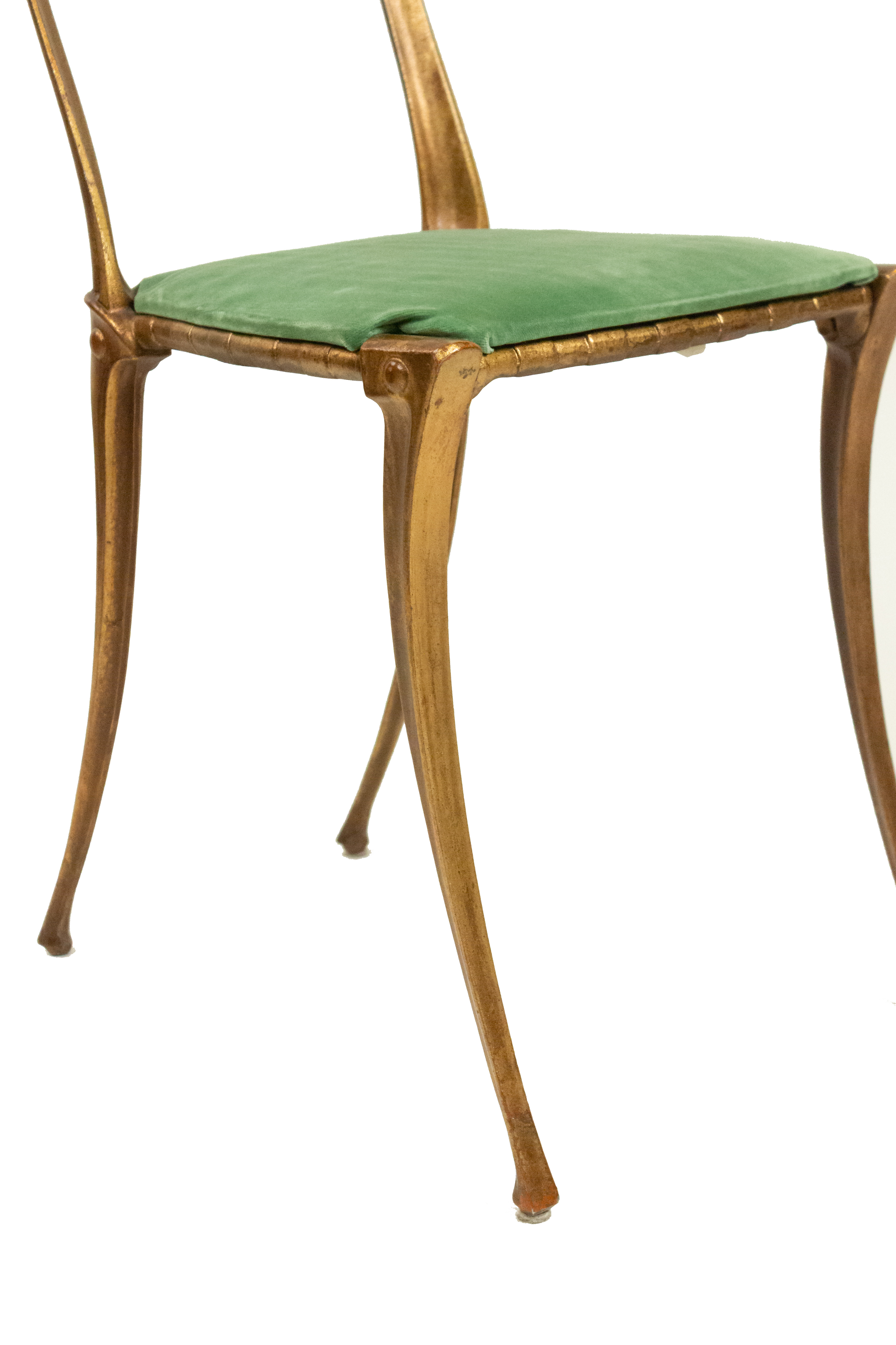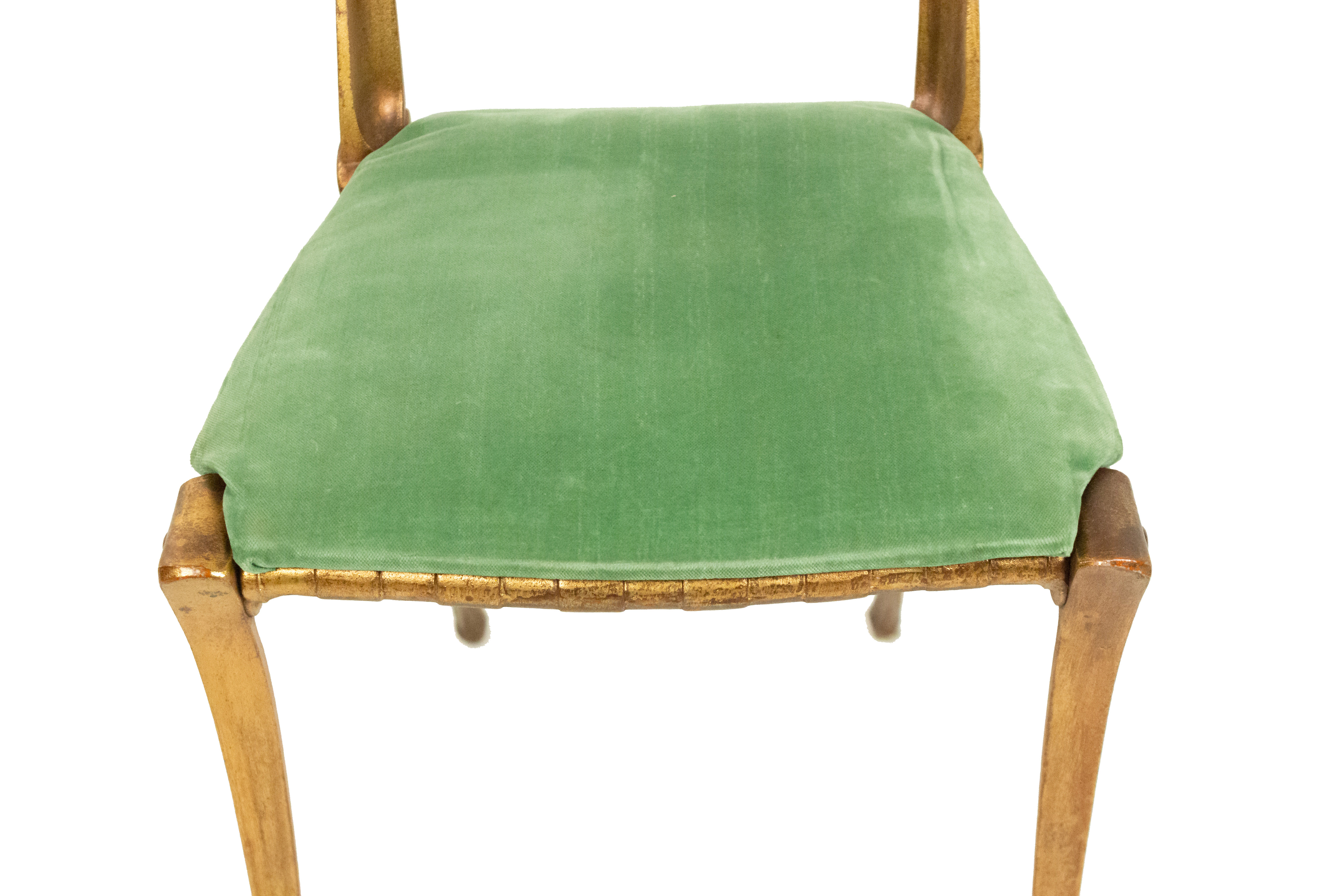 Gilt Metal Side Chair with Green Velvet Upholstery