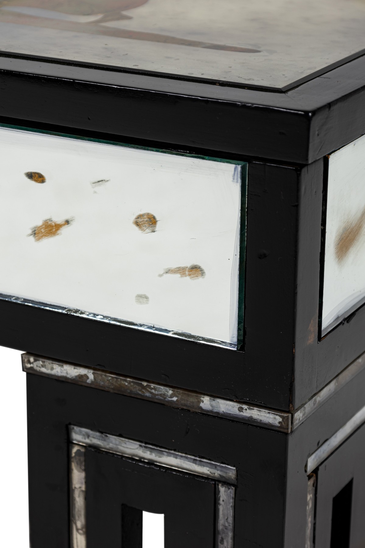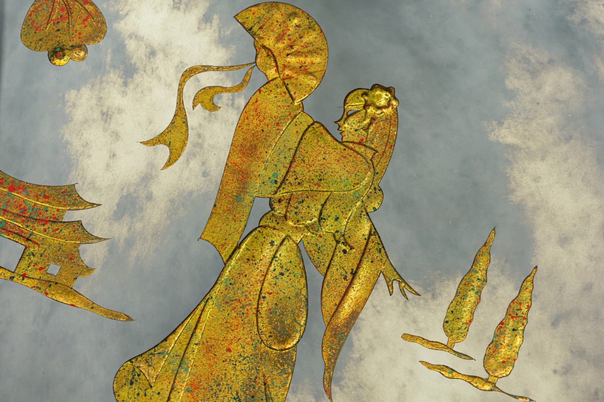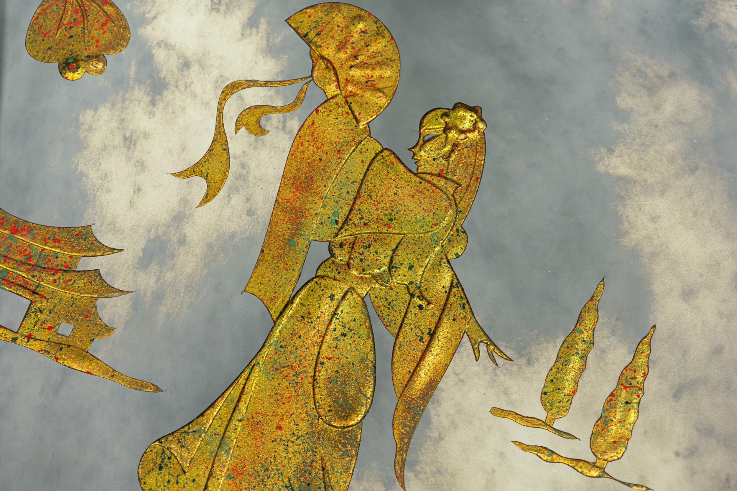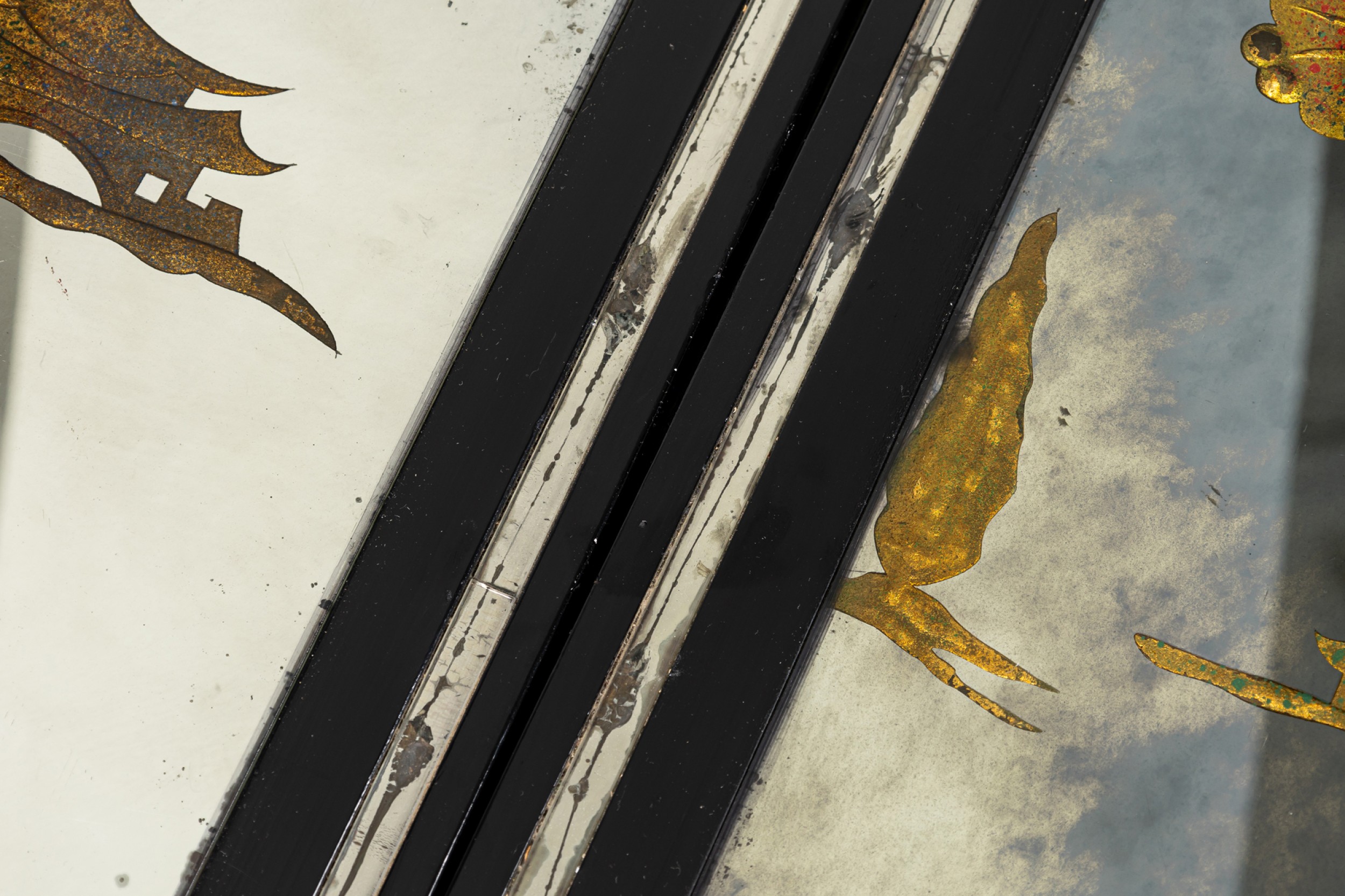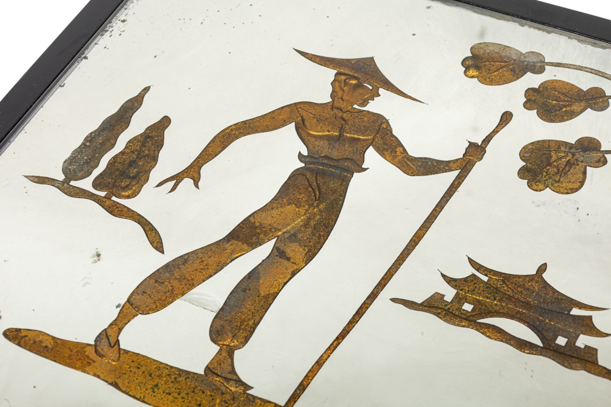 French Mid-Century Black Lacquer and Eglomise Low Table