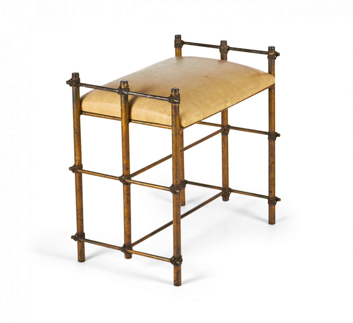 Choose one of the options below.Vintage Gilt Steel, Rope, and Beige Leather Vanity Bench
