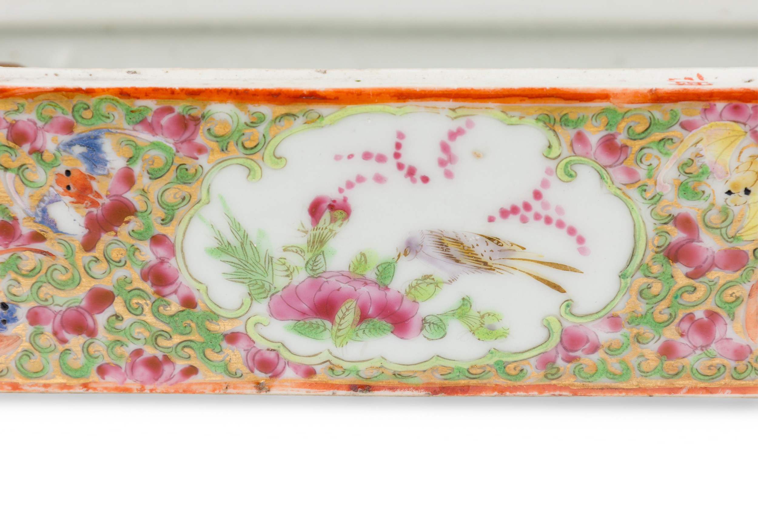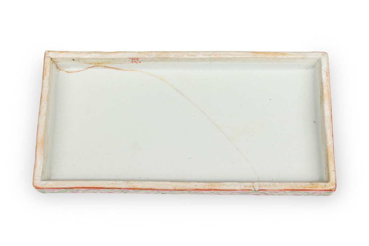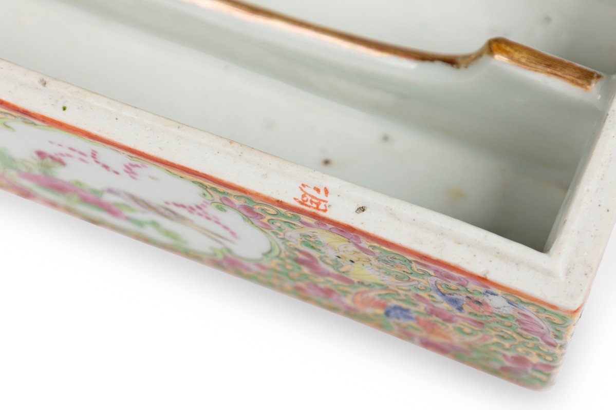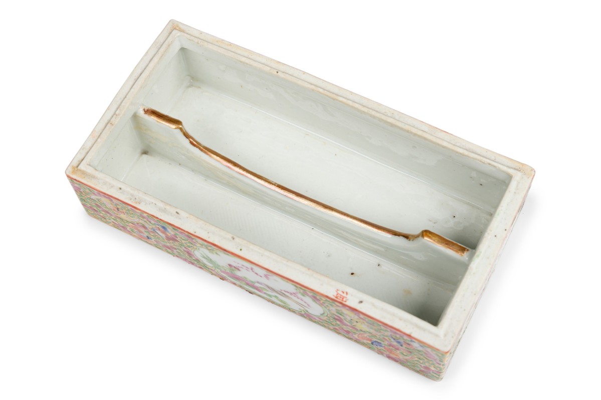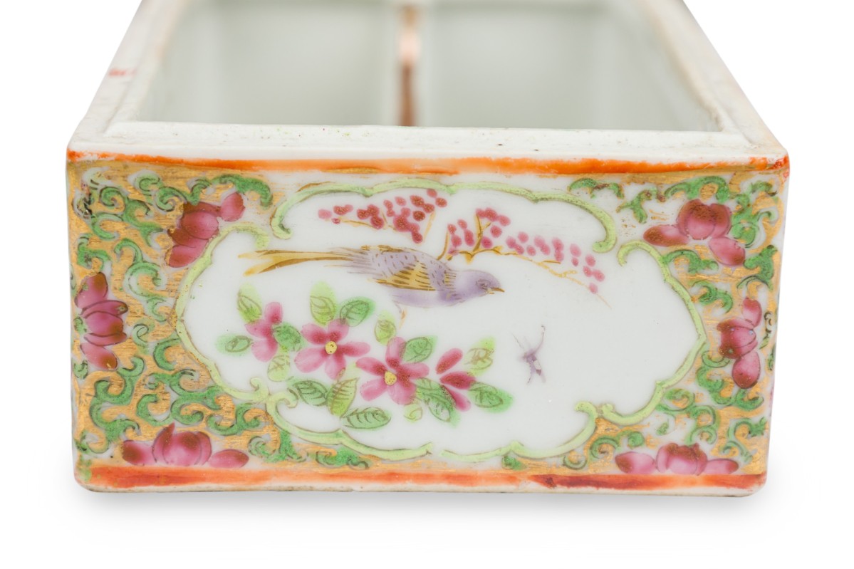 Vintage Chinese Rectangular Rose Medallion Box with Hinged Lid