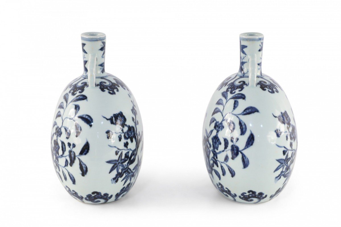 Choose one of the options below.Pair of Chinese Ming Dynasty Style Blue and White Porcelain Moonflask Vases