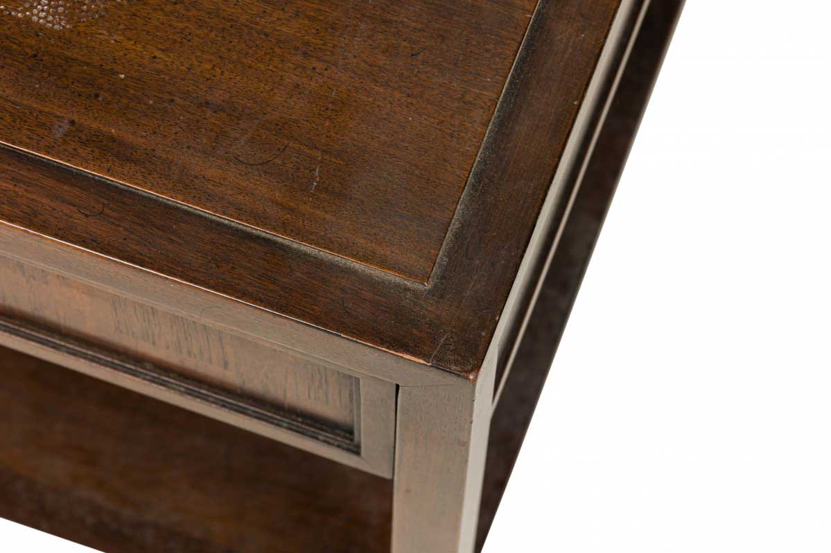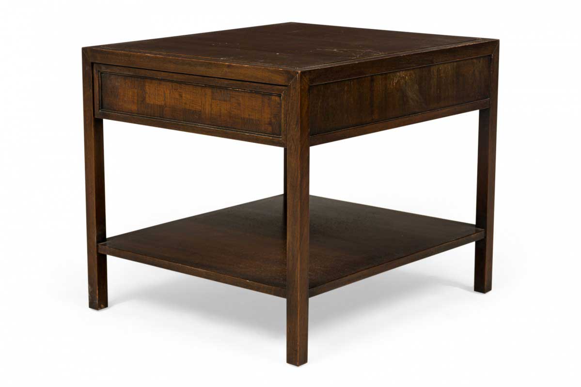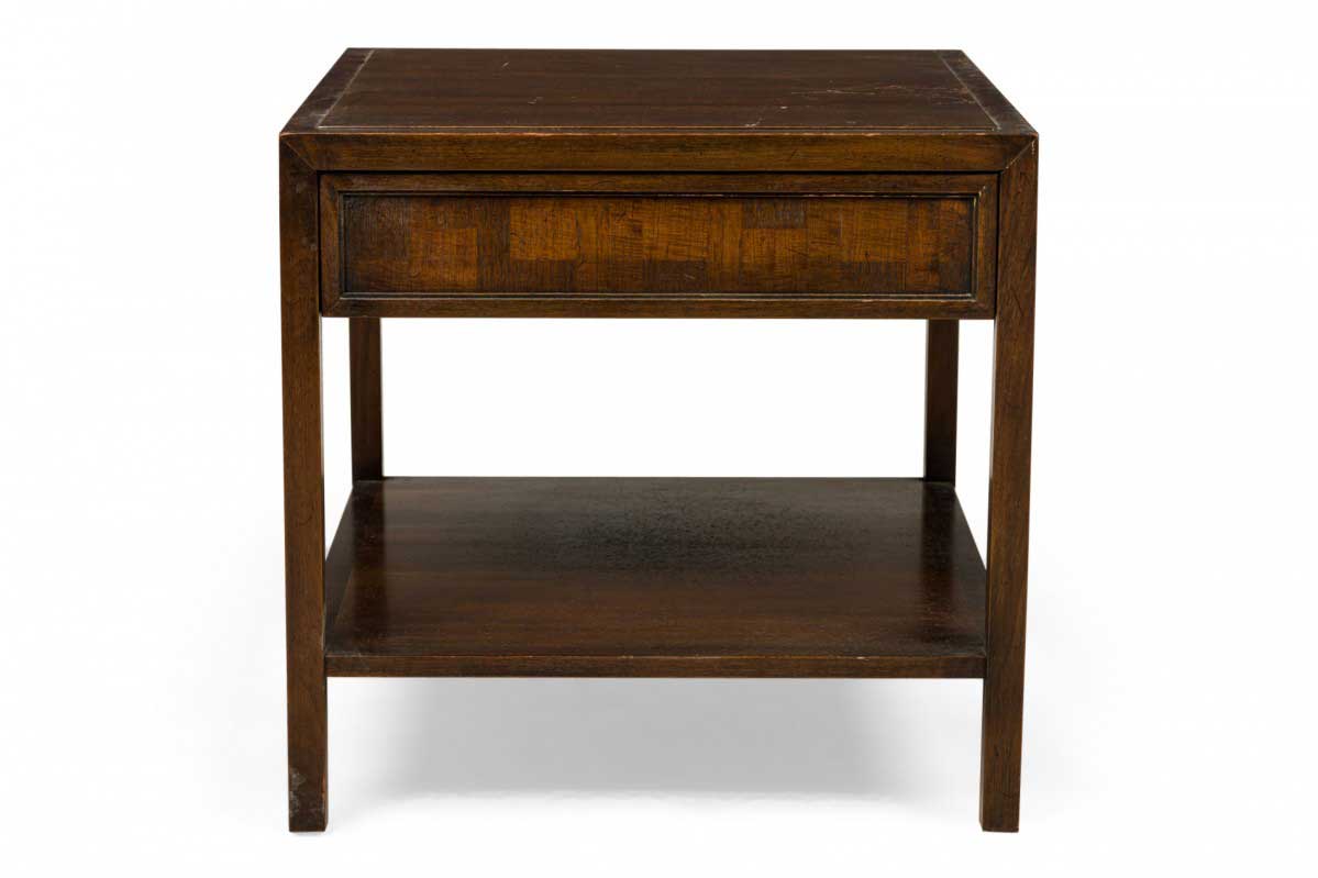 2 American Mid-Century rectangular wooden end / side tables with a single drawer and lower stretcher shelf. (PRICED EACH)