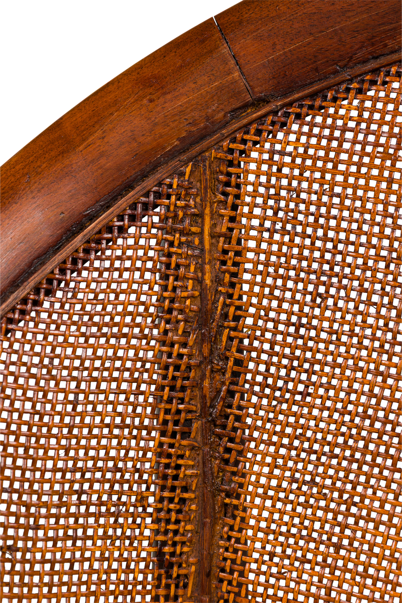 Choose one of the options below.2 American Mid-Century Walnut, Cane, and Blue Leather Pull Up Chairs